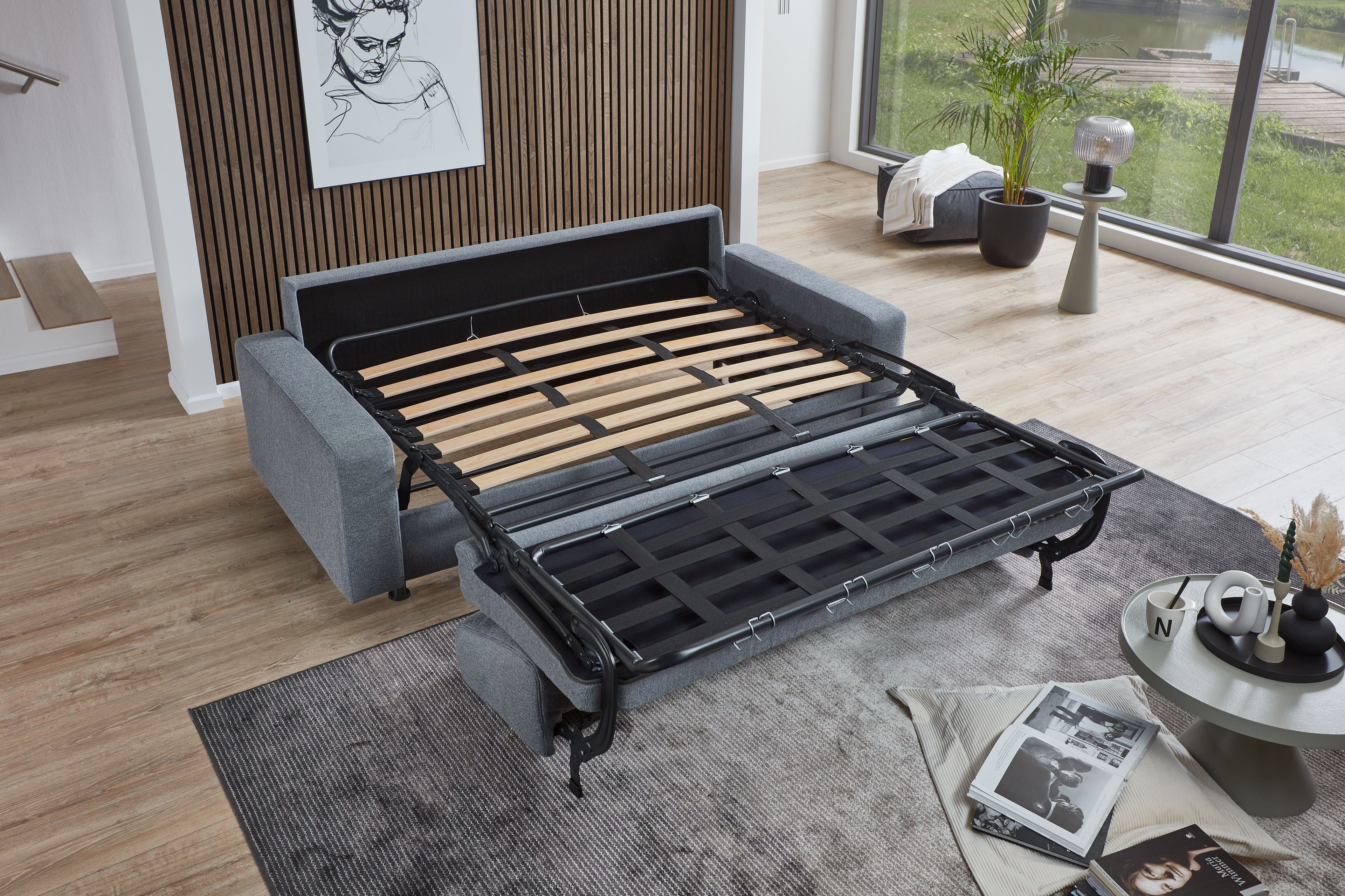 Schlafcouch grau von Nehl Wohnideen - Modell Phönix-Sleep Schlafen wie im eigenen Bett