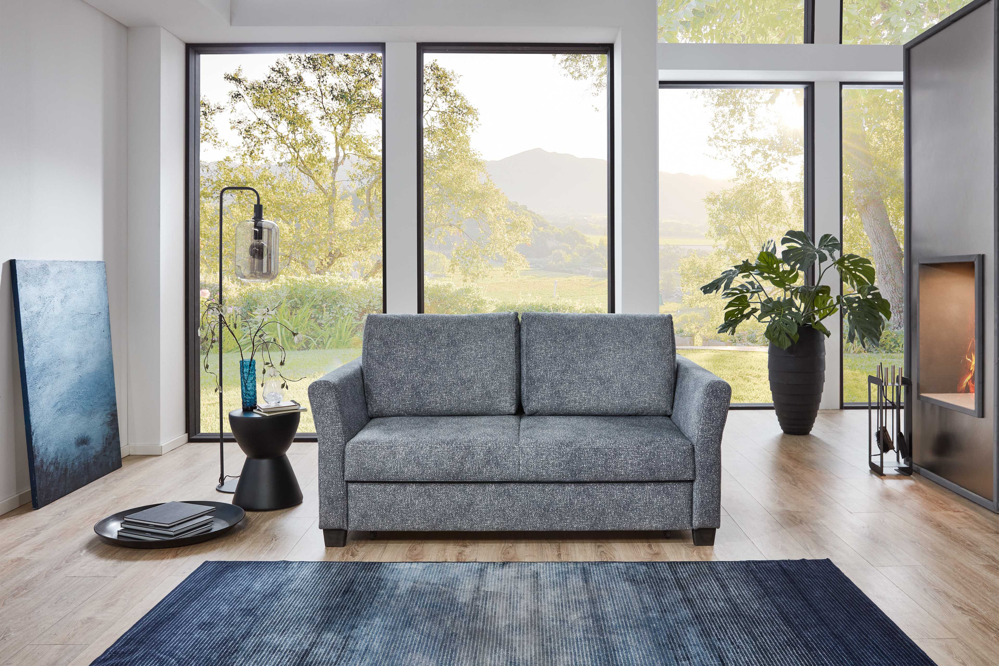 Holen Sie sich extra Komfort nach Hause – Spencer von Nehl macht es möglich. Der klassische Zweisitzer lädt Sie ein, sich niederzulassen. Hier genießen Sie neben der hochwertigen Kaltschaum-Polsterung auf ergonomisch flexiblen Federholzleisten im Sitz auch eine zweigeteilte Sitztiefenverstellung sowie einen Frontauszug, um entspannt die Beine auszustrecken. Tatsächlich lässt sich das Schlafsofa so weit ausziehen, dass, sobald Sie die Rückenkissen herunternehmen, eine rund 140 x 200 cm große Liegefläche entsteht, die ein hervorragendes Nachtlager für Ihre Übernachtungsgäste bietet. Das Aussehen des Sofas lässt sich nach Ihrem Geschmack anpassen, um es perfekt in Ihre Wohnungseinrichtung zu integrieren, indem Sie die Optionen auf dieser Seite zu Hilfe nehmen. Eine weitere Größe, Holz- oder Metallfüße und eine umfangreiche Auswahl an Bezügen stehen Ihnen dafür zur Verfügung. Für noch mehr Komfort lassen sich die Armlehnen zudem in einer abklappbaren Ausführung bestellen oder ein Schonbezug für hygienischen Schlaf hinzubuchen. Längsschläfer Spencer – ein umwerfendes Schlafsofa von Nehl für alle Lebenslagen.