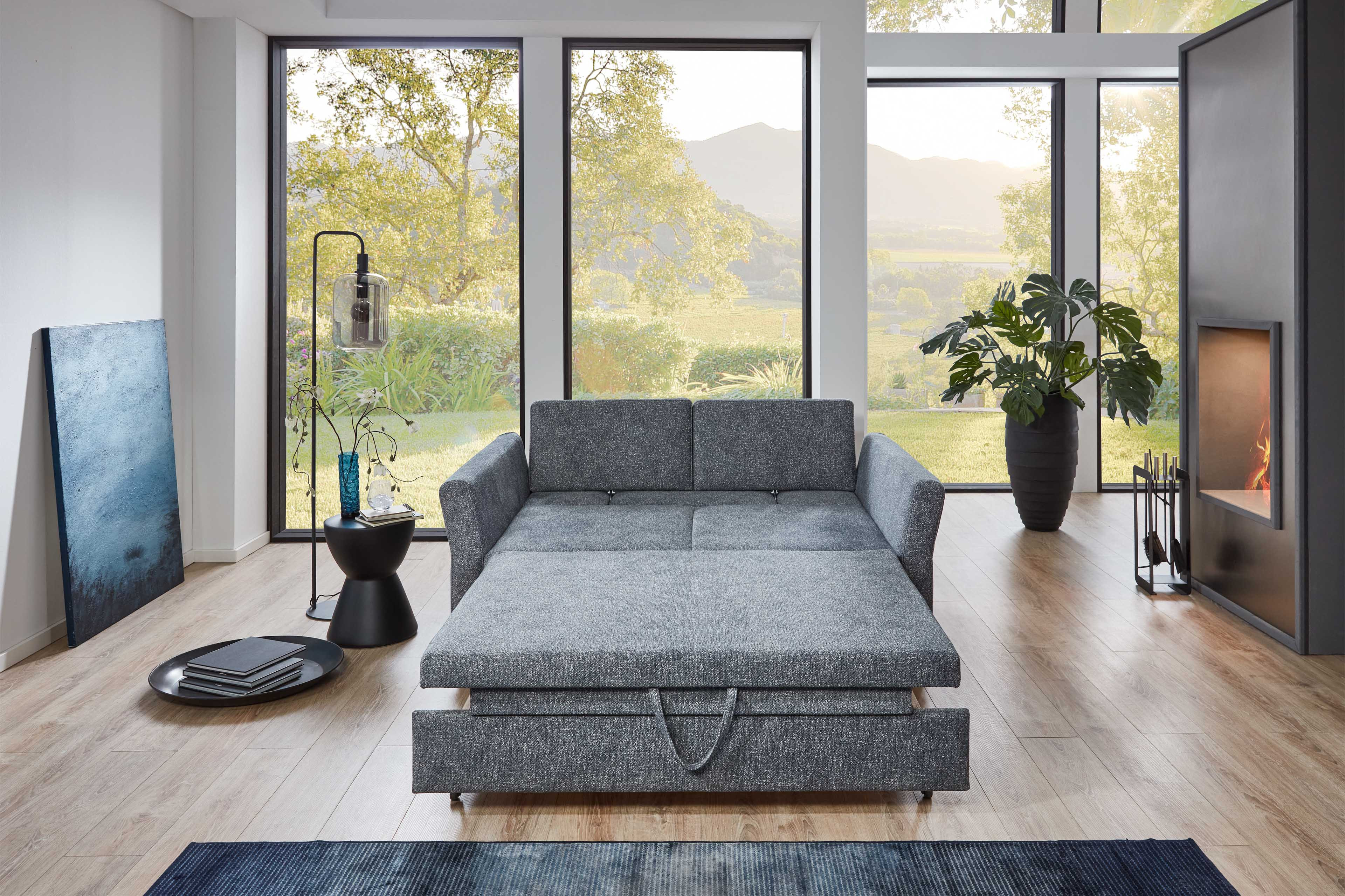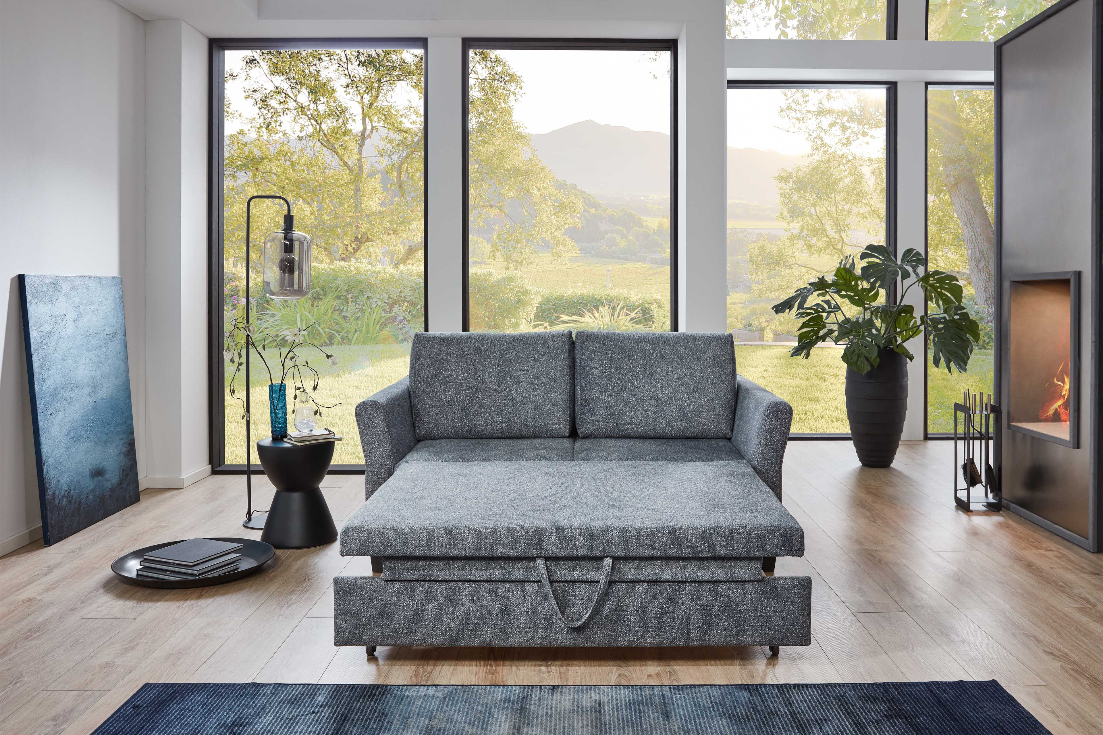 Schlafcouch grau von Nehl Wohnideen - Modell Spencer Das bequeme Sofa mit drei Funktionen - Sitzen, Relaxen, Schlafen
