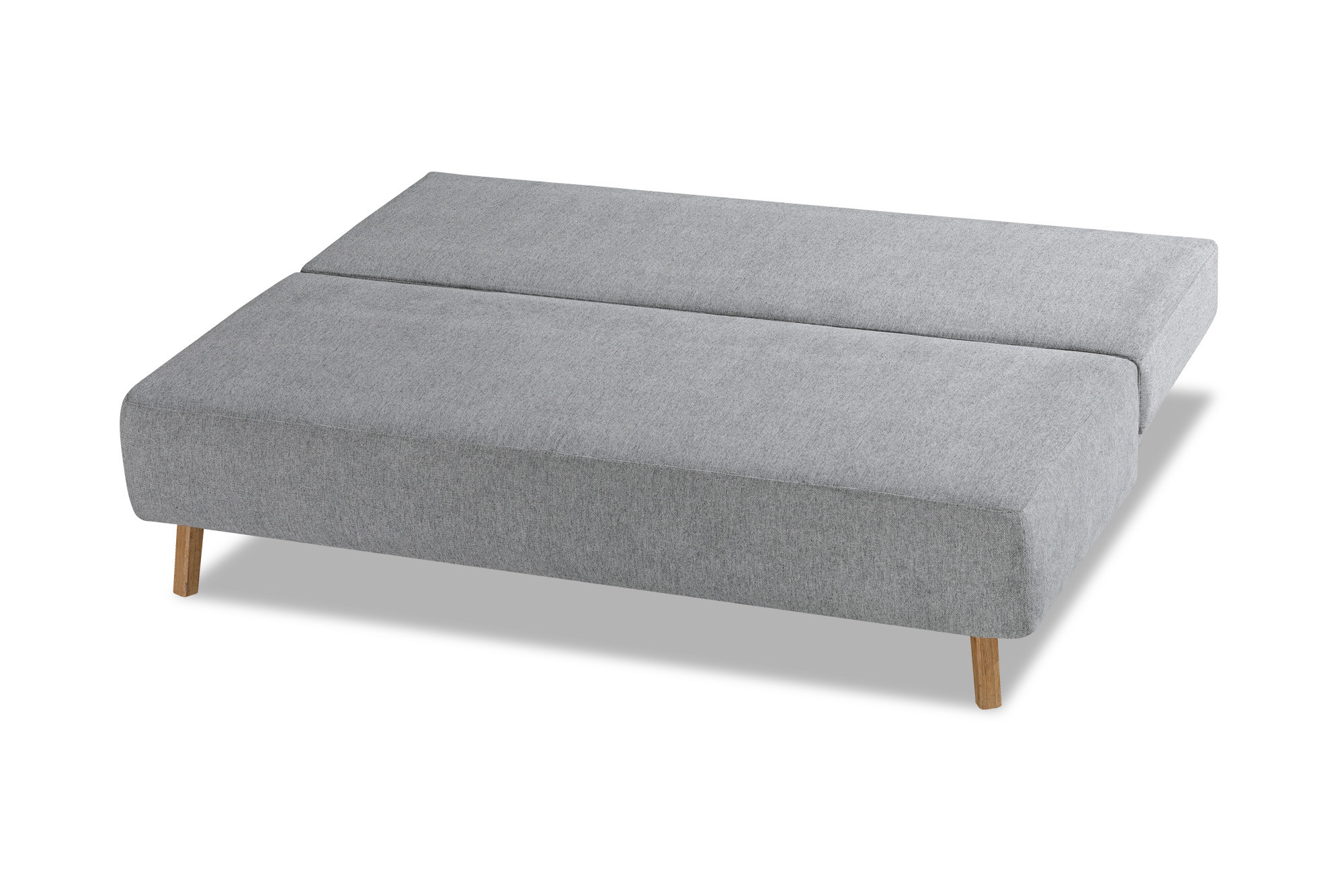 Durch Vorziehen der Sitzfläche und Herunterklappen des Rückenteils entsteht eine Doppelliege. Schlafen auf Sitzhöhe. - Fußausführung: Holzfuß Eiche natur