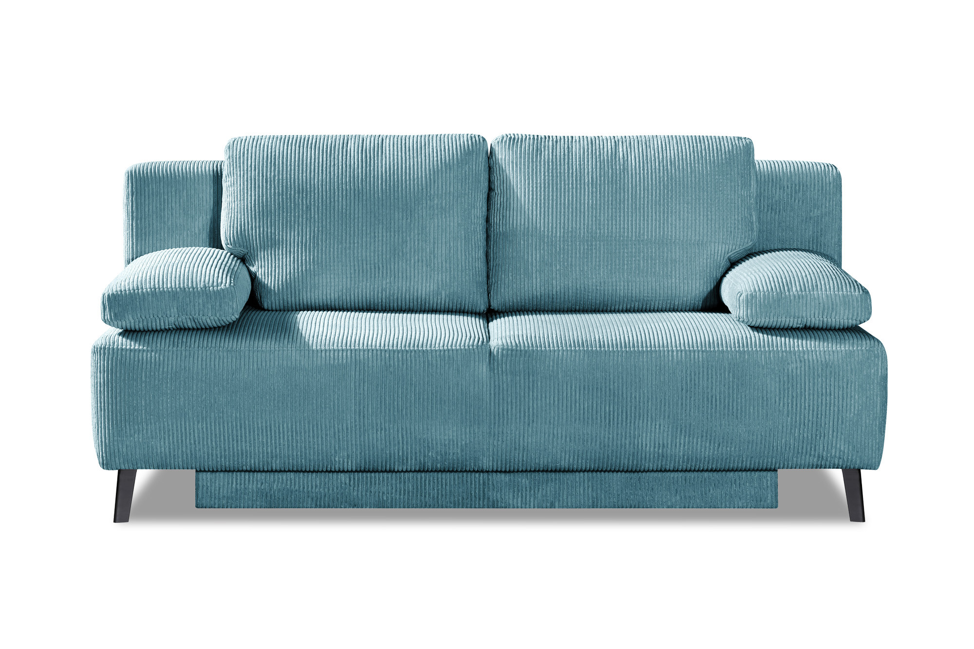 Das Schlafsofa George-Sleep von Restyl ist eine willkommene Lösung für die erste Wohnung, das Gästezimmer oder ein modernes Jugendzimmer. Im petrolfarbenem Cordbezug ist das Modell George-Sleep immer ein gelungener Blickfang, dennoch kann das Sofa auf Wunsch mit unserer umfangreichen Farb- und Bezugskollektion auf Ihre bestehende Einrichtung abgestimmt werden. Gleichzeitig punktet das Sofa mit hohem Komfort und beeindruckender Verwandlungskunst. Nur wenige Handgriffe und der vielseitige 2-Sitzer streckt sich zu einem gemütlichen Gästebett mit einer komfortablen Liegefläche von ca. 140 x 194 cm. Der einmalige Sitz- und Liegekomfort des Schlafsofas wird durch eine hochwertige Polsterung aus Polyschaum auf Wellenfedern hervorgerufen und mit weichen Rücken- und Armlehnenkissen optimiert. Unter der Sitzfläche verbirgt sich darüber hinaus ein geräumiger Bettkasten, der für Kissen und Decken ausreichend Stauraum bereithält. Erleichtern Sie sich mit dem optional erhältlichen Hubbeschlag die Verwandlung der Couch, indem Sie diesen mit Hilfe der Zusatzoptionen hinzubuchen. Stil und Komfort rund um die Uhr – Schlafsofas von Restyl.