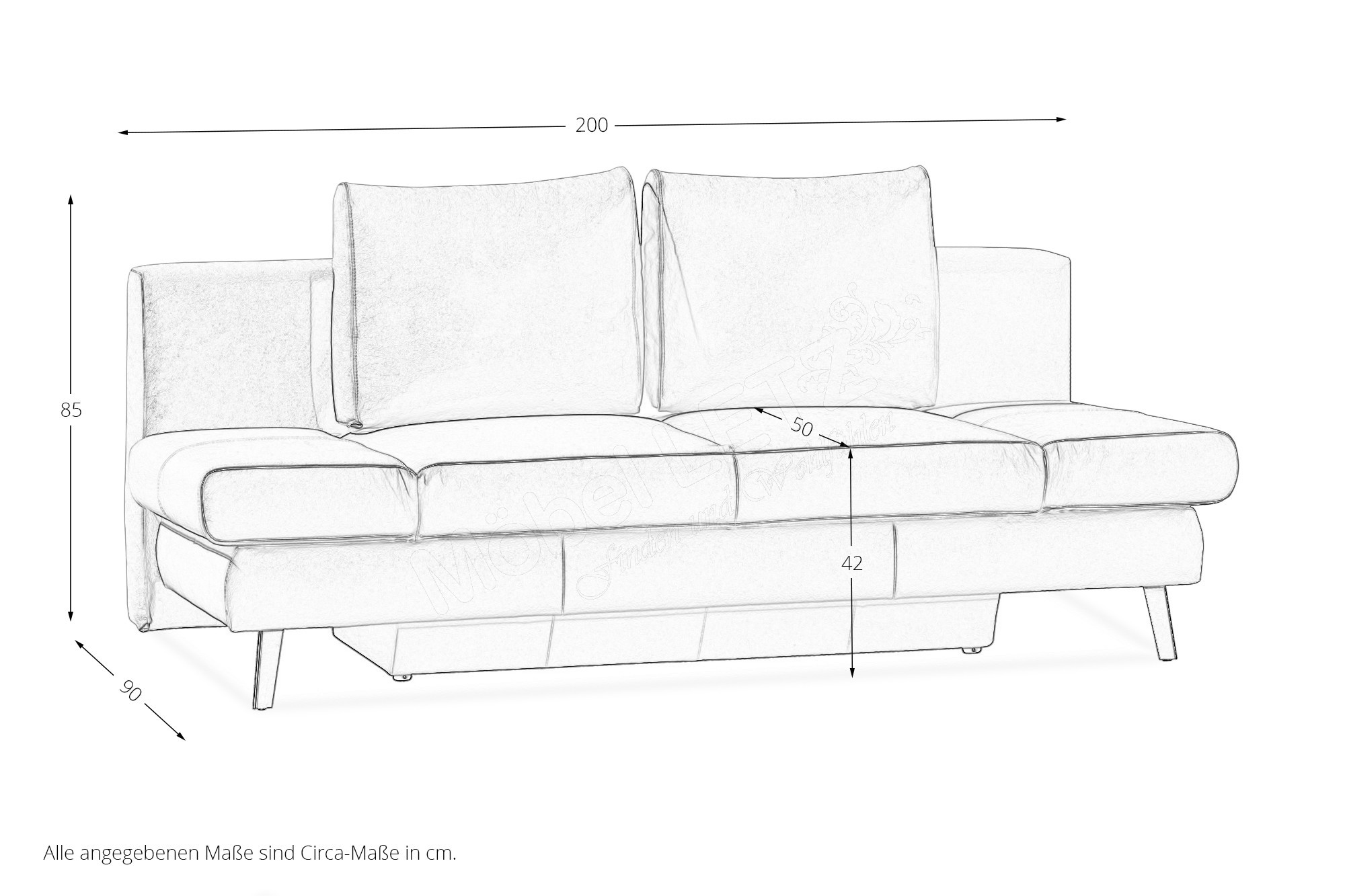- 1 x Schlafsofa mit Bettkasten, ca. BHT: 200/85/90 cm