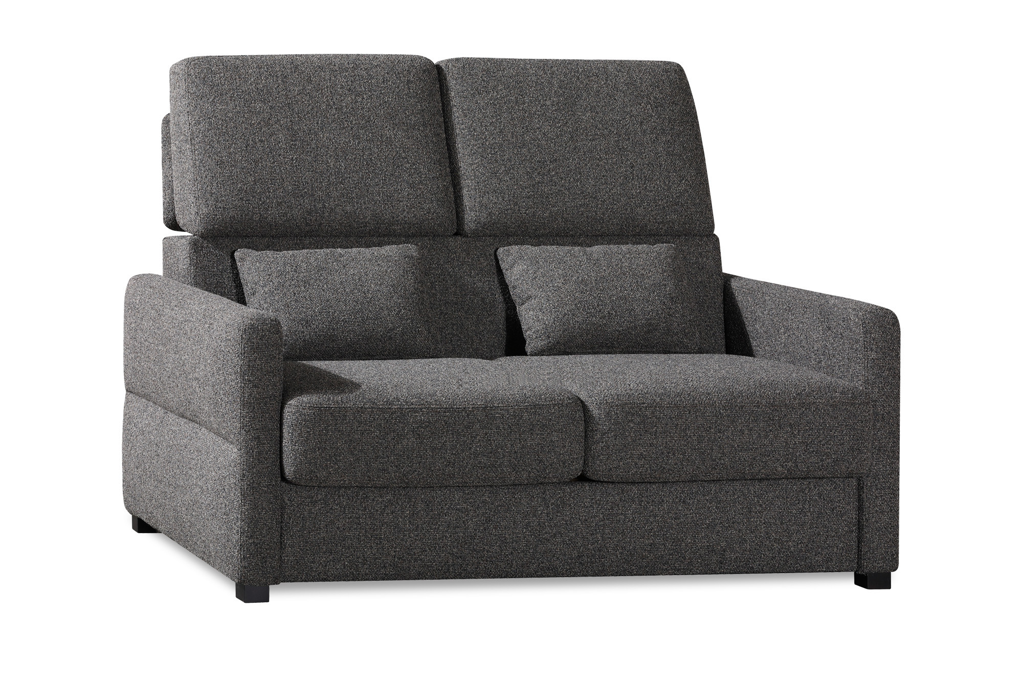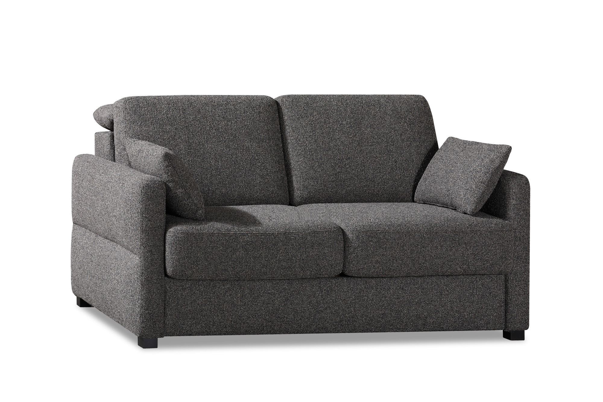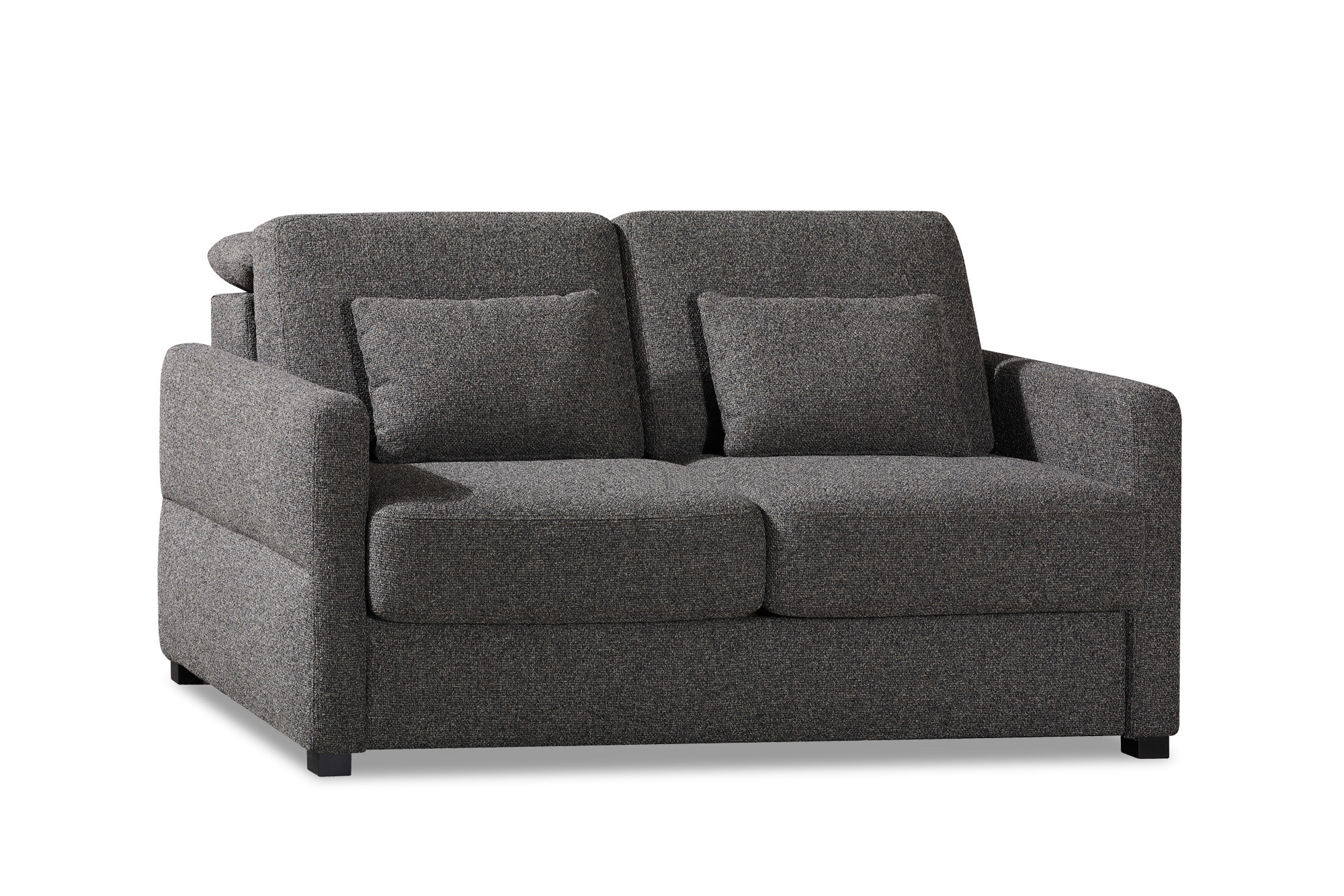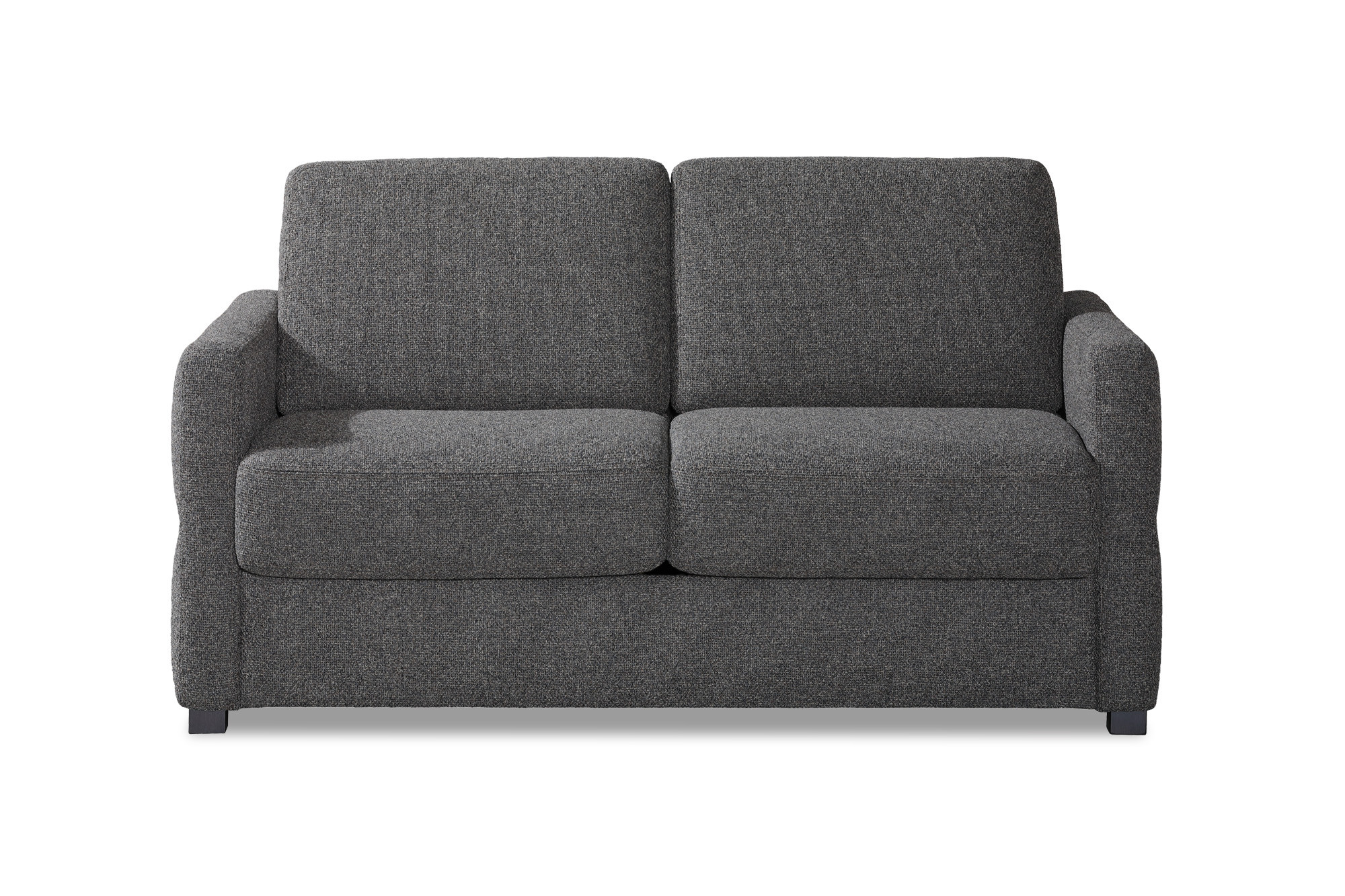 Das schicke Schlafsofa Sofia von Restyl ist ein wahres Multitalent: Am Tage begeistert es sich als stilvoller 2-Sitzer und am Abend verwandelt es sich blitzschnell in ein gemütliches Gästebett mit einer Liegefläche von ca. 150 x 198 cm. Ob als Sofa im Wohnbereich oder als Verwandlungskünstler im Gästezimmer - das Modell Sofia macht in jeder Position und überall eine gute Figur. Für noch mehr Komfort sorgen nicht nur die verstellbaren Rückenkissen, welche Ihnen durch Hochklappen eine bequeme, leicht zurückgelehnte Sitzposition ermöglichen, sondern auch die Möglichkeit, die Matratze an Ihren Wünschen anzupassen: So beinhaltet das Modell serienmäßig eine Kaltschaum-Matratze, die beliebig dreh- und wendbar ist und einen punktelastischen Liegekomfort mit sehr guter Anpassungsfähigkeit bietet. Diese können Sie durch eine Gelplus- oder Longlife-Matratze austauschen, welche zusätzlich über eine Schulter-Komfortzone verfügt und dank des Quality-Schaumkerns eine gleichmäßige Druckverteilung und optimale Anpassungsfähigkeit gewährleistet. Der strapazierfähige Strukturstoff in Anthrazit verleiht dem Schlafsofa eine ruhige Ausstrahlung, welche mit der Option "Farbe ändern" Ihrem Geschmack und Einrichtungsstil angepasst werden kann. Für mehr Komfort am Tage und in der Nacht - Restyl Schlafsofa.