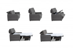 Durch das integrierte Faltgestell läßt sich das Sofa zu einem bequemen Bett verwandeln.