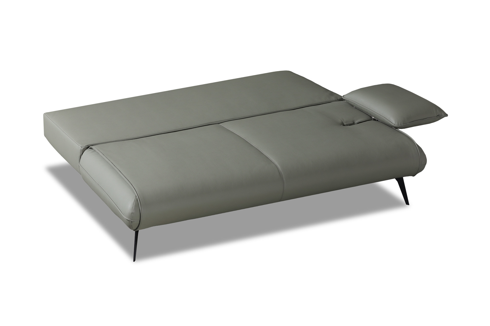 Durch Vorziehen der Sitzfläche und Herunterklappen des Rückenteils entsteht eine Doppelliege. Schlafen auf Sitzhöhe. - Fußausführung: Metallfuß schwarz