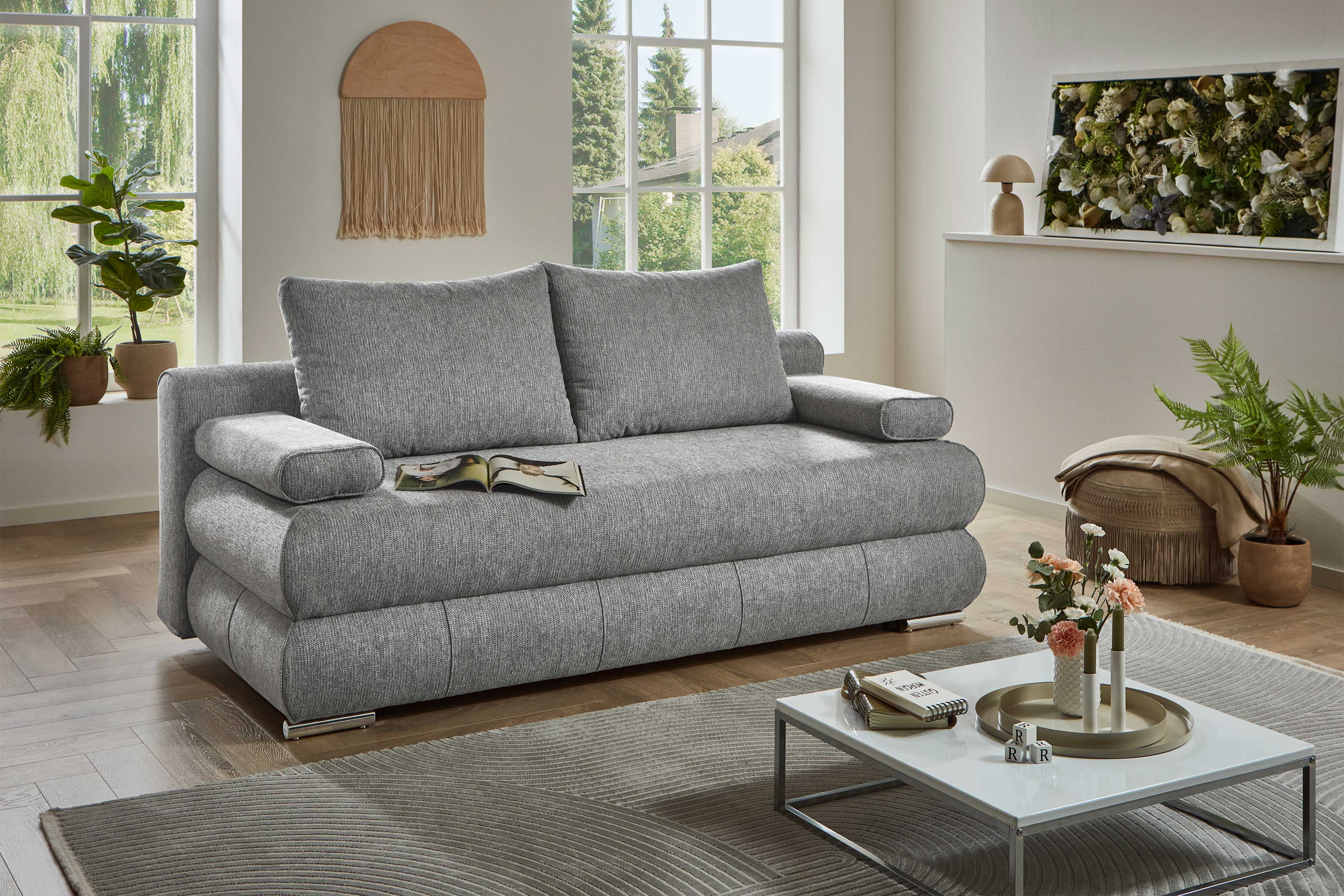 Das Funktionssofa – ein Möbelstück, das mehr kann. Die praktischen Multitalente eignen sich nicht nur für das Wohnzimmer, sondern auch für ein Jugend- oder Gästezimmer sowie für kuschelige Wohnungen, in denen die verfügbare Stellfläche knapp bemessen ist. Das Schlafsofa Borna-SO350 von Sun Garden zum Beispiel ist ein einladender Zweisitzer im angenehmen Grauton, welcher mit nur wenigen Handgriffen in eine großzügige Gästeliege mit einer Liegefläche von etwa 138 x 195 cm verwandelt werden kann und am nächsten Morgen ebenso schnell wieder in seine Ursprungsform zurückgebracht wird. Durch das Vorziehen der Sitzfläche offenbart sich außerdem ein geräumiger Bettkasten, in dem Sie beispielsweise tagsüber die Gästebettgarnitur und in der Nacht die abnehmbaren Armlehnen- sowie Rückenkissen des Sofas verstauen können. Die Schlafsofas von Sun Garden sind erschwingliche Möbel in trendigen Designs, die Ihnen den Alltag erleichtern und überall eine gute Figur machen.