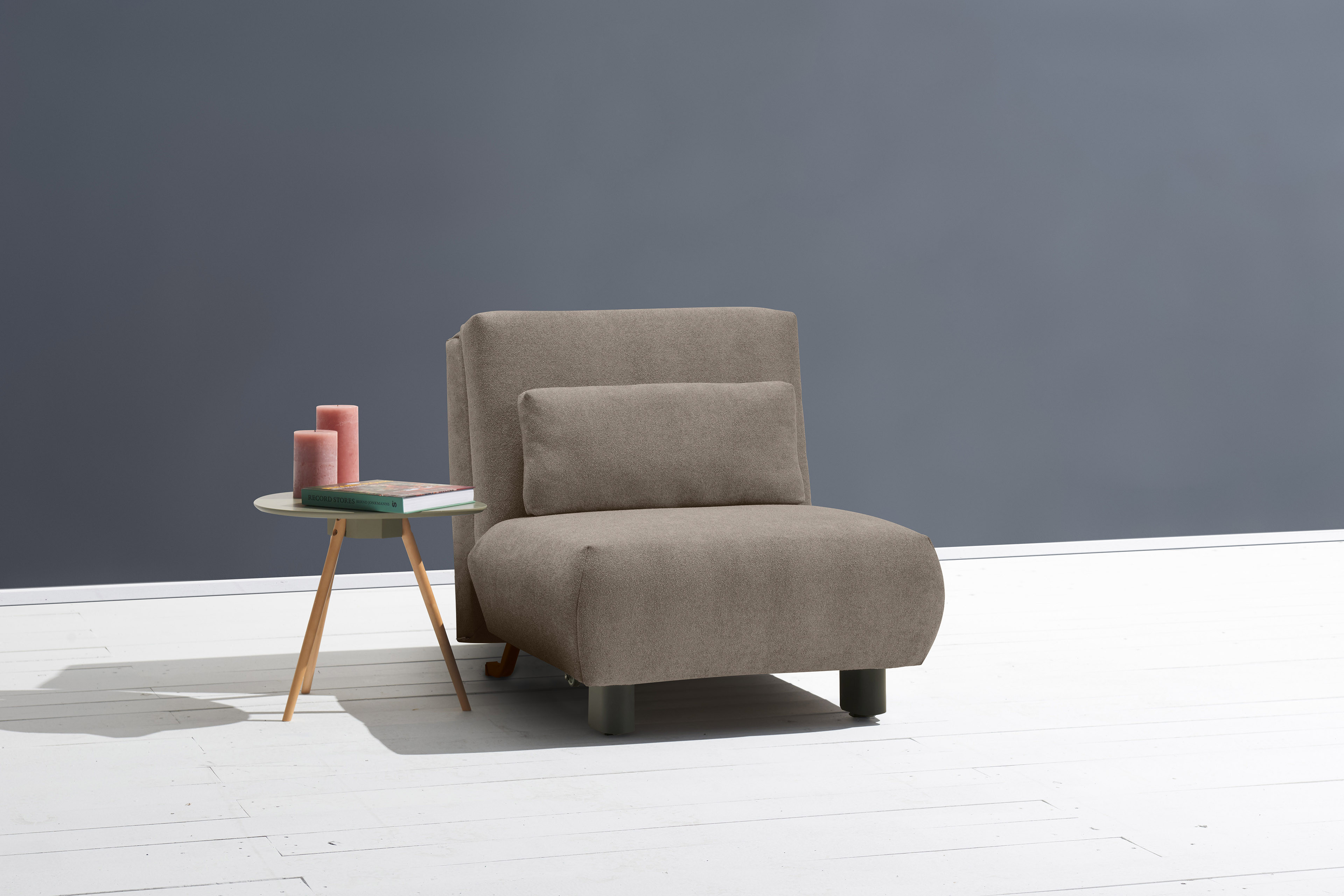 Vorsicht – diesen Platz könnte Ihnen schnell jemand streitig machen. Minou von ell+ell ist kompakt, praktisch und sieht dabei auch noch schick aus. Sie sehen das Schlafsofa-Modell hier in der Konfiguration als Einzelsessel, wobei auch breitere Ausführungen möglich sind. Dieses kleine Multitalent bietet einen kuscheligen Sitzplatz am Tage sowie, in ausgeklapptem Zustand, eine komfortable Liegefläche für Ihre Gäste in der Nacht, ohne dabei eine große Stellfläche zu beanspruchen. Gerade für kleinere Wohnungen ohne eigenes Gästezimmer oder auch für das Kinder- oder Jugendzimmer ist der Sessel damit perfekt geeignet. Neben dem abgebildeten klassischen Braunton mit schwarzen Füßen haben Sie die Auswahl aus einer großen Vielzahl weiterer Stoffe und Farben, anderen Fußoptionen sowie natürlich praktischem ergänzendem Zubehör. Damit erstellen Sie sich ein Möbelstück, das ganz und gar Ihrem Geschmack entspricht – harmonisch abgestimmt auf Ihre Wohnungseinrichtung. Das passende Kissen erhalten Sie auch gleich noch mit dazu. Schlafsofas von ell+ell – vielseitige Alleskönner für Ihr Zuhause.
