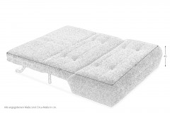 Topper / Matratzenauflage mit integrierter Tasche, die am Rücken des Sofas befestigt ist und mittels eines Reißverschlusses geöffnet werden kann, um den Topper zu verstauen.
