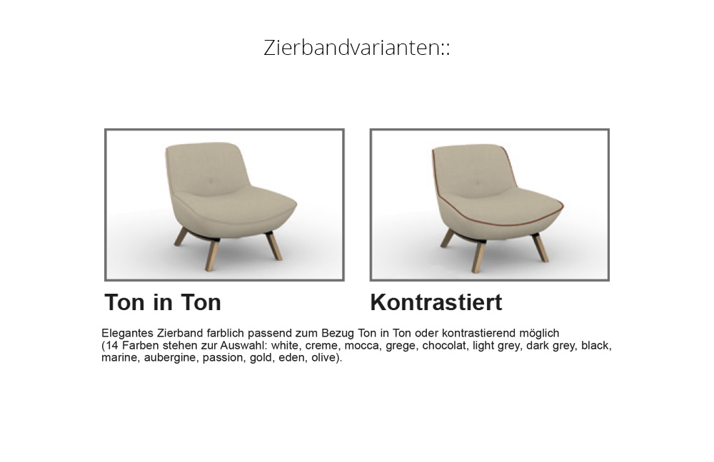 Durch die unterschiedlichen Beschaffenheiten der Bezugsmaterialien und der verarbeiteten Polsterwatte neigt dieses leger verarbeitete Modell zur Wellenbildung. Unterstützt wird diese Entwicklung dadurch, dass Stoff und Leder sich unter Einfluss von Körperwärme, Körperfeuchtigkeit und Körpergewicht mehr oder minder dehnen und dadurch „Wellen“ bilden. Wellen, die aufgrund der natürlichen Dehnungseigenschaften der Bezugsarten oder großer Sitzflächen entstehen, stellen keinen Sachmangel dar, sondern sind eine Charaktereigenschaft legerer Polsterung. Die maximale Belastbarkeit beträgt 110 kg.