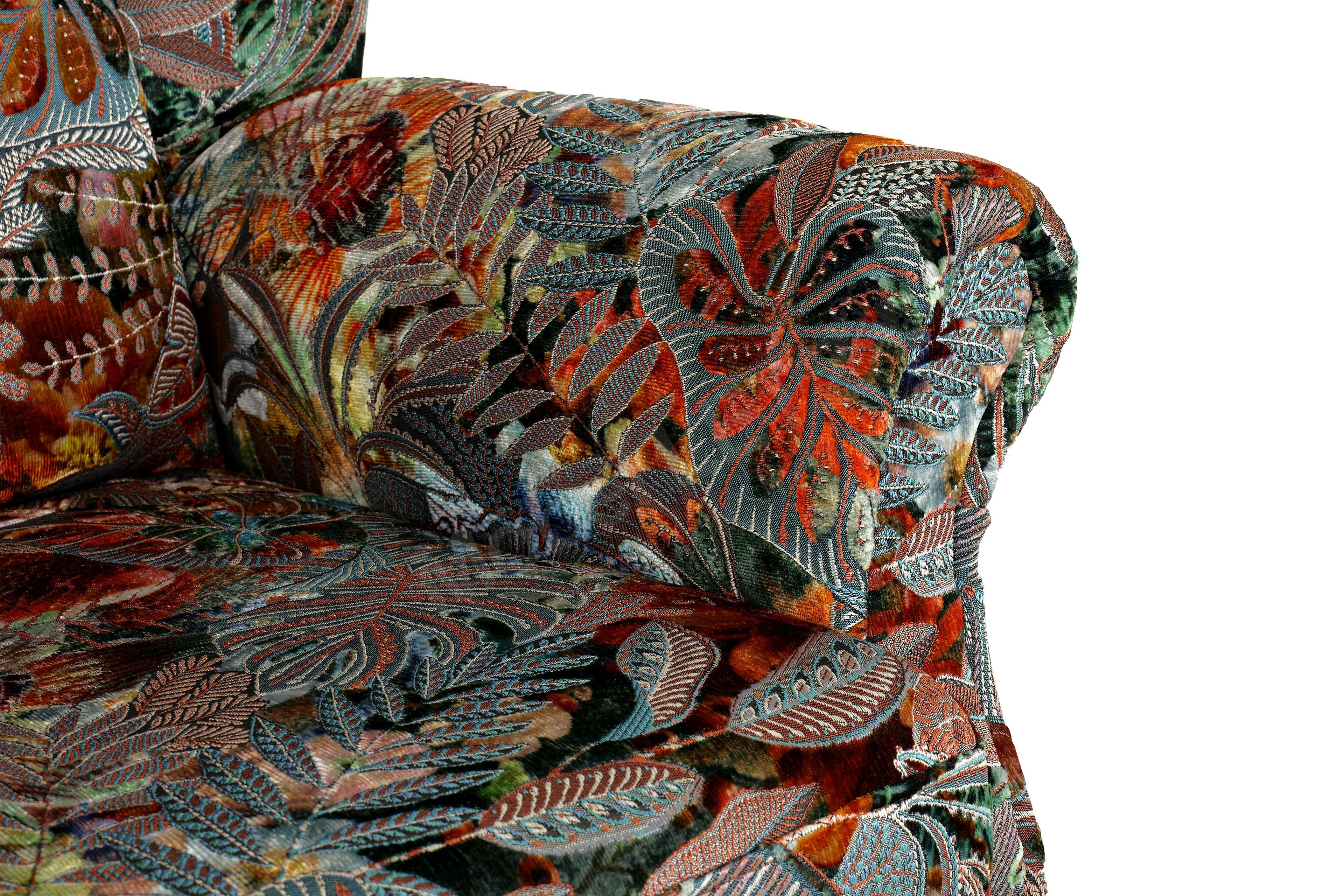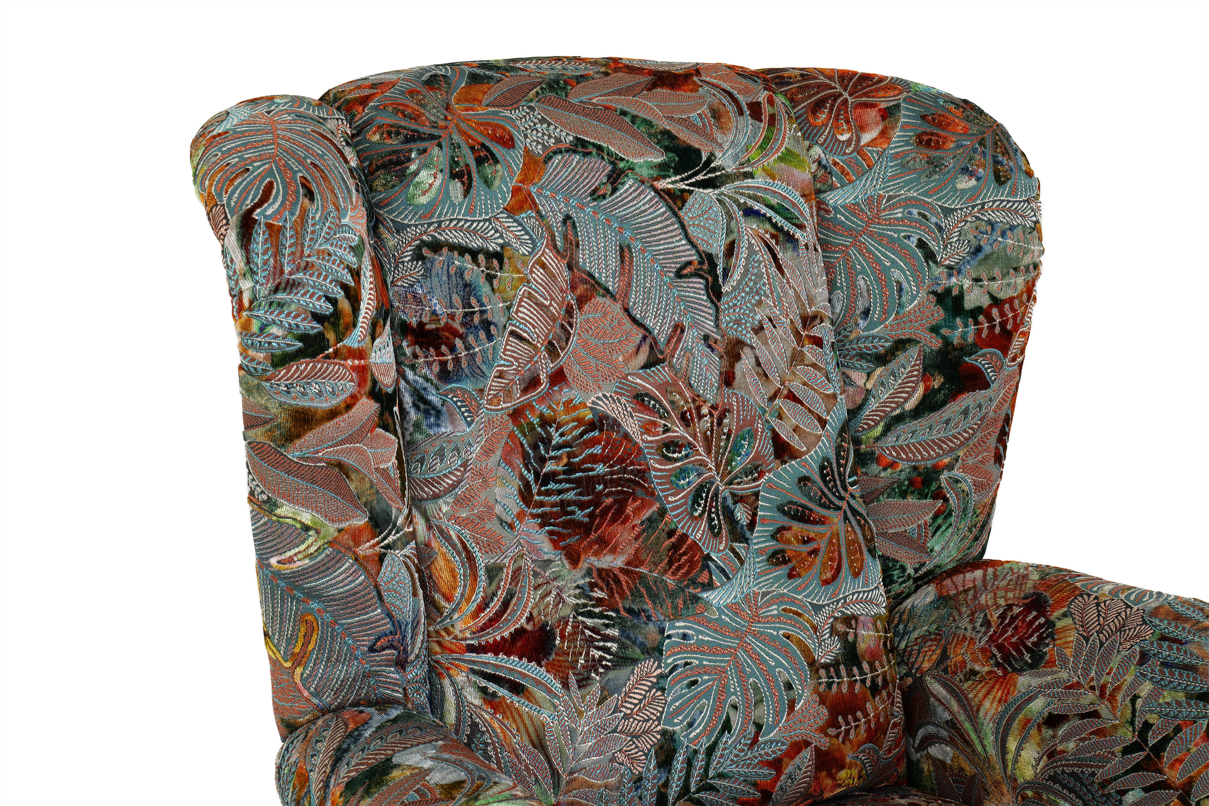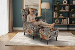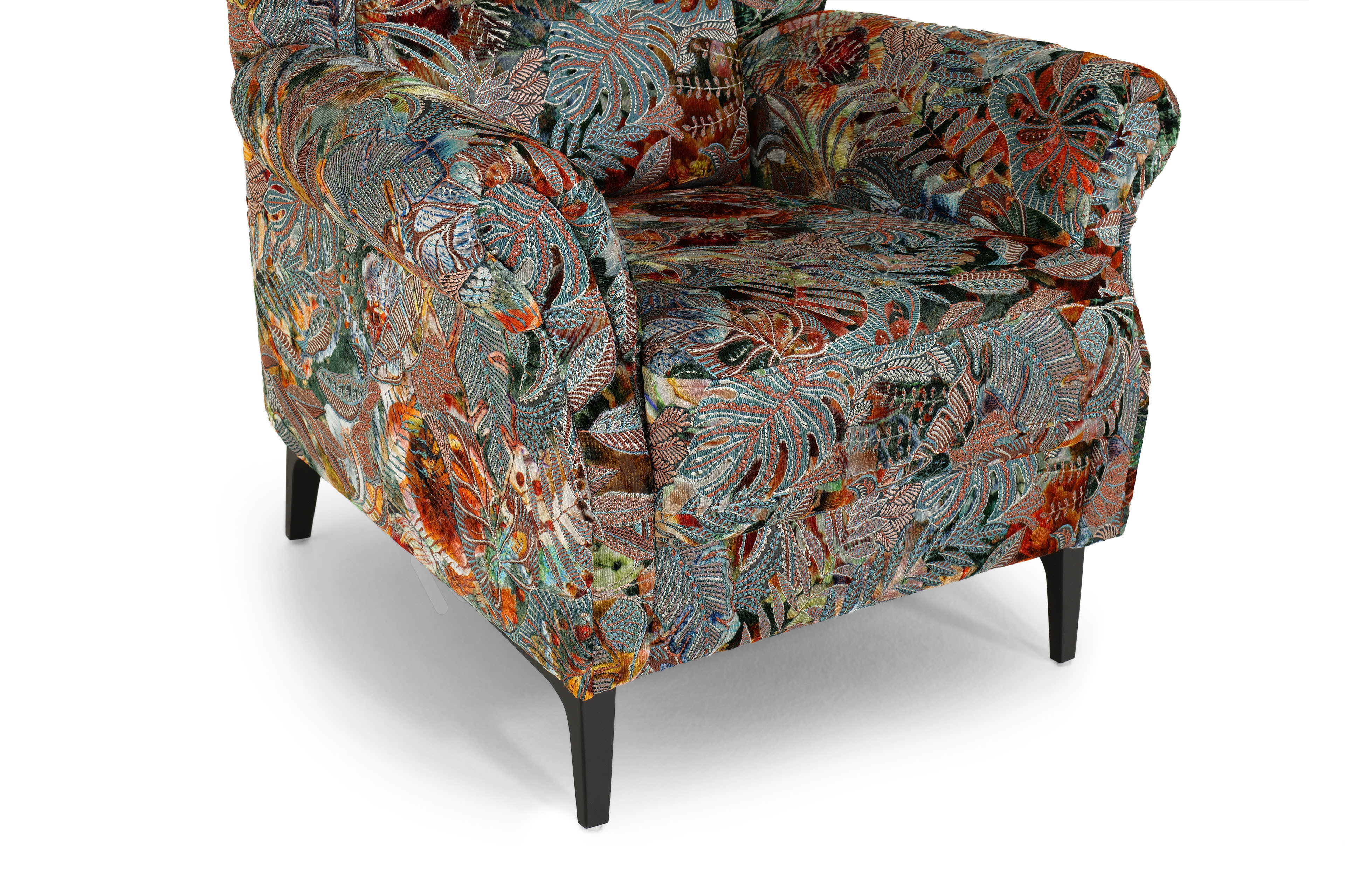 Lassen Sie getrost die Zeit stillstehen, atmen Sie durch und halten Sie inne, um Körper und Seele zu regenerieren - auf dem Sessel Duett von PM Oelsa wird Ihnen dies ein Leichtes sein. Klassisch designt, verfügt dieses Modell über eine hohe Rückenlehne, die typischen großen, abgerundeten Armlehnen sowie einen breiten Rücken zum Anlehnen und Wohlfühlen. Doch unabhängig vom zeitlosen Erscheinungsbild: Langweilig war gestern, trendig ist heute. Der weiche Jacquard-Chenille-Flachgewebe-Bezug im wunderschönen floralen Muster zaubert aus dem 1-Sitzer einen absoluten Blickfang, welcher zum sofortigen Niederlassen verführt. Widerstehen Sie dem nicht und nehmen Sie umgehend Platz. Die Polsterung, bestehend aus einem Superbonell-Federkern im Sitz, welche optional gegen einen angenehmen Kaltschaum gewechselt werden kann, sowie einem hochwertigen PUR-Schaum im Rücken, schenkt Ihnen ein erholsames Sitzgefühl. Die unterschiedlichen Fußausführungen in Kombination mit der vielfältigen Bezugsauswahl ermöglichen es Ihnen, sich Ihren ganz eigenen, individuellen Solisten zu kreieren. Ferner steht Ihnen ein passender Hocker zur Auswahl, um auch müden Beinen eine verdiente Auszeit zu gönnen. Ob als Einzelmöbel neben einem prall gefüllten Bücherregal für Augenblicke der Ruhe und Entspannung oder, ganz im Zeichen des Modellnamens, als Duett im Wintergarten für unvergessliche Momente und ausgiebige Gespräche mit Ihrem Lieblingsmenschen, mit diesem Ohrensessel hält ein hohes Maß an Behaglichkeit Einzug in Ihr Zuhause. Möchten auch Sie Ihren Wohnraum mit traumhaftem Wohlgefühl und einem unverwechselbaren Highlight bereichern? Dann zögern Sie nicht und bestellen Sie Duett aus dem Hause PM Oelsa nach heute.