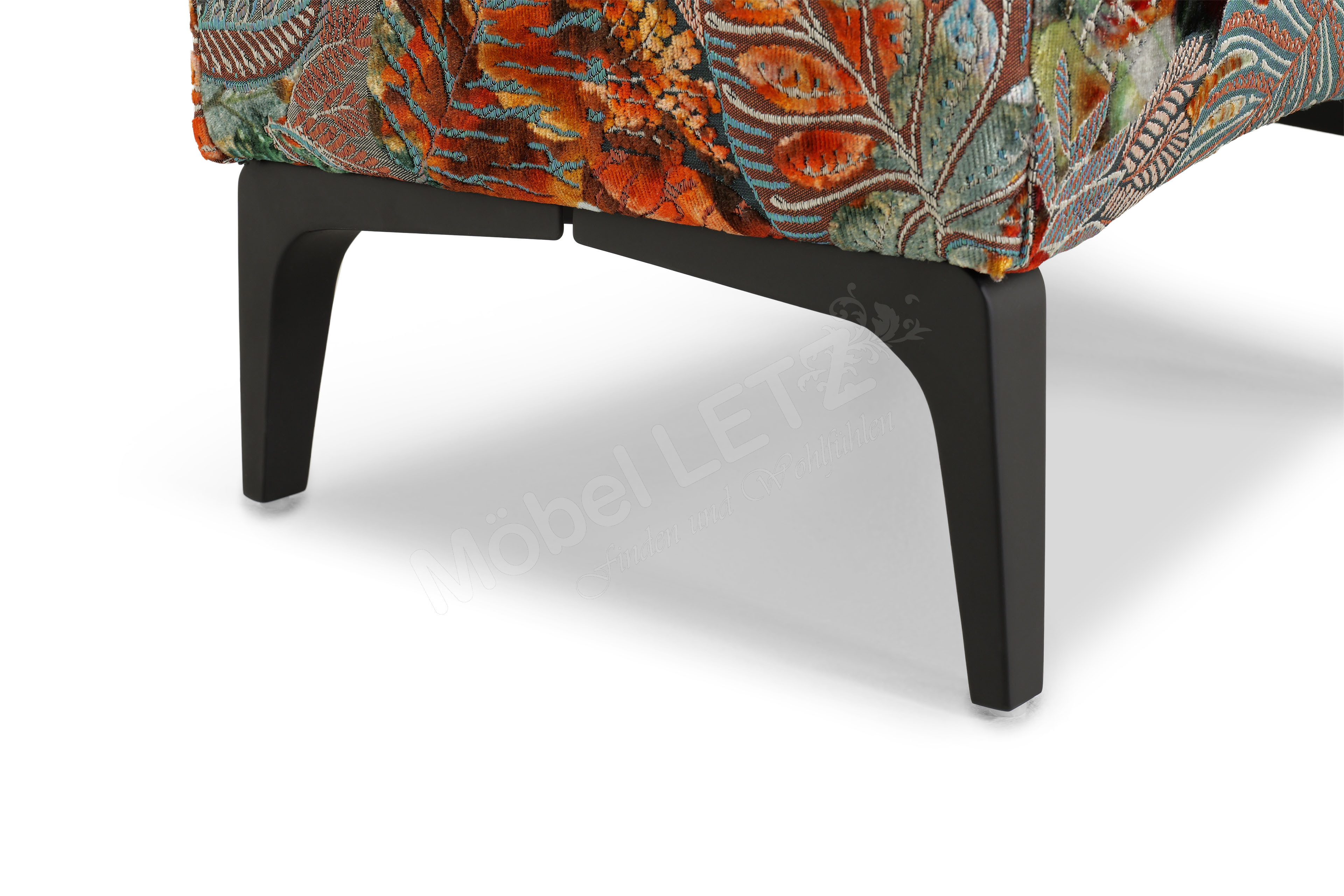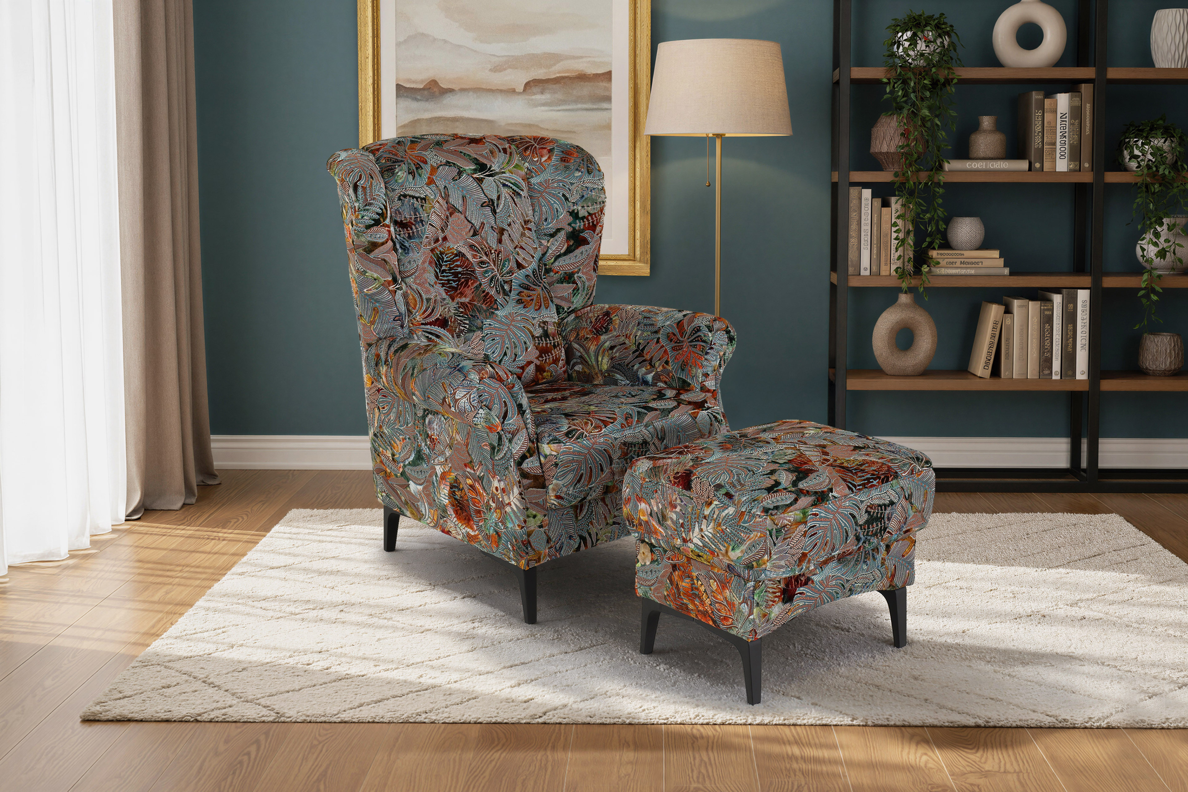 Lassen Sie getrost die Zeit stillstehen, atmen Sie durch und halten Sie inne, um Körper und Seele zu regenerieren - auf dem Sessel Duett von PM Oelsa wird Ihnen dies ein Leichtes sein. Klassisch designt, verfügt dieses Modell über eine hohe Rückenlehne, die typischen großen, abgerundeten Armlehnen sowie einen breiten Rücken zum Anlehnen und Wohlfühlen. Doch unabhängig vom zeitlosen Erscheinungsbild: Langweilig war gestern, trendig ist heute. Der weiche Jacquard-Chenille-Flachgewebe-Bezug im wunderschönen floralen Muster zaubert aus dem 1-Sitzer einen absoluten Blickfang, welcher zum sofortigen Niederlassen verführt. Widerstehen Sie dem nicht und nehmen Sie umgehend Platz. Die Polsterung, bestehend aus einem Superbonellfederkern im Sitz sowie einem hochwertigen PUR-Schaum im Rücken, schenkt Ihnen ein erholsames Sitzgefühl. Die Metallfüße in der Ausführung "black matt" verleihen einen modernen Look und runden das Gesamtbild gekonnt ab. Der passende Hocker ist bereits im Angebot enthalten, um auch müden Beinen eine verdiente Auszeit zu gönnen. Ob als Polsterduo neben einem prall gefüllten Bücherregal für Augenblicke der Ruhe und Entspannung oder im Wintergarten für unvergessliche Momente und ausgiebige Gespräche mit Ihrem Lieblingsmenschen, mit dem Ohrensessel Duett inklusive Hocker hält ein hohes Maß an Behaglichkeit Einzug in Ihr Zuhause. Möchten auch Sie Ihren Wohnraum mit traumhaftem Wohlgefühl und einem unverwechselbaren Highlight bereichern? Dann zögern Sie nicht und bestellen Sie Duett aus dem Hause PM Oelsa nach heute.