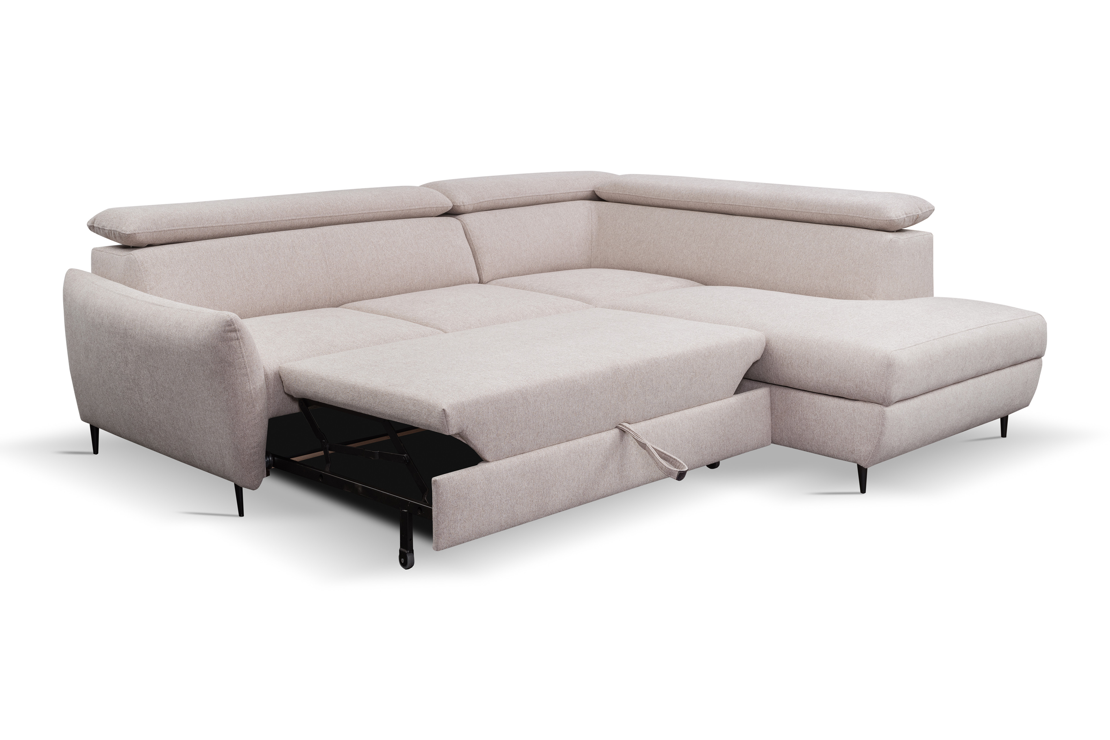 Die stylishe BENIX Couch Othello verwandelt Ihr Wohnzimmer in eine Oase der Geborgenheit, denn sie schafft mit ihrem modernen Design, hervorragendem Sitzkomfort sowie ihrer praktischen Funktionen eine harmonische, einladende Atmosphäre. Die etwa 253 x 207-212 cm große Eckgarnitur, bestehend aus einem 2-Sitzer und einer anschließenden Ottomane, zeigt sich in einem beigefarbenen Stoffbezug, welcher sich optimal mit jedem Wohnstil kombinieren lässt und zugleich eine wohnliche Behaglichkeit ausstrahlt. Ob beim Lesen in der Tageszeitung oder beim durchstöbern des Fernsehprogramms - die Kopfteilverstellung passt sich ganz nach Ihren Bedürfnissen an und macht jeden Moment besonders entspannend. Im Nu lässt sich das Möbelstück in ein komfortables Nachtlager verzaubern und bietet mit einer großzügigen Liegefläche von ca. 190 x 130 cm genügend Fläche, um einen erholsamen Schlaf zu genießen. Der integrierte Bettkasten schenkt Ihnen ausreichend Stauraum, in dem sich Kuscheldecken sowie Kissen griffbereit verstauen lassen. Das Modell Othello aus dem Hause BENIX Polstermöbel ist das ideale Sofa, um sich nach einem langen Arbeitstag auszuruhen, für ein gemütliches Beisammensein mit der Familie oder gesellige Runden mit Freunden.
