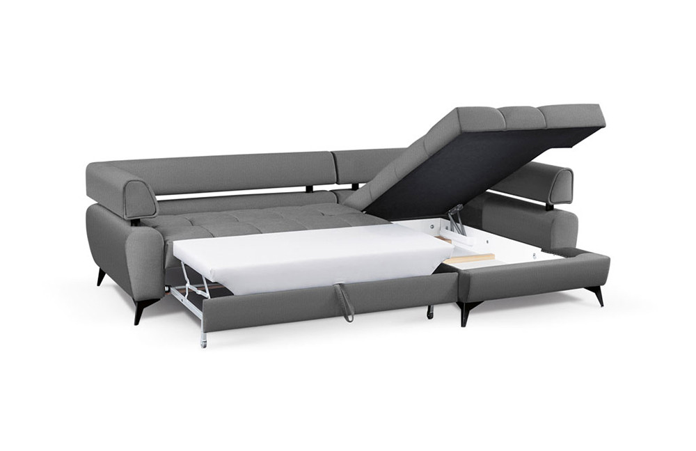 Der Hersteller BENIX Polstermöbel hat mit dem Ecksofa Paris-LE25 ein Möbelstück erschaffen, welches mit ihrer schönen Formengebung und gut durchdachten Details jedes Zuhause bereichert. Mit einem Microfaser-Bezug in Hellgrau sowie mit schwarzen Metallfüßen, welche für viel Bodenfreiheit sorgen, beeindruckt das Modell direkt beim ersten Anblick und fügt sich dank ihrem dezenten Äußeren perfekt in verschiedene Wohnstile ein. Schnappen Sie sich doch mal wieder Ihr Lieblingsbuch, schalten Sie einen spannenden Film an oder laden Sie Ihre besten Freunde ein, um den neusten Klatsch und Tratsch auszutauschen und genießen Sie zauberhafte Momente auf dem ca. 267 x 188 cm großen Polstersofa, welches Ihnen sowie Ihren Gästen mit einer Schaumstoffpolsterung auf einer Wellenunterfederung ein herrliches Sitzerlebnis schenkt. In den Zusatzoptionen finden Sie die Möglichkeit, die Ottomane mit einem aufklappbaren Bettkasten auszurüsten, welcher einen großzügigen Stauraum für Alltagsgegenstände bietet. Zudem können Sie den 2-Sitzer mit einer Schlaffunktion ausstatten. Die Polsterecke stellt mit einer Liegefläche von ca. 223 x 151 cm ausreichend Wohlfühlplatz bereit, um eine erholsame Nacht zu genießen. Außerdem steht Ihnen noch ein passender Hocker zur Verfügung, welcher das Gesamtbild perfekt abrundet. Paris-LE25 von BENIX - eine stilvolle Ergänzung für jedes Wohnzimmer.