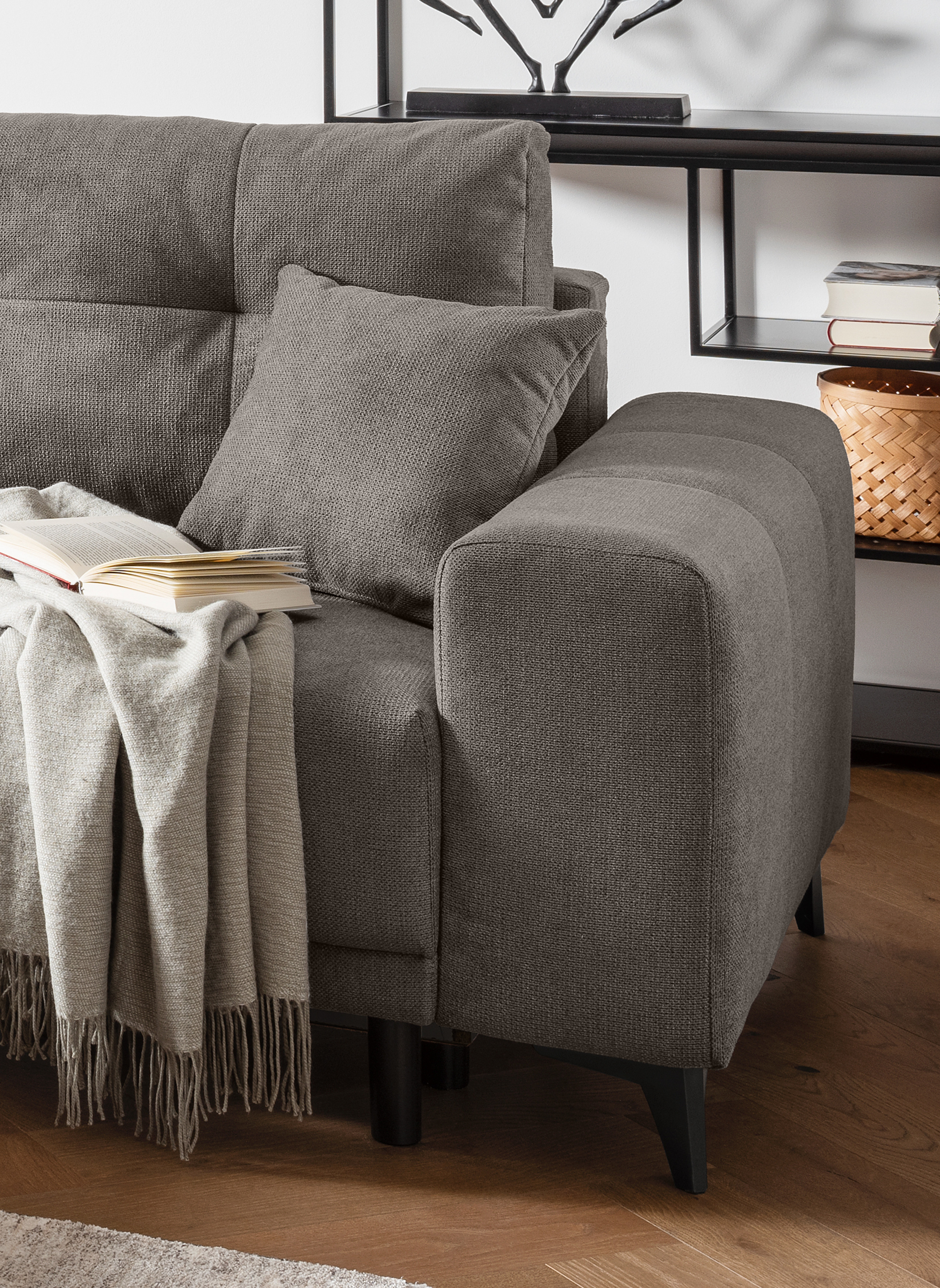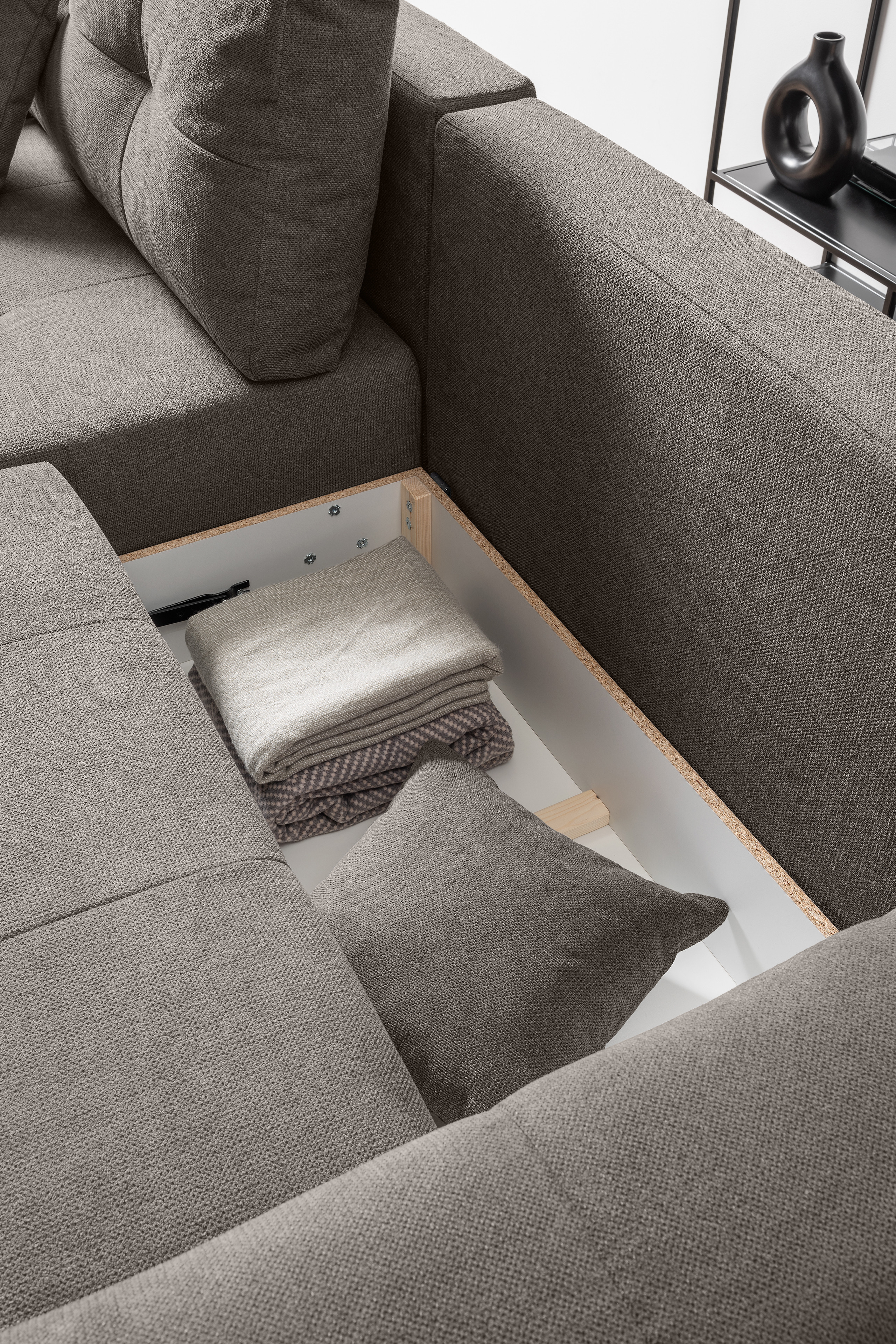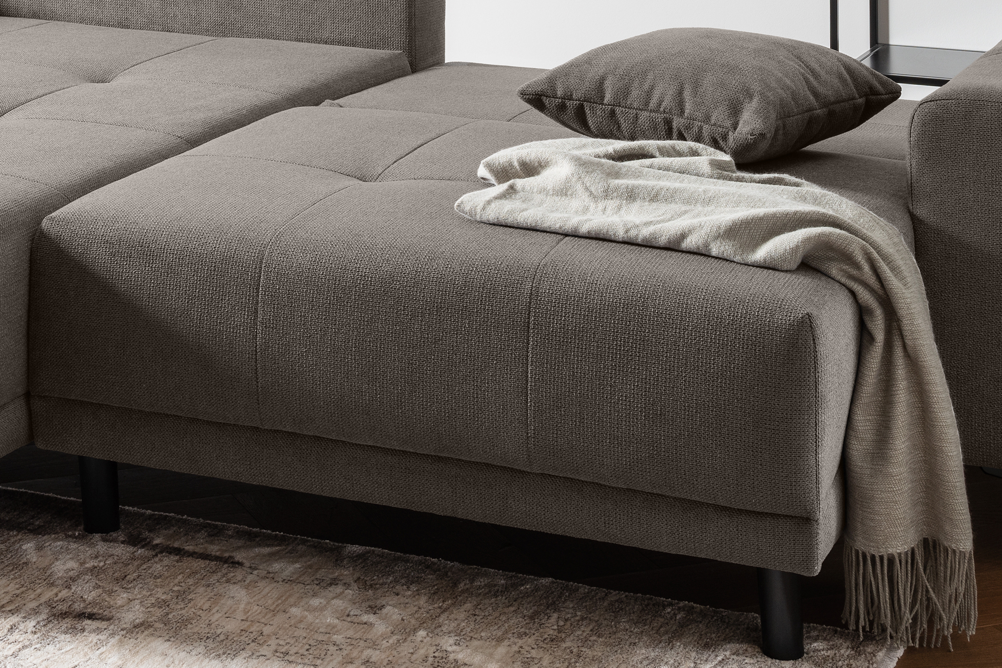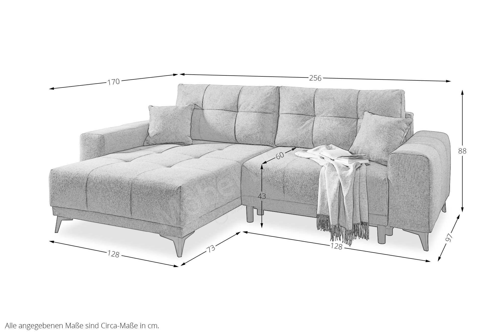 Praktisch und komfortabel zugleich - das Ecksofa Appassito aus dem Hause Benformato Polstermöbel. Mit einem kompakten Stellmaß von ca. 170 x 256 cm lässt sich die Garnitur besonders gut in kleine sowie verwinkelte Wohnräume integrieren. Mit ihren klaren Linien, der eleganten Steppung und den dezenten Füßen fügt sie sich zudem mühelos in verschiedenste Einrichtungsstile ein - von minimalistisch bis gemütlich-modern. Der hochwertige Chenille-Flachgewebe-Bezug fühlt sich angenehm weich an und überzeugt gleichzeitig durch seine Strapazierfähigkeit im Alltag. Eine Komfortschaumpolsterung bietet die perfekte Grundlage zum Entspannen, während die bequemen Rücken- sowie Zierkissen zusätzlichen Komfort bieten - ideal für lange Abende oder entspannte Wochenenden. Ein besonderes Highlight ist die integrierte Schlaffunktion: Mit wenigen Handgriffen lässt sich das Sofa in eine komfortable Liegefläche verwandeln. So sind Sie bestens vorbereitet für spontane Übernachtungsgäste oder gemütliche Filmabende mit extra viel Platz. Dafür benötigte Kissen und Decken finden im inkludierten Bettkasten ihren Platz. Typisch für Benformato: Die Eckcouch ist in zahlreichen Bezugsmaterialien erhältlich. Stöbern Sie einfach durch die Bezugsübersicht, entscheiden Sie sich für den passenden Stoff im präferierten Farbton und kreieren Sie mit nur wenigen Klicks ein Sofa, welches demnächst in Ihr Zuhause einziehen darf. Appassito von Benformato - Ihr Platz zum Wohlfühlen.