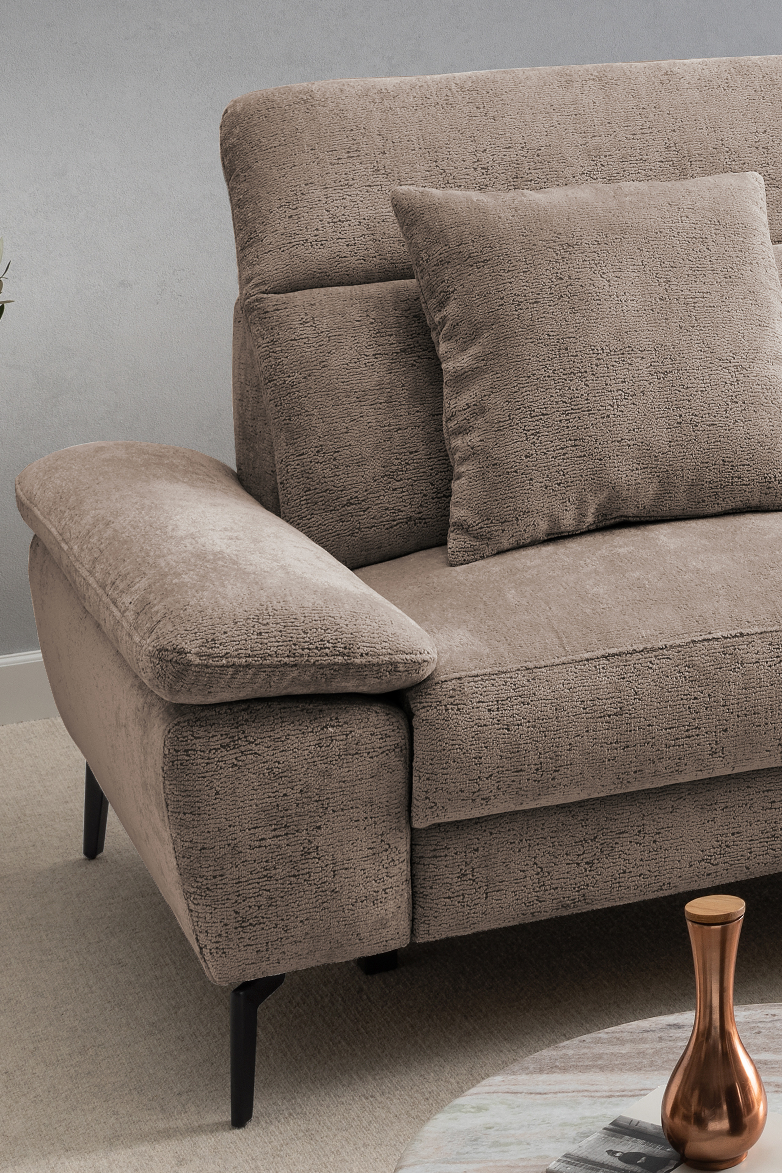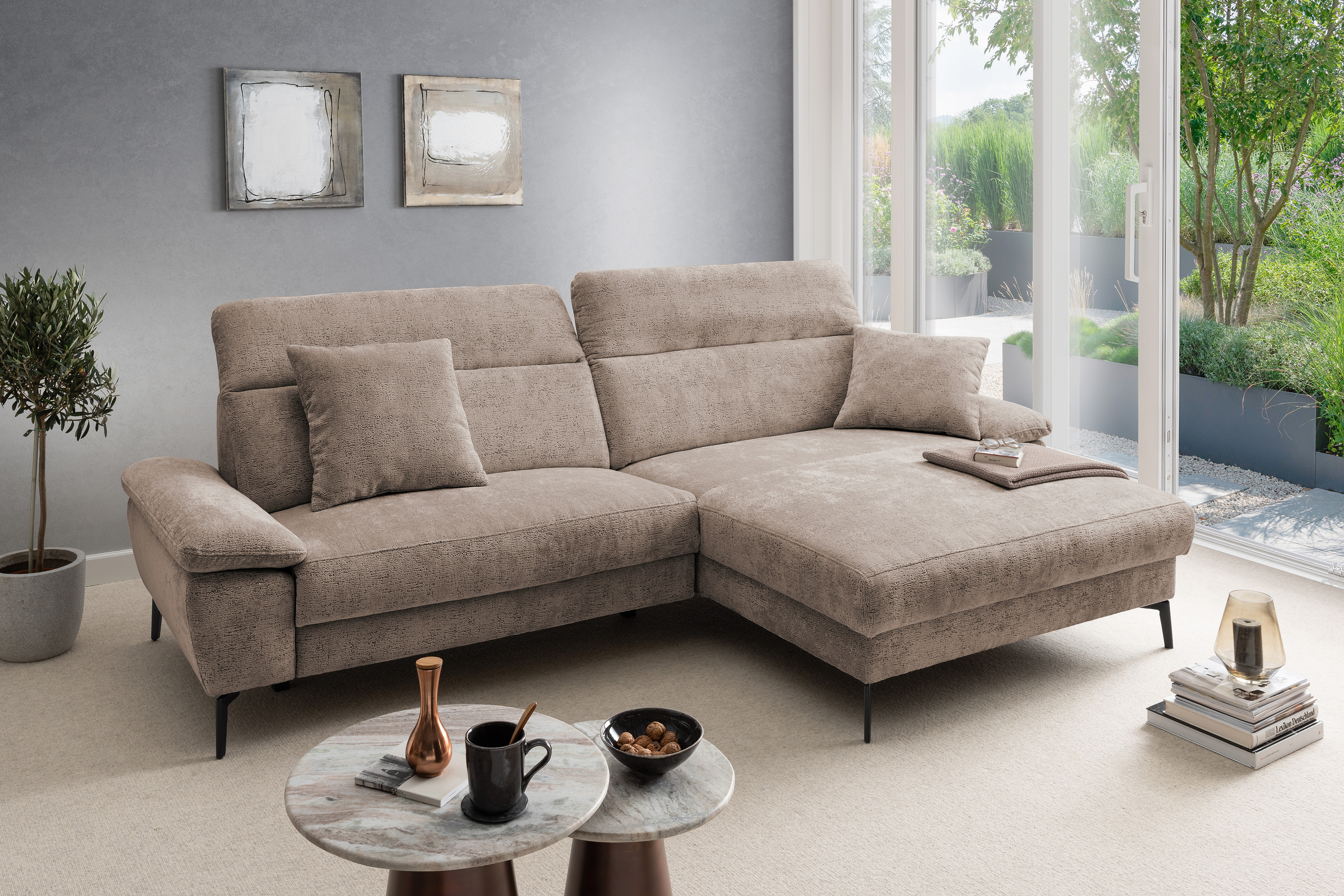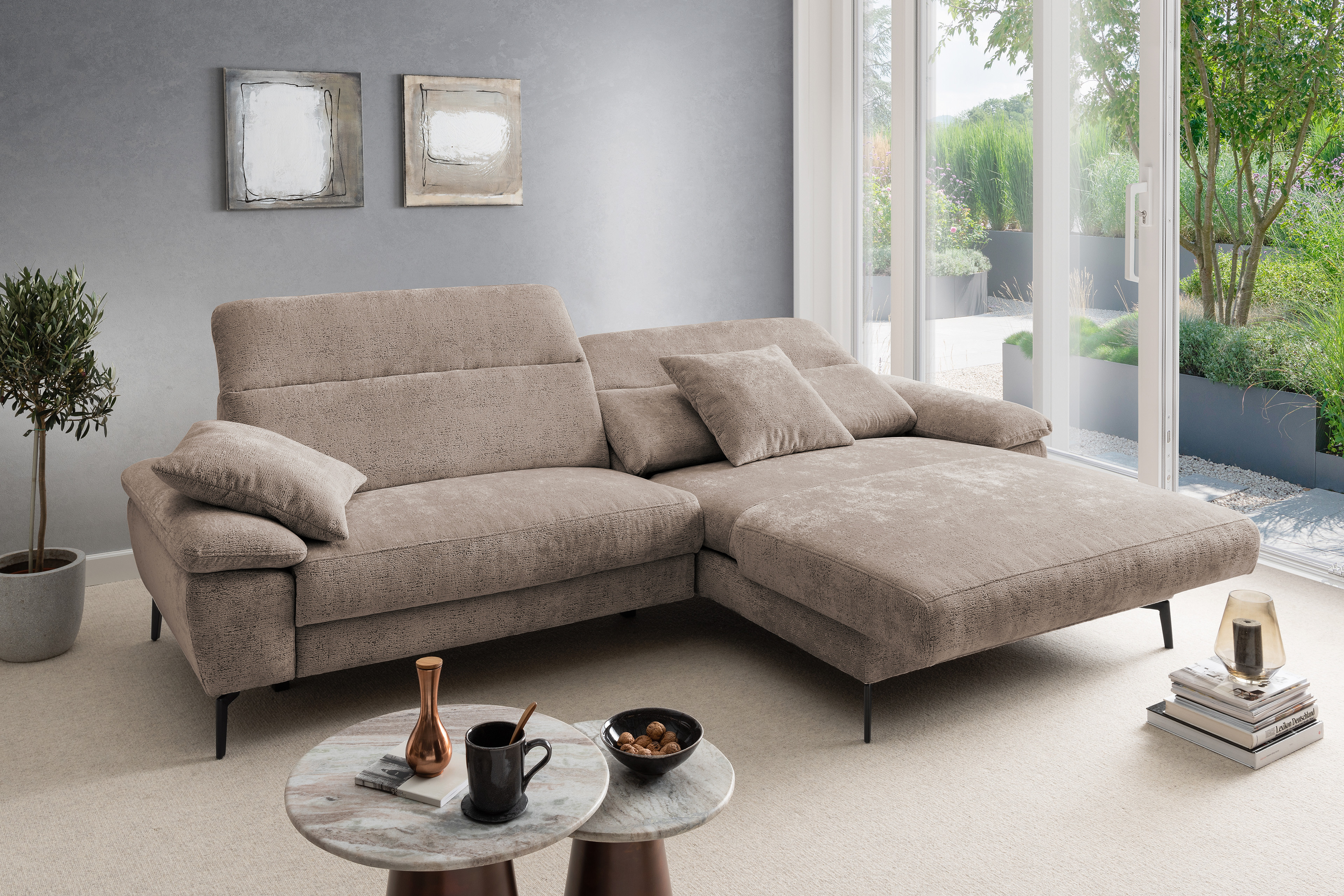 Stellen Sie sich vor, Sie kommen nach einem langen Tag nach Hause. Sie lassen sich fallen und der Stress des Alltags bleibt einfach draußen. Die moderne Eckgarnitur Cancelli von Benformato ist nicht einfach nur ein Möbelstück, sie ist Ihre persönliche Wohlfühloase. Ganz gleich, ob ein geselliger Wein-Abend mit Ihren liebsten Freunden ansteht oder Sie den perfekten Serien-Marathon planen: Auf der großzügigen Zusammenstellung aus einem 2-Sitzer mit anschließender Recamiere findet das Leben statt. Die hochwertige Federkern-Polsterung fängt Sie sanft auf und bietet einen Sitzkomfort, der Sie den Alltag vergessen lässt. Passen Sie die Kopfteile mit einem einfachen Handgriff genau an Ihre Bedürfnisse an und spüren Sie, wie sich die Anspannung löst. Sie möchten den absoluten Luxus? Gönnen Sie sich das Upgrade auf die elektrische Relaxfunktion im 2-Sitzer. Ein Knopfdruck genügt, und Sie gleiten sanft in die wohltuende Herz-Waage-Position. Ihre Beine ruhen auf einer Höhe mit Ihrem Herzen - ein Gefühl von Schwerelosigkeit, das Ihren Kreislauf spürbar entlastet. Eingehüllt in ein kuschelweiches Chenille-Flachgewebe, verleiht die Garnitur Ihrem Wohnzimmer eine unwiderstehlich behagliche Atmosphäre. Und weil Ihr Zuhause so individuell ist wie Sie: Wählen Sie aus einer riesigen Farb- und Stoffkollektion genau das Design, das Ihr Herz höherschlagen lässt. Schaffen Sie sich den Rückzugsort, den Sie verdienen. Holen Sie sich die Cancelli von Benformato nach Hause.