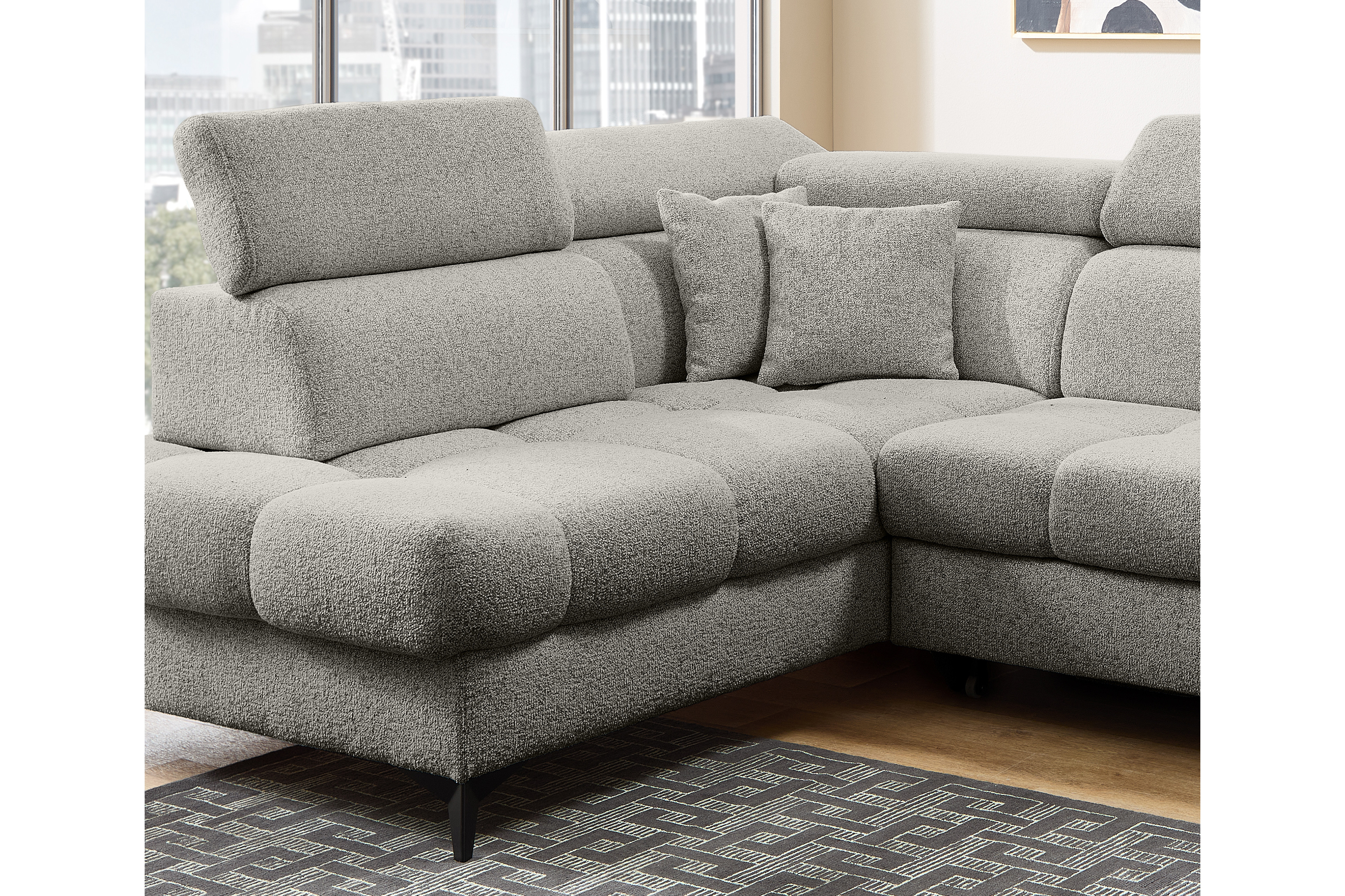 - Funktionen: Ottomane mit Sitztiefenverstellung (in der Ecke nicht möglich), Kopfteilverstellung