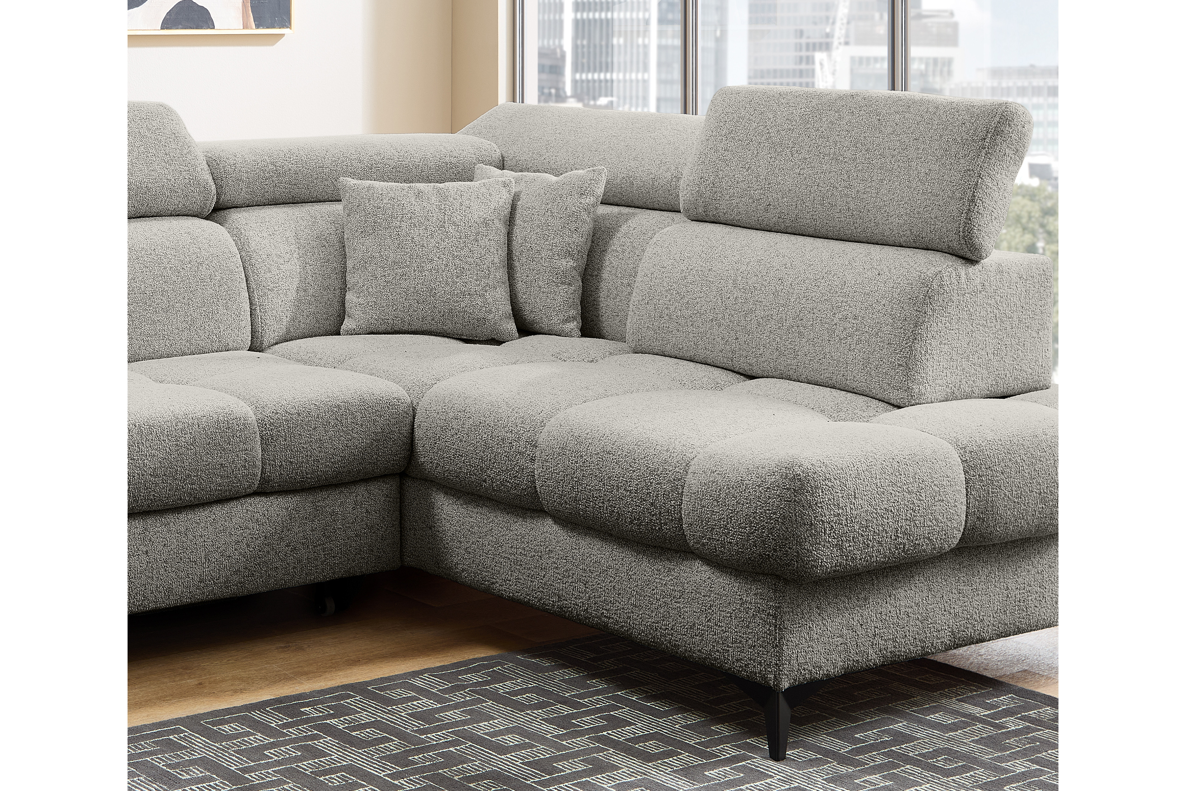 - Funktionen: Ottomane mit Sitztiefenverstellung (in der Ecke nicht möglich), Kopfteilverstellung