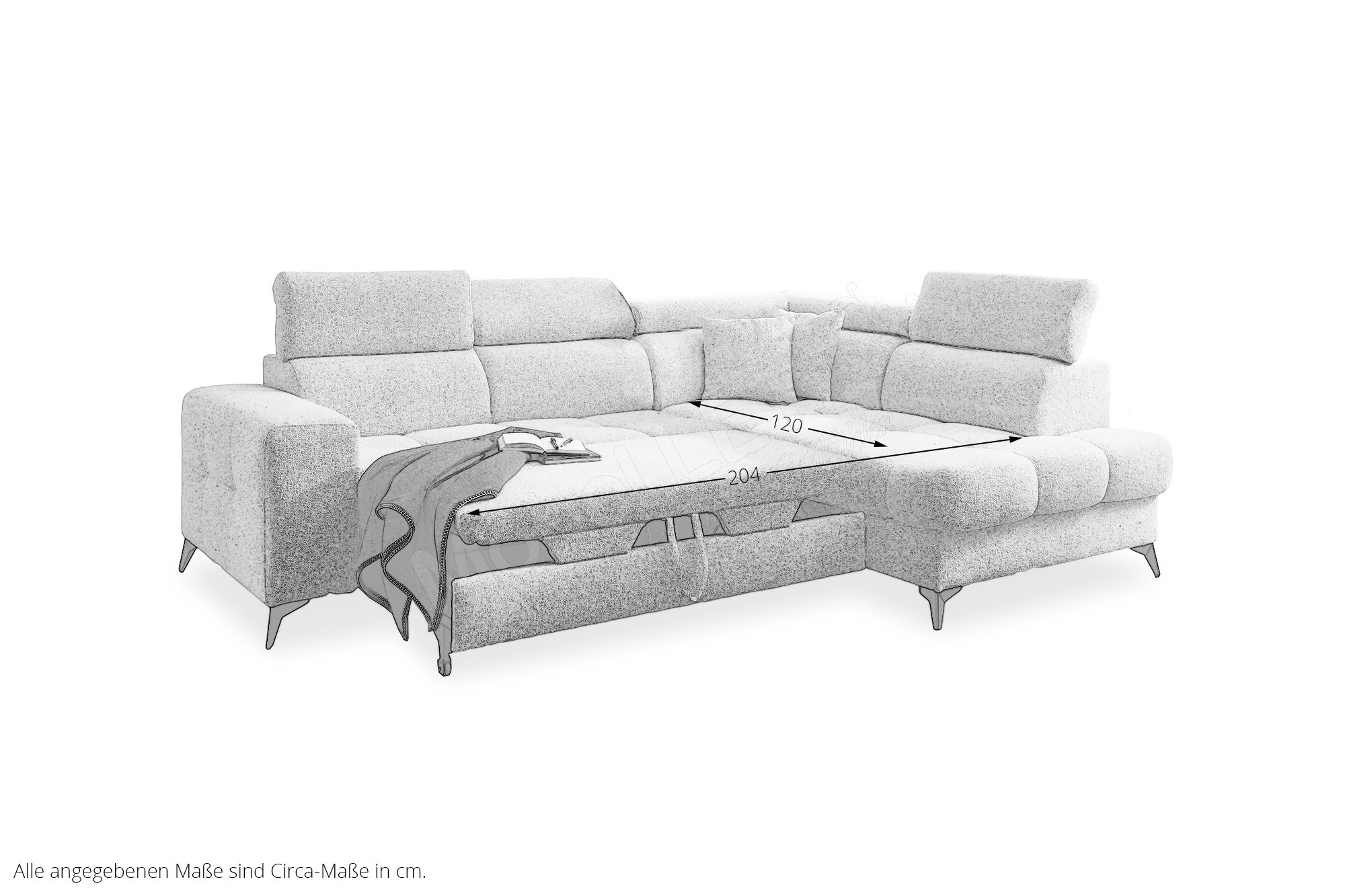 Für alle kostbaren Momente der Ruhe wurde die Polstergarnitur Gobi von Benformato kreiert. Sie ist weit mehr als nur ein Möbelstück - sie ist Ihr persönlicher Rückzugsort. Ob Sie einen geselligen, unvergesslichen Abend mit guten Freunden verbringen oder an einem verregneten Sonntag gemütlich vor dem Fernseher die Seele baumeln lassen möchten: Gobi empfängt Sie stets mit einer einladenden Umarmung. Der weiche Komfortschaum, der sanft von einer stützenden Wellenunterfederung getragen wird, macht die Garnitur zu einem Ort der puren Entspannung. Wenn der Nacken nach einem anstrengenden Tag nach Entlastung ruft, passen sich die flexibel verstellbaren Kopfteile perfekt an Ihre individuellen Bedürfnisse an. So finden Sie mühelos exakt die Position, in der Sie tief durchatmen und restlos loslassen können. Der helle, freundliche Strukturstoff bringt eine strahlende Leichtigkeit in Ihren Raum und fügt sich harmonisch in nahezu jeden Einrichtungsstil ein. Er umschmeichelt die Sinne und ist zugleich so strapazierfähig, dass er das echte Leben mühelos sowie dauerhaft begleitet. Wenn ein wunderbarer Abend einmal länger dauert und Ihre Gäste über Nacht bleiben, erweist sich Ihr neues Lieblingsstück als vollendeter Gastgeber. Mit der inkludierten Schlaffunktion verwandeln Sie das Sofa mit nur wenigen Handgriffen in eine großzügige und gemütliche Liegefläche von etwa 204 x 120 cm. Die kuscheligen Decken und Kissen für Ihre Besucher zaubern Sie dabei ganz bequem aus dem dazugehörigen Bettkasten. Mit Gobi von Benformato machen Sie Ihr Wohnzimmer zum wahren Mittelpunkt Ihres Zuhauses.