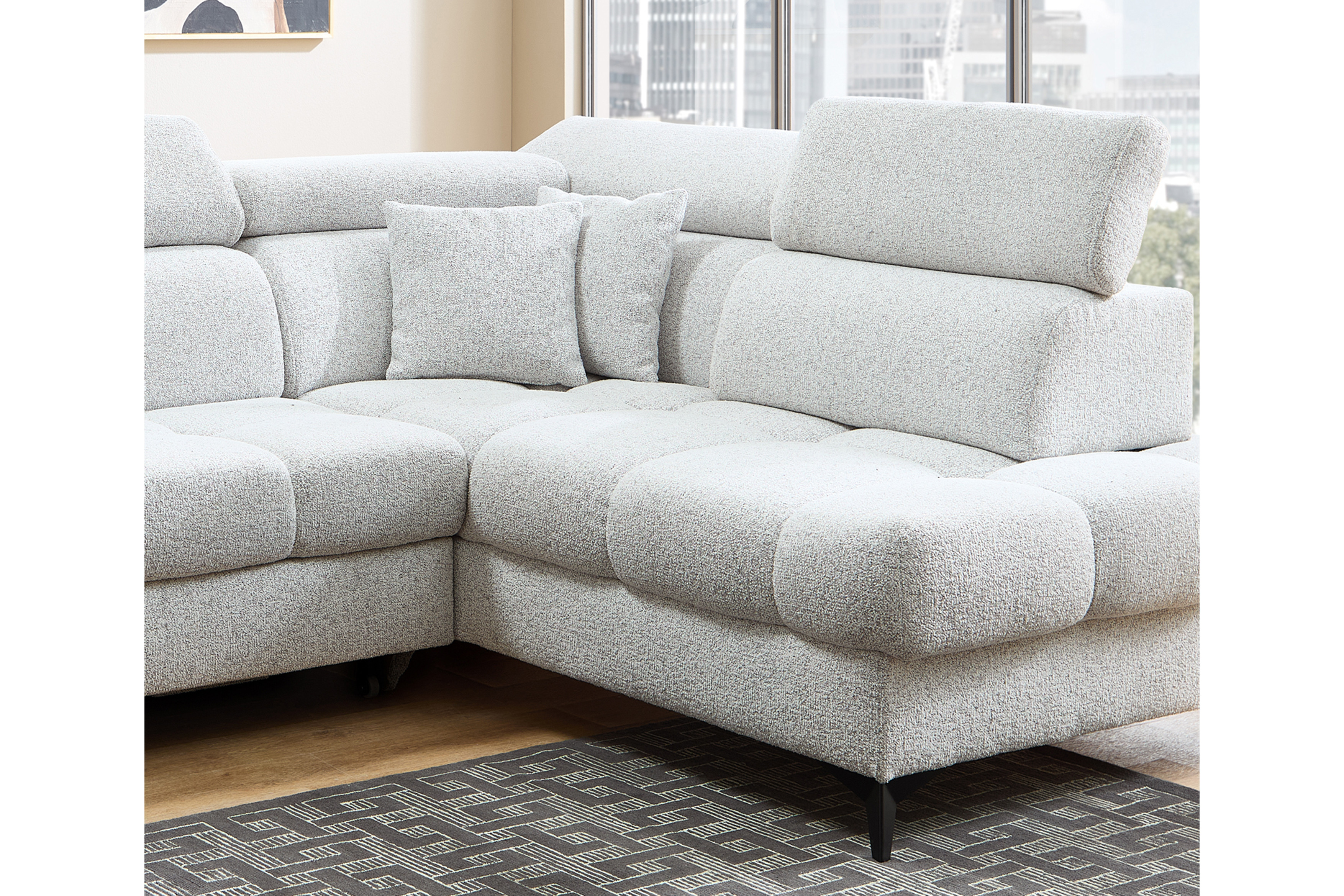 - Funktionen: Ottomane mit Sitztiefenverstellung (in der Ecke nicht möglich), Kopfteilverstellung