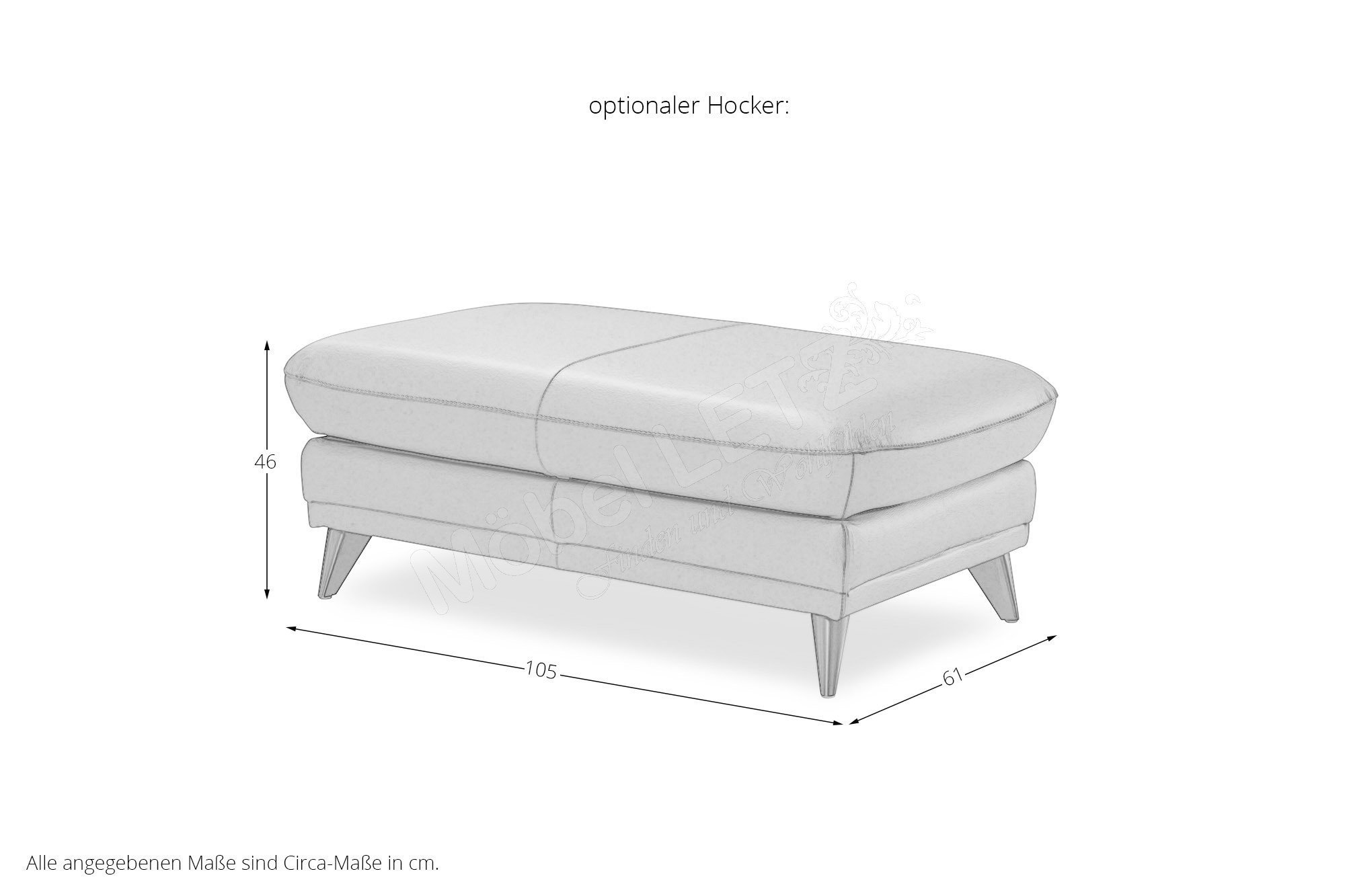Mit dem Ecksofa Bologna von COTTA Polstermöbel holen Sie sich ein absolutes Highlight ins Haus! Dieses Modell im schwarzen Bezug wird Ihnen nicht nur wegen der Optik viele Komplimente einbringen. Das Echtleder, aber auch die Nahtabsetzungen auf den Sitzflächen sowie die extra tiefen Einzüge in den Rückenkissen verleihen dem Gesamtbild eine elegante Note. Die extra dick gepolsterte Armlehne strahlt dabei zusätzliche Gemütlichkeit aus – hier kann man sich getrost fallen lassen. Eine weiche Schaumstoffpolsterung, getragen von einer Nosagunterfederung, wird Sie auffangen. Es gibt nichts Schöneres, als nach Hause zu kommen, um den anstrengenden Tag gemütlich auf dem Sofa ausklingen zu lassen. Legen Sie die Beine hoch und entspannen Sie sich nach Herzenslust. Nicht immer steht einem der Sinn nach Ruhe und Gelassenheit, dann darf es auch mal der gesellige Abend mit Freunden sein. Mit der optionalen Schlaffunktion können Sie Ihren Besuch nun auch problemlos über Nacht beherbergen. Ihren Gästen steht so dann eine Liegefläche von ca. 191 x 120 cm zur Verfügung. Durch die Auswahl der Schlaffunktion wird die Polsterecke automatisch mit einem kleinen Bettkasten ausgestattet, damit alles griffbereit verstaut ist. Mit dem zusätzlich erhältlichen Hocker schaffen Sie noch einen weiteren Sitzplatz und das Erscheinungsbild ist hervorragend abgerundet. Um die Garnitur perfekt an Ihr Wohnambiente anpassen zu können, stellen wir Ihnen eine großzügige Auswahl an verschiedenen Bezügen in den schönsten Farben zur Verfügung. Kreieren Sie unter "Farbe ändern" Ihren neuen Wohnraum-Mittelpunkt und lassen Sie traumhaftes Wohlgefühl bei sich einziehen – mit Bologna von COTTA.