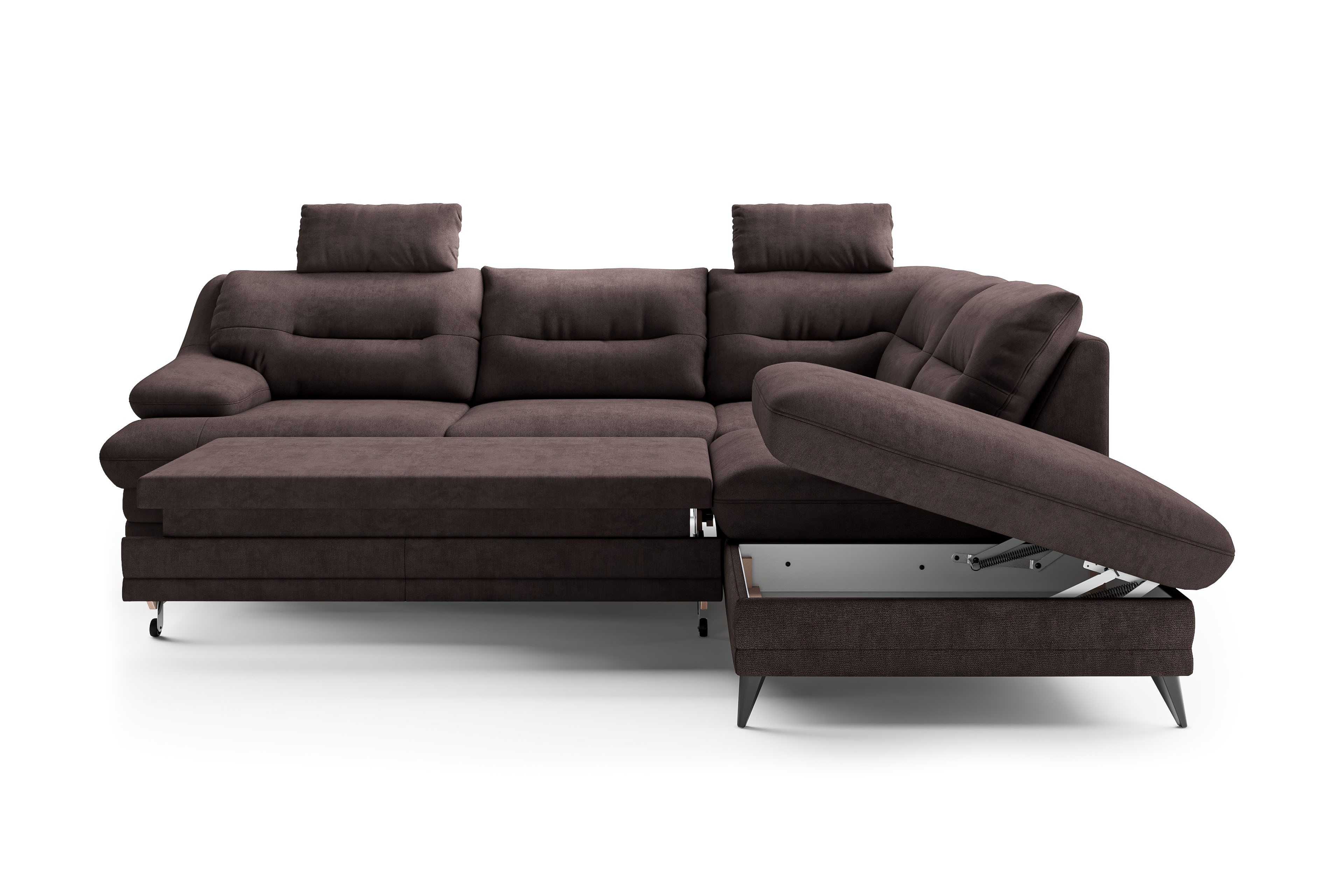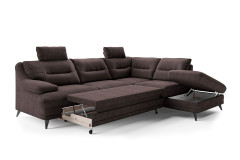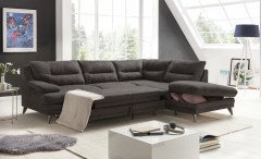 Mit dem Ecksofa Bologna von COTTA Polstermöbel holen Sie sich ein absolutes Highlight ins Haus! Dieses Modell im dunkelbraunen Bezug wird Ihnen nicht nur wegen der Optik viele Komplimente einbringen. Der Flockstoff, aber auch die Nahtabsetzungen auf den Sitzflächen sowie die extra tiefen Einzüge in den Rückenkissen verleihen dem Gesamtbild eine elegante Note. Die extra dick gepolsterte Armlehne strahlt dabei zusätzliche Gemütlichkeit aus – hier kann man sich getrost fallen lassen. Eine weiche Schaumstoffpolsterung, getragen von einer Nosagunterfederung, wird Sie auffangen. Es gibt nichts Schöneres, als nach Hause zu kommen, um den anstrengenden Tag gemütlich auf dem Sofa ausklingen zu lassen. Legen Sie die Beine hoch und entspannen Sie sich nach Herzenslust. Nicht immer steht einem der Sinn nach Ruhe und Gelassenheit, dann darf es auch mal der gesellige Abend mit Freunden sein. Mit der optionalen Schlaffunktion können Sie Ihren Besuch nun auch problemlos über Nacht beherbergen. Ihren Gästen steht so dann eine Liegefläche von ca. 191 x 120 cm zur Verfügung. Durch die Auswahl der Schlaffunktion wird die Polsterecke automatisch mit einem kleinen Bettkasten ausgestattet, damit alles griffbereit verstaut ist. Mit dem zusätzlich erhältlichen Hocker schaffen Sie noch einen weiteren Sitzplatz und das Erscheinungsbild ist hervorragend abgerundet. Um die Garnitur perfekt an Ihr Wohnambiente anpassen zu können, stellen wir Ihnen eine großzügige Auswahl an verschiedenen Bezügen in den schönsten Farben zur Verfügung. Kreieren Sie unter "Farbe ändern" Ihren neuen Wohnraum-Mittelpunkt und lassen Sie traumhaftes Wohlgefühl bei sich einziehen – mit Bologna von COTTA.