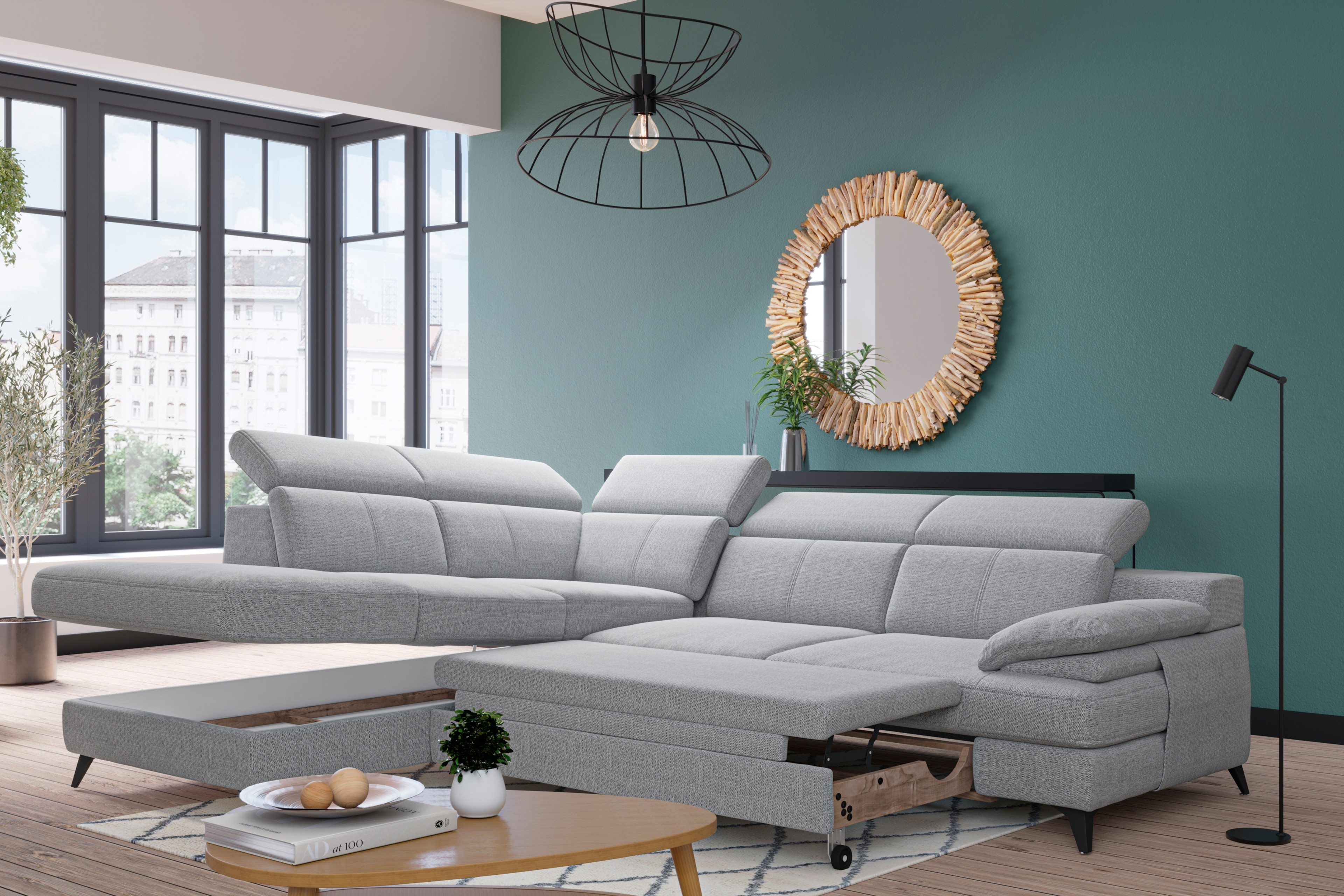 3-Sitzer mit Schlaffunktion und Ottomane mit Bettkasten