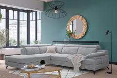 Ihnen steht der Sinn nach einer räumlichen Veränderung und ein neues Sofa steht dabei ganz oben auf der Wunschliste? Dann erfüllt das Modell Titus-LE26 von Cotta Polstermöbel ja vielleicht Ihren persönlichen Wohlfühltraum! In der abgebildeten Zusammenstellung aus einer Ottomane sowie einem anschließenden 3-Sitzer glänzt die Garnitur mit fabelhafter Optik und perfekter Funktionalität. Ein Bezug aus Chenille-Flachgewebe, ein pflegefreundliches sowie kuschelweiches Material mit atmungsaktiver Oberfläche, umhüllt das Modell, welches auf schwarzen Metallfüßen steht und mit einem dekorativen Einzug in den festen Rückenkissen versehen ist. Doch Titus-LE26 besticht nicht nur mit einem grandiosen Äußeren: Das Ecksofa verfügt bereits im Grundangebot über eine überaus praktische Kopfteilverstellung – lehnen Sie sich an die justierbaren Kopfteile, schalten Sie Ihr Lieblingsprogramm im Fernseher ein und genießen Sie die freien Nachmittags- sowie Abendstunden in vollen Zügen. Sollten Sie sich noch mehr Platz zum Entspannen sowie einen Stauraum für Ihre Kuscheldecke wünschen, können Sie sich ganz einfach für eine Schlaffunktion, welche eine Liegefläche von ca. 202 x 122 cm eröffnet, mit einem dazugehörigen Bettkasten entscheiden. Überzeugt? Jedoch der abgebildete Farbton oder der Bezug entsprechen nicht ganz Ihren Vorstellungen? Auch das ist überhaupt kein Problem – ein Klick auf "Farbe ändern" öffnet Ihnen unsere Auswahl an attraktiven Stoffbezügen und zahlreichen weiteren Farbmöglichkeiten. Bestellen Sie noch heute Titus-LE26 aus dem Hause Cotta Polstermöbel und lassen Sie Behaglichkeit in Ihr Heim einziehen.