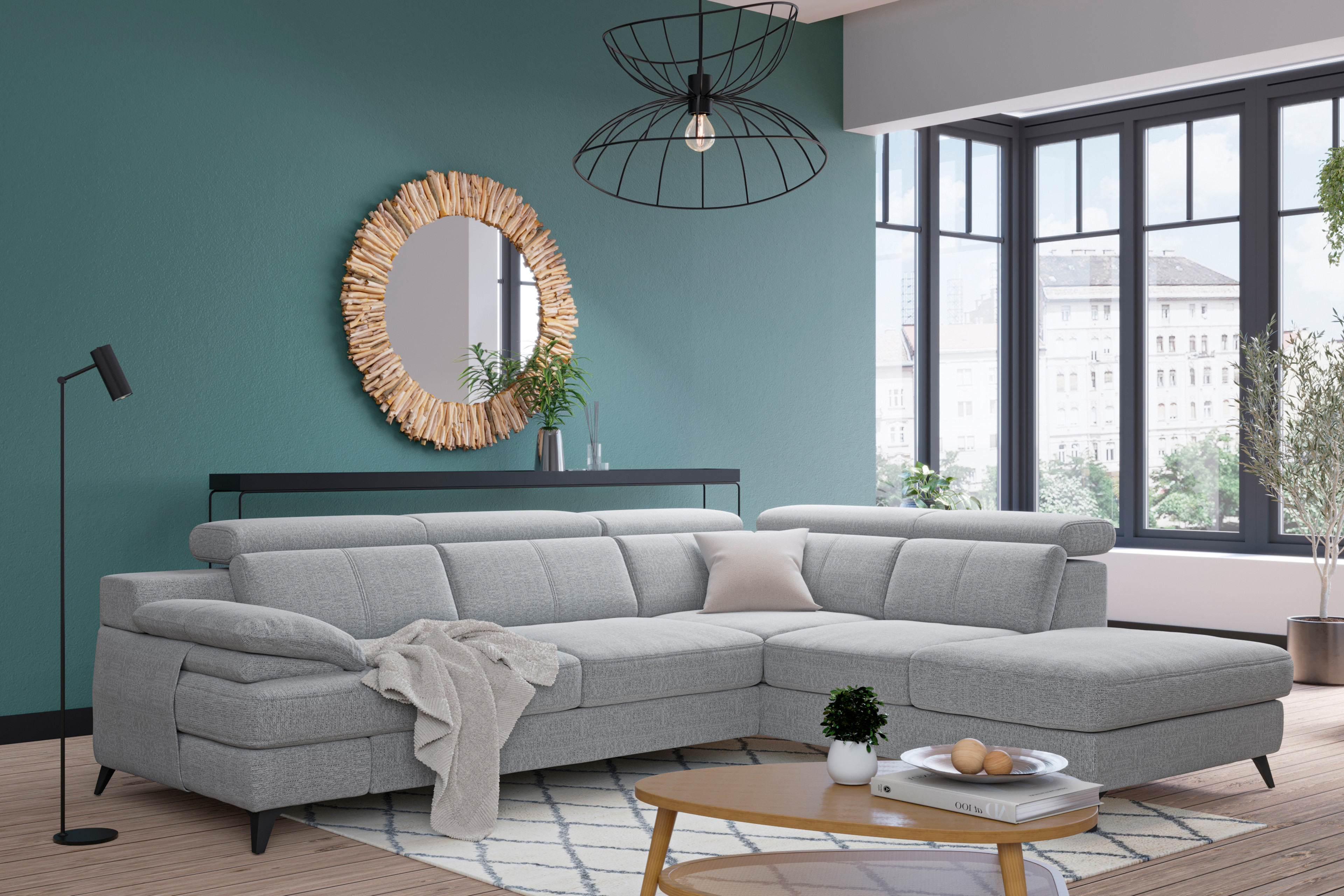 Ihnen steht der Sinn nach einer räumlichen Veränderung und ein neues Sofa steht dabei ganz oben auf der Wunschliste? Dann erfüllt das Modell Titus-LE26 von Cotta Polstermöbel ja vielleicht Ihren persönlichen Wohlfühltraum! In der abgebildeten Zusammenstellung aus einem 3-Sitzer sowie einer anschließenden Ottomane glänzt die Garnitur mit fabelhafter Optik und perfekter Funktionalität. Ein Bezug aus Chenille-Flachgewebe, ein pflegefreundliches sowie kuschelweiches Material mit atmungsaktiver Oberfläche, umhüllt das Modell, welches auf schwarzen Metallfüßen steht und mit einem dekorativen Einzug in den festen Rückenkissen versehen ist. Doch Titus-LE26 besticht nicht nur mit einem grandiosen Äußeren: Das Ecksofa verfügt bereits im Grundangebot über eine überaus praktische Kopfteilverstellung – lehnen Sie sich an die justierbaren Kopfteile, schalten Sie Ihr Lieblingsprogramm im Fernseher ein und genießen Sie die freien Nachmittags- sowie Abendstunden in vollen Zügen. Sollten Sie sich noch mehr Platz zum Entspannen sowie einen Stauraum für Ihre Kuscheldecke wünschen, können Sie sich ganz einfach für eine Schlaffunktion, welche eine Liegefläche von ca. 202 x 122 cm eröffnet, mit einem dazugehörigen Bettkasten entscheiden. Überzeugt? Jedoch der abgebildete Farbton oder der Bezug entsprechen nicht ganz Ihren Vorstellungen? Auch das ist überhaupt kein Problem – ein Klick auf "Farbe ändern" öffnet Ihnen unsere Auswahl an attraktiven Stoffbezügen und zahlreichen weiteren Farbmöglichkeiten. Bestellen Sie noch heute Titus-LE26 aus dem Hause Cotta Polstermöbel und lassen Sie Behaglichkeit in Ihr Heim einziehen.