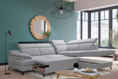 3-Sitzer mit Schlaffunktion und Ottomane mit Bettkasten