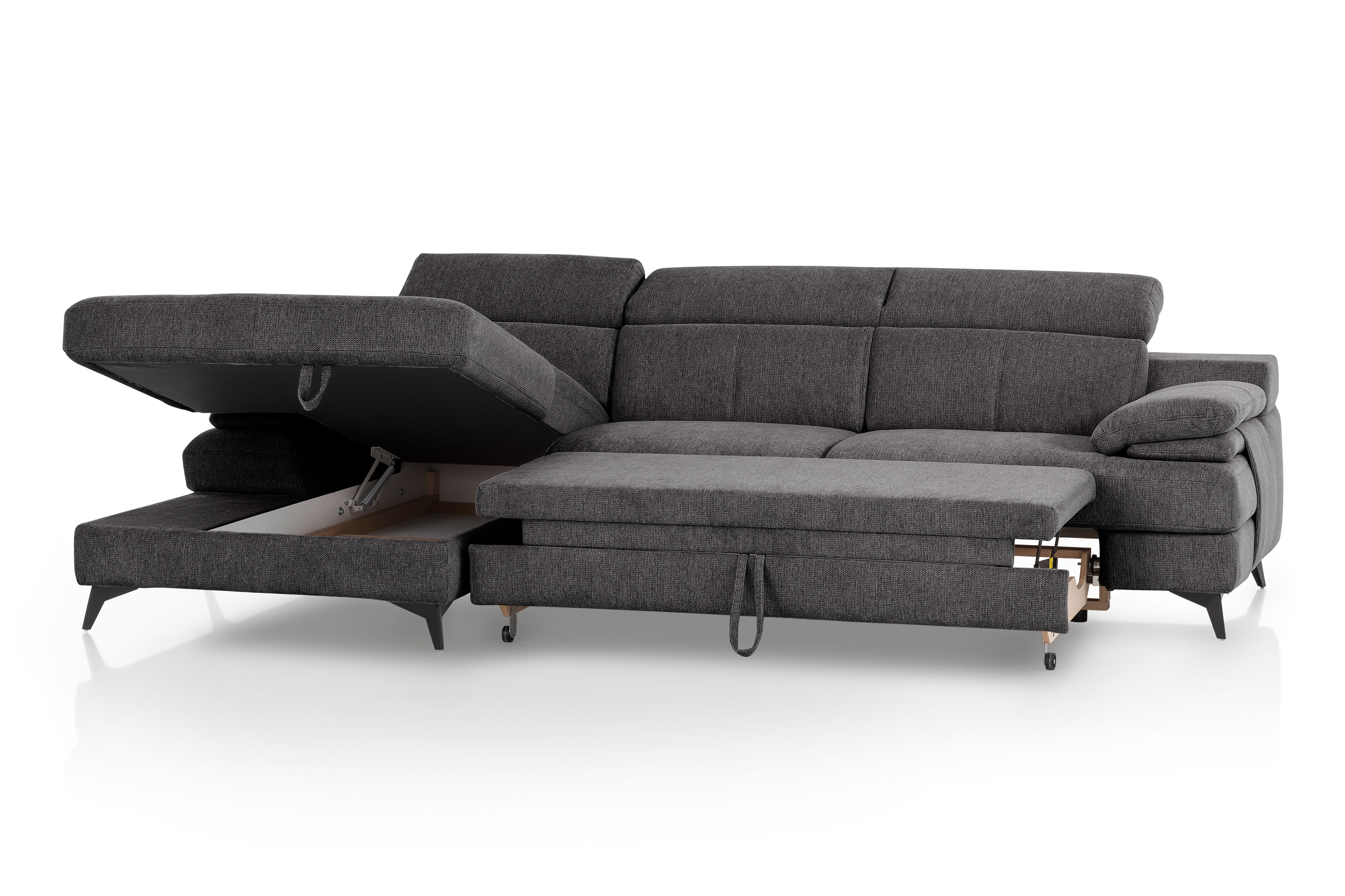 3-Sitzer mit Schlaffunktion und Recamiere mit Bettkasten