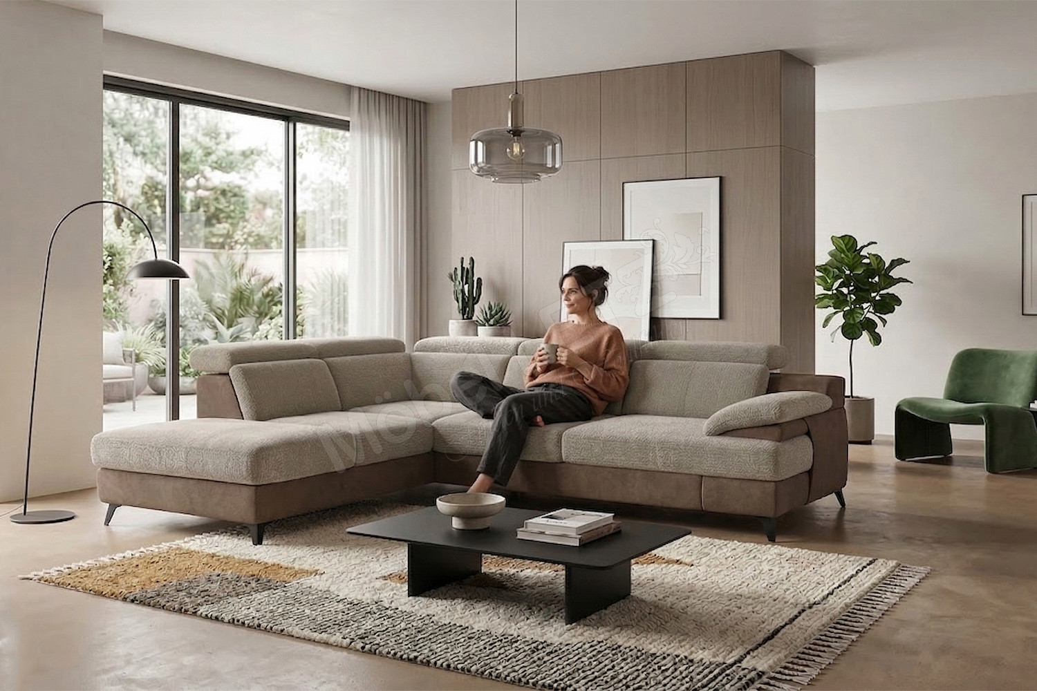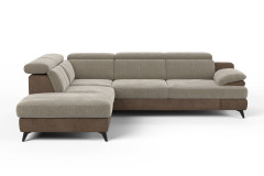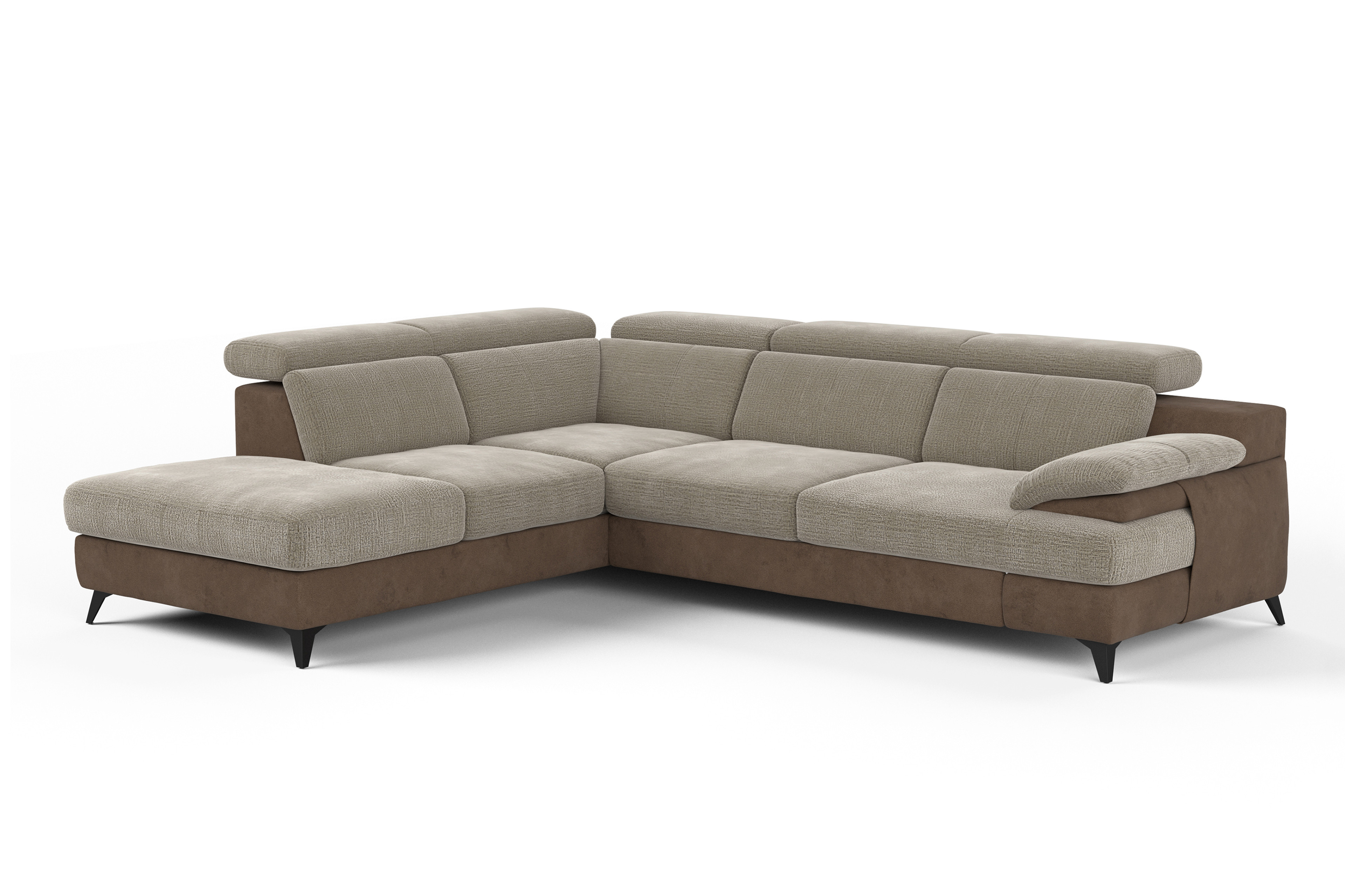 Ihnen steht der Sinn nach einer räumlichen Veränderung und ein neues Sofa steht dabei ganz oben auf der Wunschliste? Dann erfüllt das Modell Titus-LE26 von Cotta Polstermöbel ja vielleicht Ihren persönlichen Wohlfühltraum! In der abgebildeten Zusammenstellung aus einer Ottomane sowie einem anschließenden 3-Sitzer glänzt die Garnitur mit fabelhafter Optik und perfekter Funktionalität. Ein Bezug aus Chenille-Flachgewebe, ein pflegefreundliches sowie kuschelweiches Material mit atmungsaktiver Oberfläche, sowie eine farblich abgestimmte Microfaser umhüllen das Modell, welches auf schwarzen Metallfüßen steht und mit einem dekorativen Einzug in den festen Rückenkissen versehen ist. Doch Titus-LE26 besticht nicht nur mit einem grandiosen Äußeren: Das Ecksofa verfügt bereits im Grundangebot über eine überaus praktische Kopfteilverstellung – lehnen Sie sich an die justierbaren Kopfteile, schalten Sie Ihr Lieblingsprogramm im Fernseher ein und genießen Sie die freien Nachmittags- sowie Abendstunden in vollen Zügen. Sollten Sie sich noch mehr Platz zum Entspannen sowie einen Stauraum für Ihre Kuscheldecke wünschen, können Sie sich ganz einfach für eine Schlaffunktion, welche eine Liegefläche von ca. 202 x 122 cm eröffnet, mit einem dazugehörigen Bettkasten entscheiden. Überzeugt? Jedoch die abgebildeten Farben oder die Bezüge entsprechen nicht ganz Ihren Vorstellungen? Auch das ist überhaupt kein Problem – ein Klick auf "Farbe ändern" öffnet Ihnen unsere Auswahl an attraktiven Stoffbezügen und zahlreichen weiteren Farbmöglichkeiten. Bestellen Sie noch heute Titus-LE26 aus dem Hause Cotta Polstermöbel und lassen Sie Behaglichkeit in Ihr Heim einziehen.