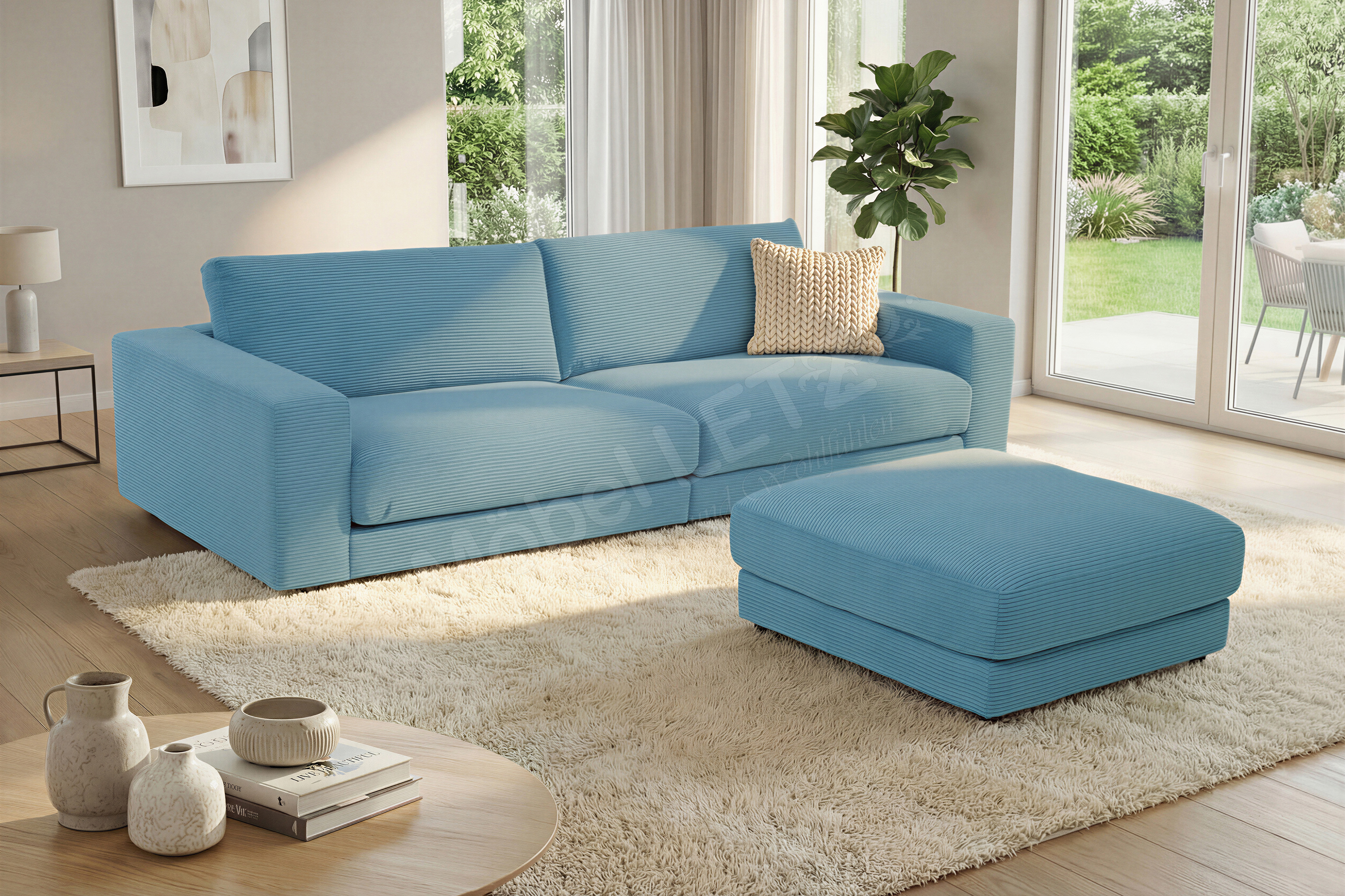 Holen Sie sich das ultimative Lounge-Gefühl direkt in Ihr Wohnzimmer. Das Megasofa Seventies aus dem renommierten Hause Candy ist ein Statement für alle, die Design lieben und auf maximalen Komfort nicht verzichten wollen. In einem stilvollen Cordbezug in Petrol gehalten, wird dieses Möbelstück sofort zum optischen Highlight und verleiht Ihrem Raum eine markante, aber dennoch wohnliche Note. Mit einer stattlichen Breite von etwa 290 cm und extra breiten Armlehnen bietet dieses Modell überdurchschnittlich viel Platz für Ihre Auszeit. Die beeindruckende Sitztiefe von ca. 84 cm lädt förmlich dazu ein, die Beine hochzulegen und den Alltag hinter sich zu lassen. Ob alleine zum Einkuscheln oder für den geselligen Abend mit den Liebsten - hier findet jeder seine perfekte Position. Aber nicht nur optisch überzeugt das Candy Polstersofa. Auch mit seinem unvergleichlichen Komfort kann es sich sehen lassen. Eine hochwertige Polsterung aus PUR-Schaum, der in verschiedenen Stärken sowie Härten schichtweise auf dauerelastischen Stahl-Wellenfedern aufgebaut ist. In Kombination mit den losen Sitz- sowie Rückenkissen entsteht ein softes Sitzerlebnis, das zum stundenlangen Entspannen und Kuscheln einlädt. Um perfekt ihre Beine auszustrecken oder die Sitzfläche für die ganze Familie zu erweitern, können Sie den passenden Hocker direkt in unseren Zusatzoptionen dazubuchen. So verwandeln Sie Ihre Wohnlandschaft in eine individuelle Relax-Zone. Bestellen Sie Ihr neues Candy Megasofa Seventies jetzt und machen Sie Entspannung zu Ihrem neuen Hobby.