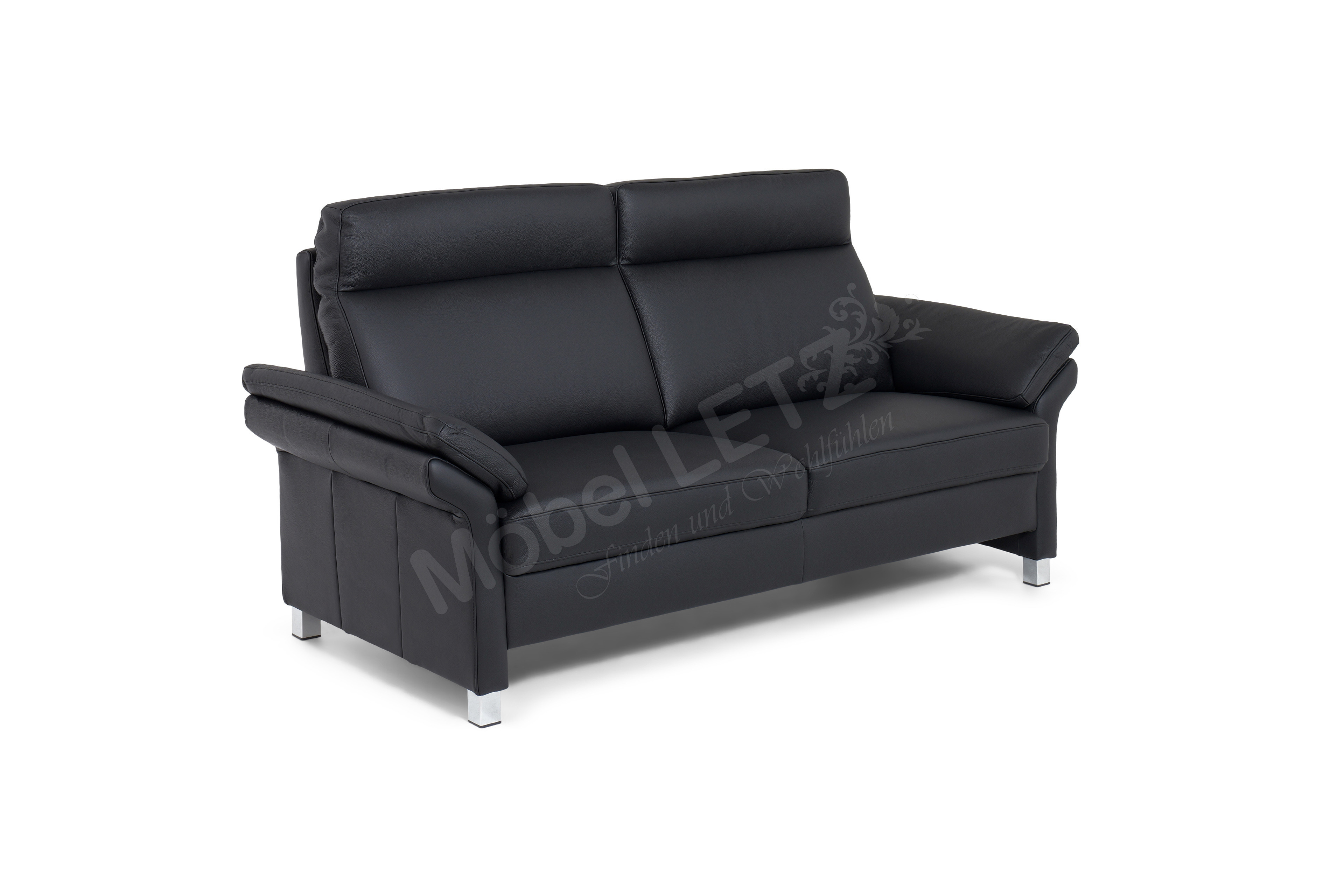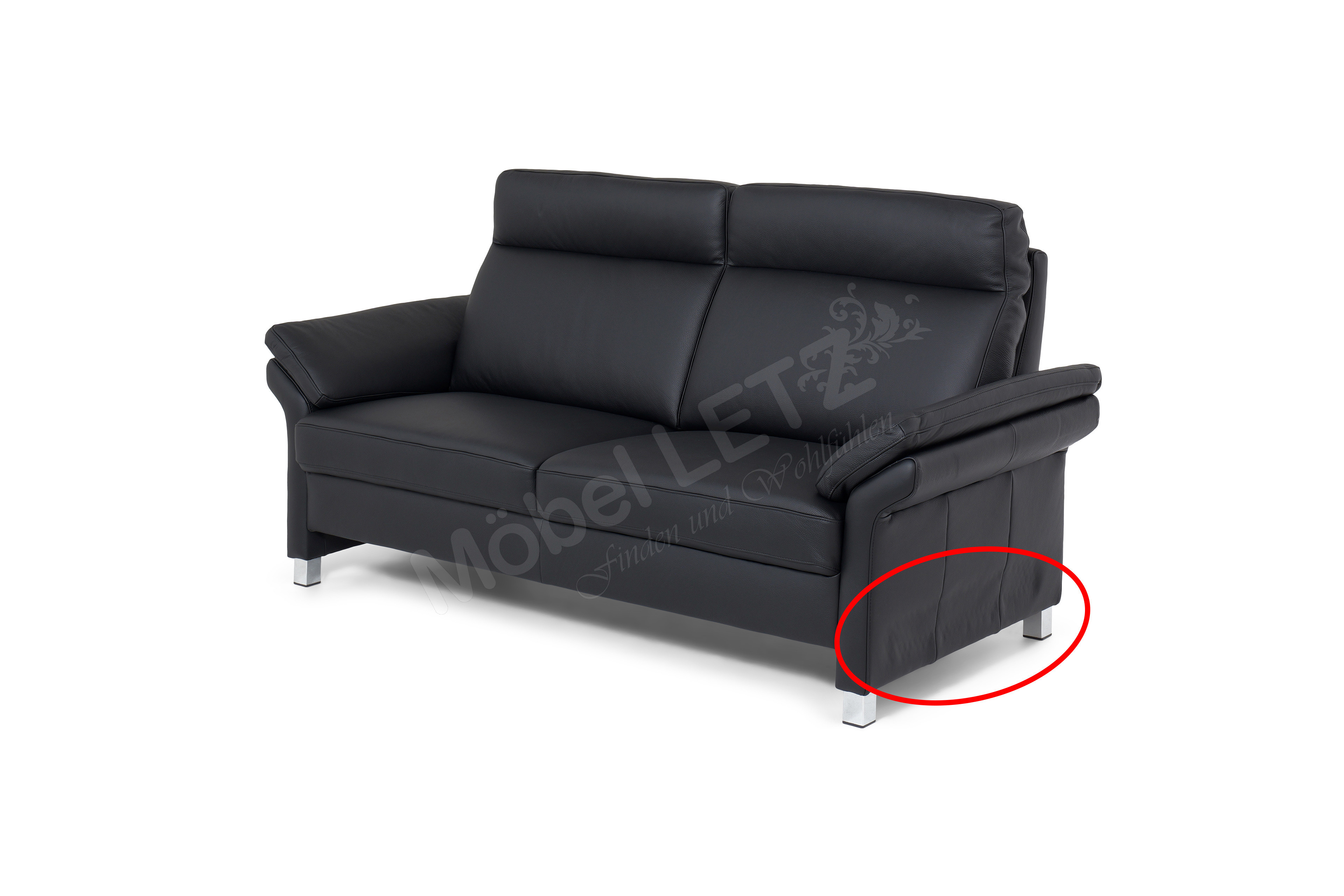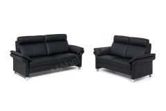 Klassisch und stilsicher präsentiert sich Multi 2.0 von Carina Polstermöbel in schwarzem Echtleder. Dieses punktet nicht nur mit einer edlen Optik, sondern auch mit einem erstklassigen Hautgefühl sowie der Eigenschaft, sich an die Raum- und Körpertemperatur anzupassen. Weiterhin überzeugt das elegante Sofa-Duo, bestehend aus einem ca. 196 cm breiten 3-Sitzer sowie einem etwa 156 cm breiten 2-Sitzer, mit einem großartigen Sitzkomfort aus einem behaglich festen Federkernsitz. Wer den Wunsch nach Luxus verspürt, wird hier voll auf seine Kosten kommen. Nach Hause kommen, Platz nehmen und entspannen, dazu wird Sie die Polstergarnitur tagtäglich verführen. Geben Sie dem nach und verbringen Sie geruhsame Stunden im Alleingang oder unterhaltsame Momente mit der Familie sowie Freunden, Sie haben es sich verdient. Multi 2.0 von Carina - das neue Highlight in Ihrem Wohnzimmer. Wie auf die letzten vier Bilder vor dem Bemaßungsbild zeigen, weist der Lederbezug an beiden Sofas jeweils unterhalb der rechten Armlehne Druckstellen auf, diese haben jedoch auf den wunderbaren Komfort dieses Duos keinerlei Einfluss.