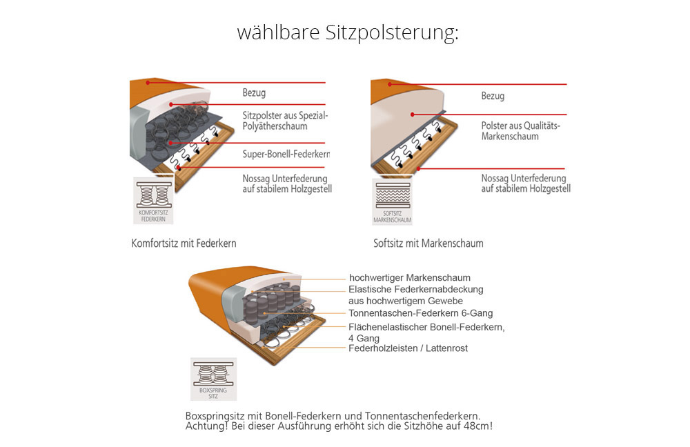 - Sitz - Komfort-Sitz mit Super-Bonell-Federkern und Spezial-Polyätherschaum auf Nosagunterfederung
