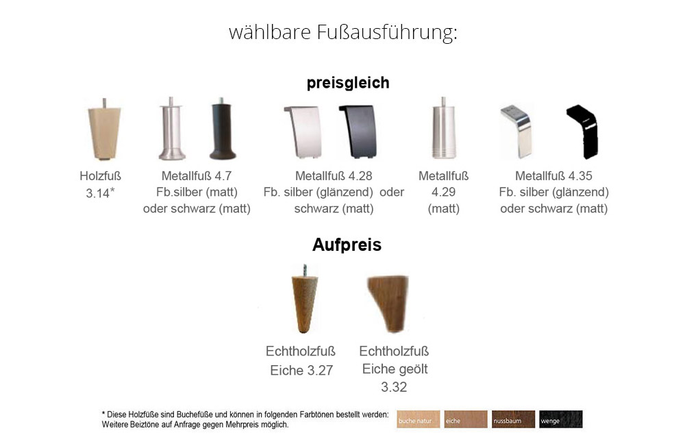 Das Modell ist im Stoff-Bezug mehrfarbig, im Leder-Bezug jedoch nur einfarbig erhältlich.