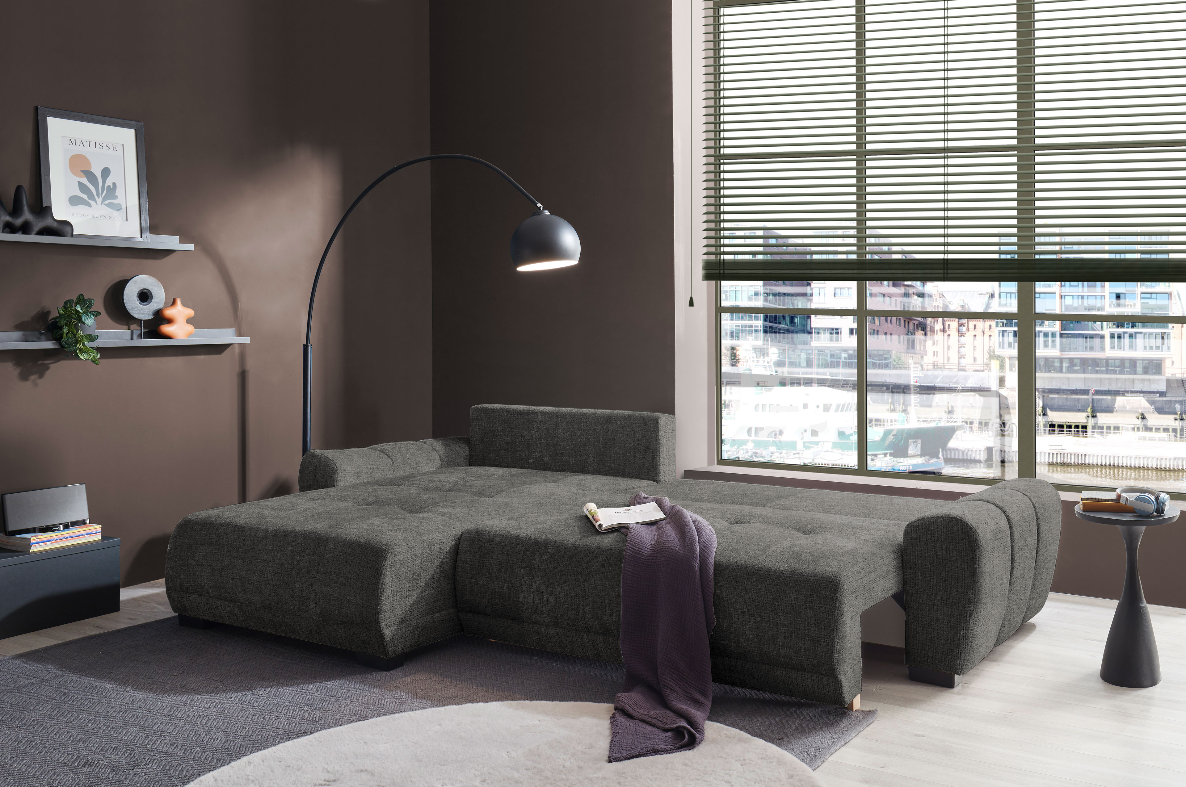 Ecksofa dunkelgrau von ED-Lifestyle - Modell Bellingen Polstermöbel für junges Wohnen.
