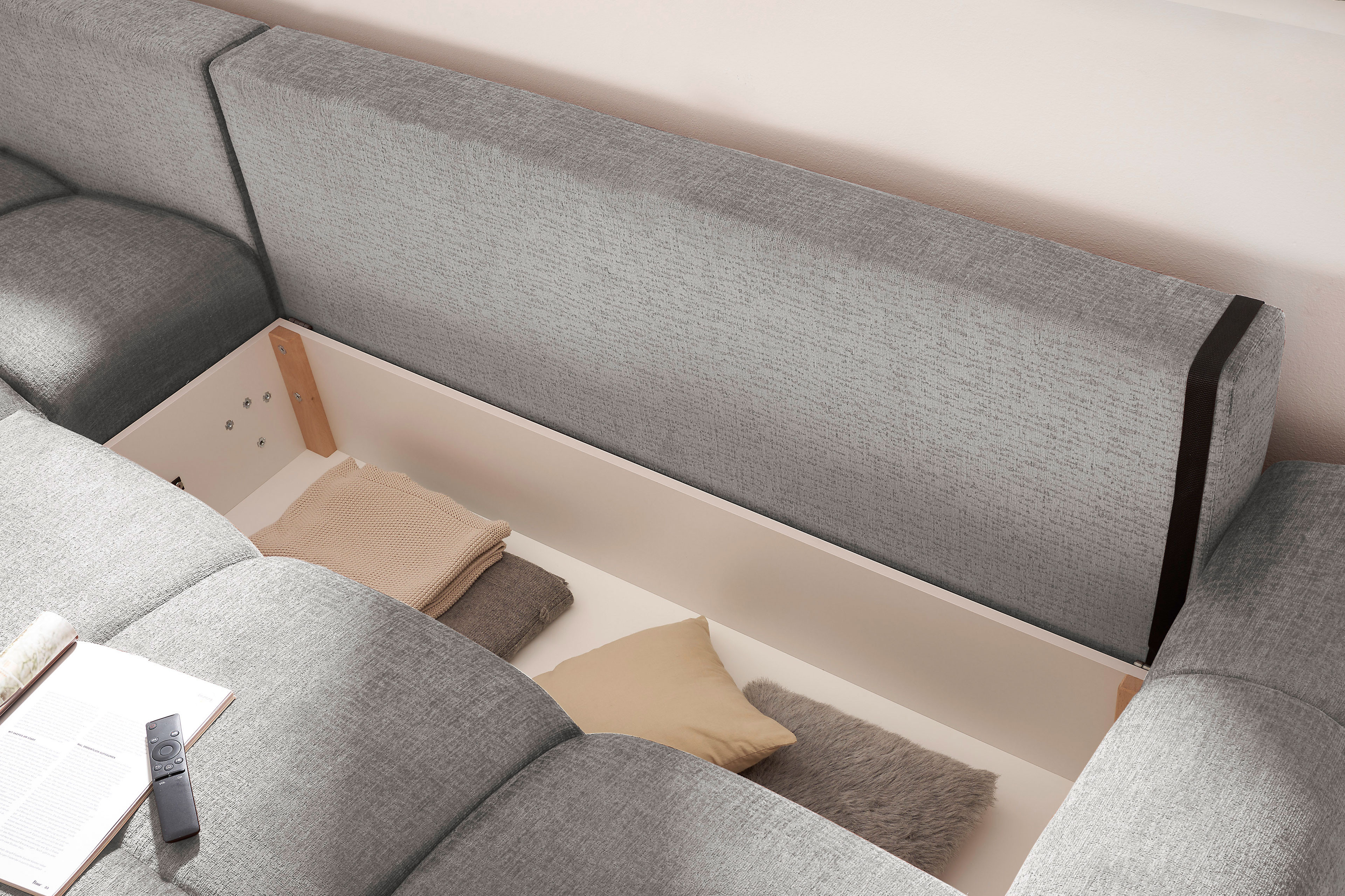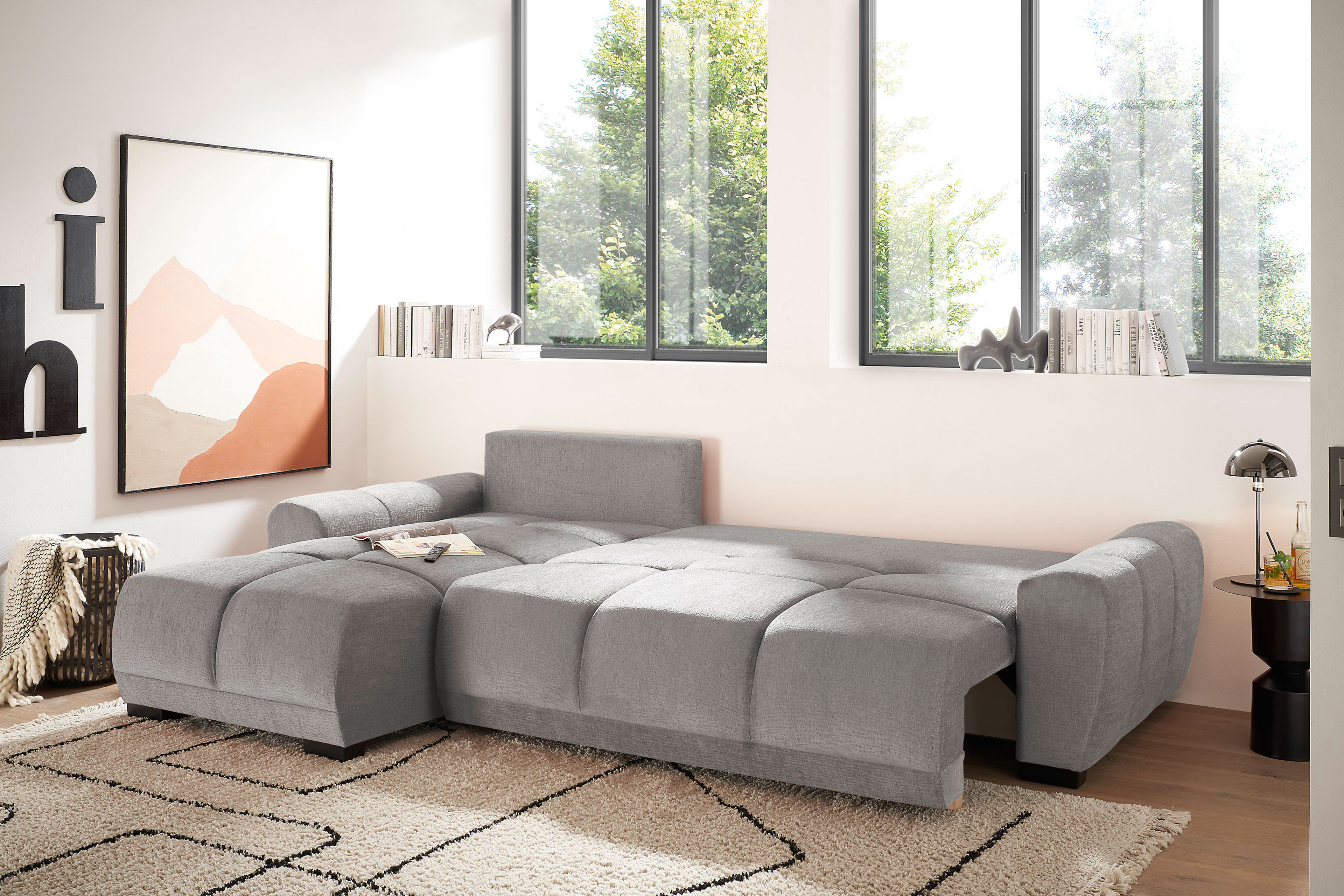Ein Sofa, welches Ruhe ausstrahlt und gleichzeitig modernes Wohngefühl verkörpert. Die ED-Lifestyle Polsterganitur Dexter schafft vom ersten Moment an eine Atmosphäre von Geborgenheit und Stil. Die klare Linienführung, die weich gepolsterten Sitzflächen und der dezente Grauton machen das Möbelstück zu einem vielseitigen Möbestück, das sich mühelos in unterschiedliche Wohnkonzepte einfügt - von modern bis gemütlich. Sie lädt dazu ein, den Alltag hinter sich zu lassen und jeden Moment bewusst zu genießen. Neben ihrem ansprechenden Design überzeugt die Polstergarnitur durch ihre hohe Funktionalität. Dank der integrierten Schlaffunktion verwandelt sich das Sofa im Handumdrehen in eine komfortable Schlafgelegenheit für spontane Übernachtungen. Die großzügige Liegefläche mit einem Maß von ca. 240 x 145 cm bietet dabei auch reichlich Platz für einen erholsamen Schlaf. Ein weiteres Highlight ist der großzügige Bettkasten, welcher praktischen Stauraum für Kissen sowie Gästebettwäsche oder Decken bietet und so für Ordnung im Wohnraum sorgt. Die angenehme Polsterung garantiert sowohl beim Sitzen als auch beim Liegen hohen Komfort, während die solide Verarbeitung für Stabilität und Langlebigkeit steht. Die Eckgarnitur Dexter aus dem Hause ED-Lifestyle ist die ideale Kombination aus zeitlosem Design, durchdachter Funktion und wohnlicher Gemütlichkeit.