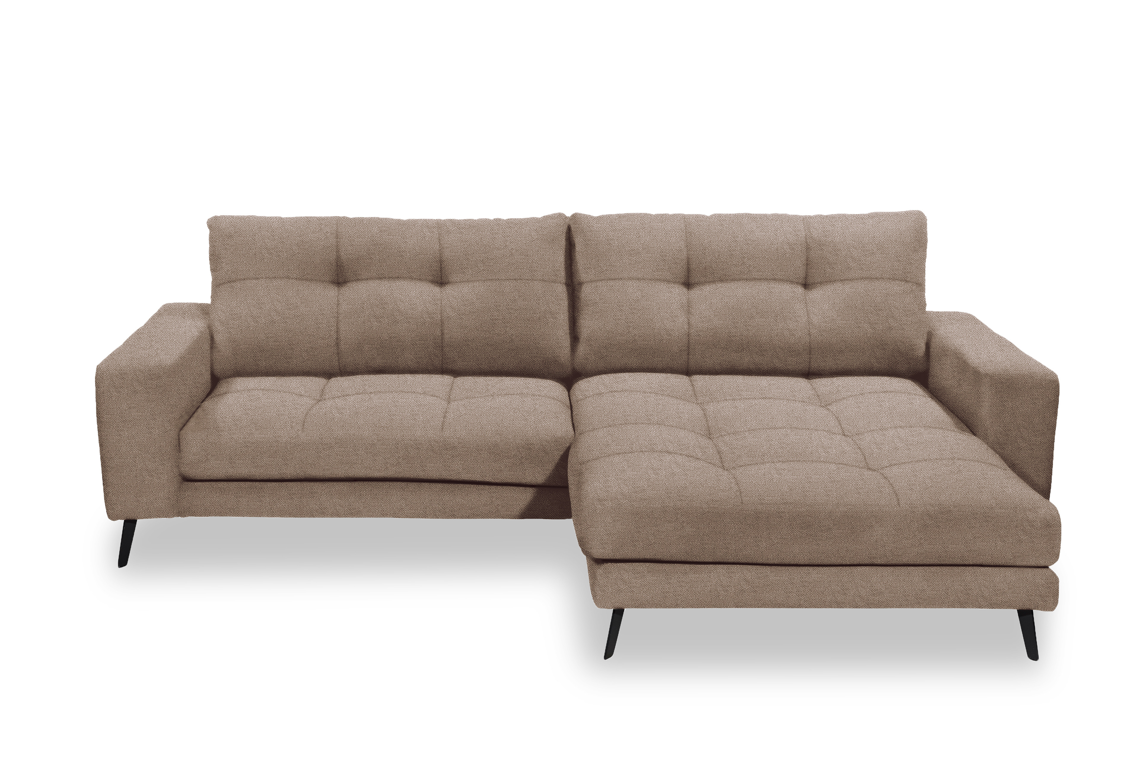 Mit diesem Sitzmöbel tauchen Sie in eine neue Dimension von Komfort und Stil! In diesem Angebot präsentieren wir Ihnen das erstklassige ED-Lifestyle Sofa Rockport, welches Design und Gemütlichkeit auf elegante Weise vereint. Dieses Möbelstück bringt mit seinem zauberhaften Chenille-Flachgewebe-Outfit in Braun Leben in Ihren Raum und schafft zudem eine warme, einladende Wohnatmosphäre. Während der Stoffbezug dem Ecksofa eine exklusive, luxuriöse Ausstrahlung verleiht, sorgen die schwarzen Metallfüße für einen stilvollen Kontrast sowie für eine leicht schwebende Optik. Die Kombination aus einer weich gepolsterten Sitzfläche mit einem Schaumstoff, ruhend auf einer Nosagfederung, sowie den bereits inkludierten Rückenkissen macht dieses Polstersofa nicht nur zum idealen Ort zum Entspannen und Abschalten, sondern vermittelt zudem ein Gefühl von Geborgenheit. Ganz egal, ob Sie einen gemütlichen Serienabend, eine wohlverdiente Kaffeepause oder gesellige Stunden mit dem Partner genießen möchten - auf der etwa 247 x 171 cm großen Couchgarnitur erleben Sie ein himmlisches Sitzgefühl, welches Sie nicht mehr missen wollen. Sollten Sie sich einen anderen Farbton wünschen, können Sie unter der Rubrik "Wunschbezug - Farbe ändern" Ihren persönlichen Favoriten auswählen. Gestalten Sie Ihren neuen Rückzugsort noch heute, bereichern Sie Ihr Zuhause mit modernem Look sowie Wohnqualität und erleben Sie schon bald behagliche Momente mit Rockport von ED-Lifestyle.