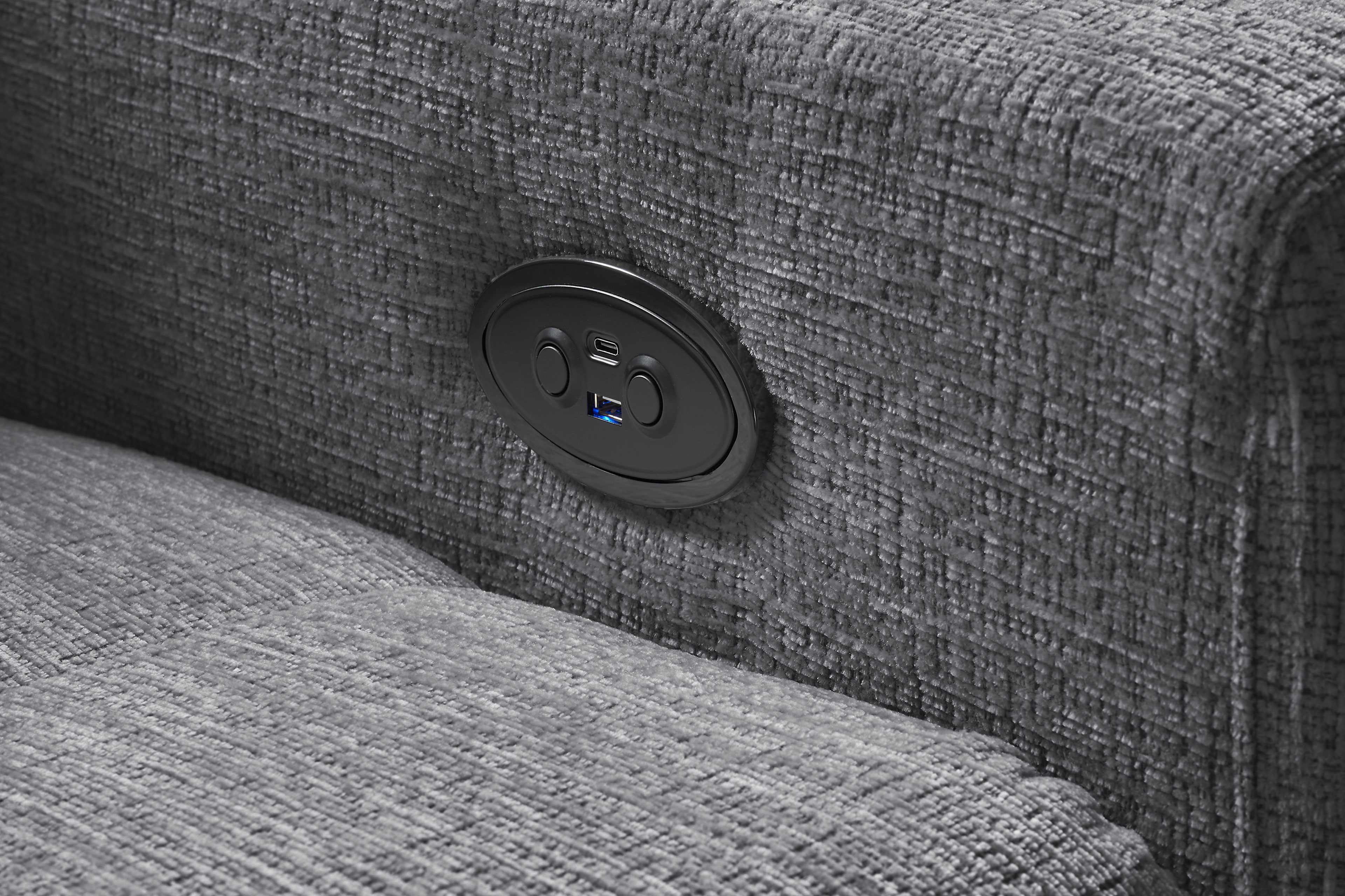 - Funktionen: elektrischer Sitzvorzug, Ottomane mit manueller Sitztiefenverstellung (in der Ecke nicht möglich), USB-Ladefunktion, Stauraumfunktion, Kopfteilverstellung