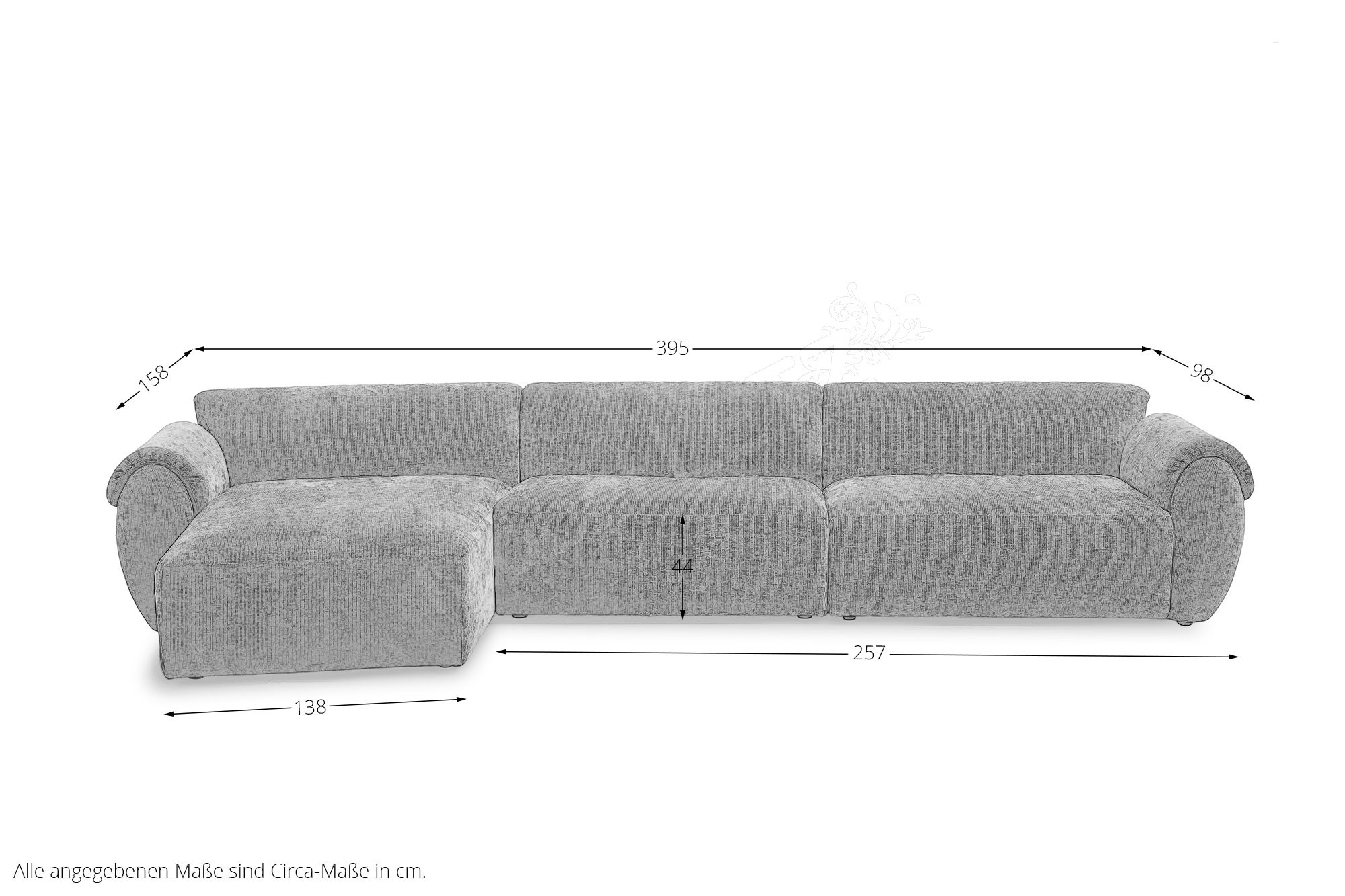 Willkommen in Ihrer neuen Wohlfühloase mit dem Polstermodell Nougat aus dem Hause Easy Sofa - wo Design auf Geborgenheit trifft. Es ist nicht einfach nur ein neues Möbelstück für Ihren Wohnbereich, es ist ein Ort, an dem das Leben passiert - wo Lachen geteilt, Geschichten erzählt werden und stille Momente besonders kostbar werden. Stellen Sie sich vor, wie Sie in die großzügige Sitzfläche sinken und die hochwertige Polsterung Sie sanft umschließt, während Sie spüren, wie der Alltag von Ihnen abfällt. Das elegante, trapezförmige Divan-Element lädt dazu ein, sich auszustrecken, gemütlich einzukuscheln und einfach nur den Augenblick zu genießen. Ob in geselliger Runde mit Freunden oder bei einem ruhigen Abend mit der Familie - die Polstergarnitur Nougat passt sich Ihrem Leben an. Mit einem großzügigen Stellmaß von etwa 158 x 395 cm fügt es sich harmonisch in offene Wohnbereiche ein. Die schwarzen Kunststofffüße verleihen dem Modell eine moderne Leichtigkeit, während der dunkelbraune Flockstoff durch seine weiche Haptik und zeitlose Eleganz begeistert. Und weil jeder Wohnraum so individuell ist wie sein Besitzer, können Sie aus verschiedenen Bezugsvarianten wählen - ganz nach Ihrem Stil und Ihrer Persönlichkeit. Auf Wunsch lässt sich das Easy Sofa Polstermöbelstück mit einem passenden Hocker erweitern, welcher ideal als zusätzliche Sitzfläche oder als bequeme Erweiterung zum Entspannen dient. Gönnen Sie sich diesen besonderen Ort - ein Sofa, das Wärme, Stil und Lebensfreude vereint.