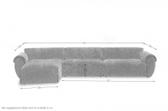 Die Außenseiten der Elemente sind vollständig gepolstert, wodurch eine Einzelstellung der Elemente möglich ist. Dieses Modell ist mit Federn gepolstert und sollte täglich aufgeschüttelt werden. Es erhält schließlich eine lässige Sitzoptik. Während der Nutzung entsteht eine natürliche Faltenbildung, die sich im Laufe der Zeit zunehmend zeigt. Dies ist kein Grund für eine Reklamation oder Beanstandung.