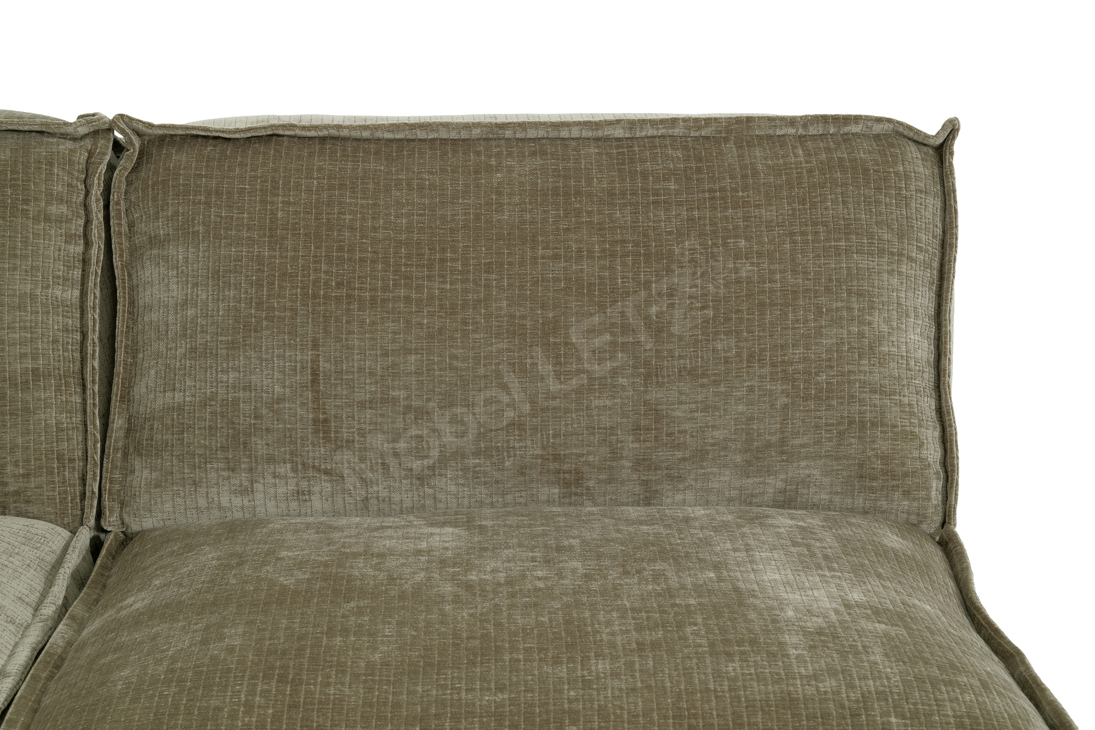 Die Außenseiten der Elemente sind vollständig gepolstert, wodurch eine Einzelstellung der Elemente möglich ist. Dieses Modell ist mit Federn gepolstert und sollte täglich aufgeschüttelt werden. Es erhält schließlich eine lässige Sitzoptik. Während der Nutzung entsteht eine natürliche Faltenbildung, die sich im Laufe der Zeit zunehmend zeigt. Dies ist kein Grund für eine Reklamation oder Beanstandung.
