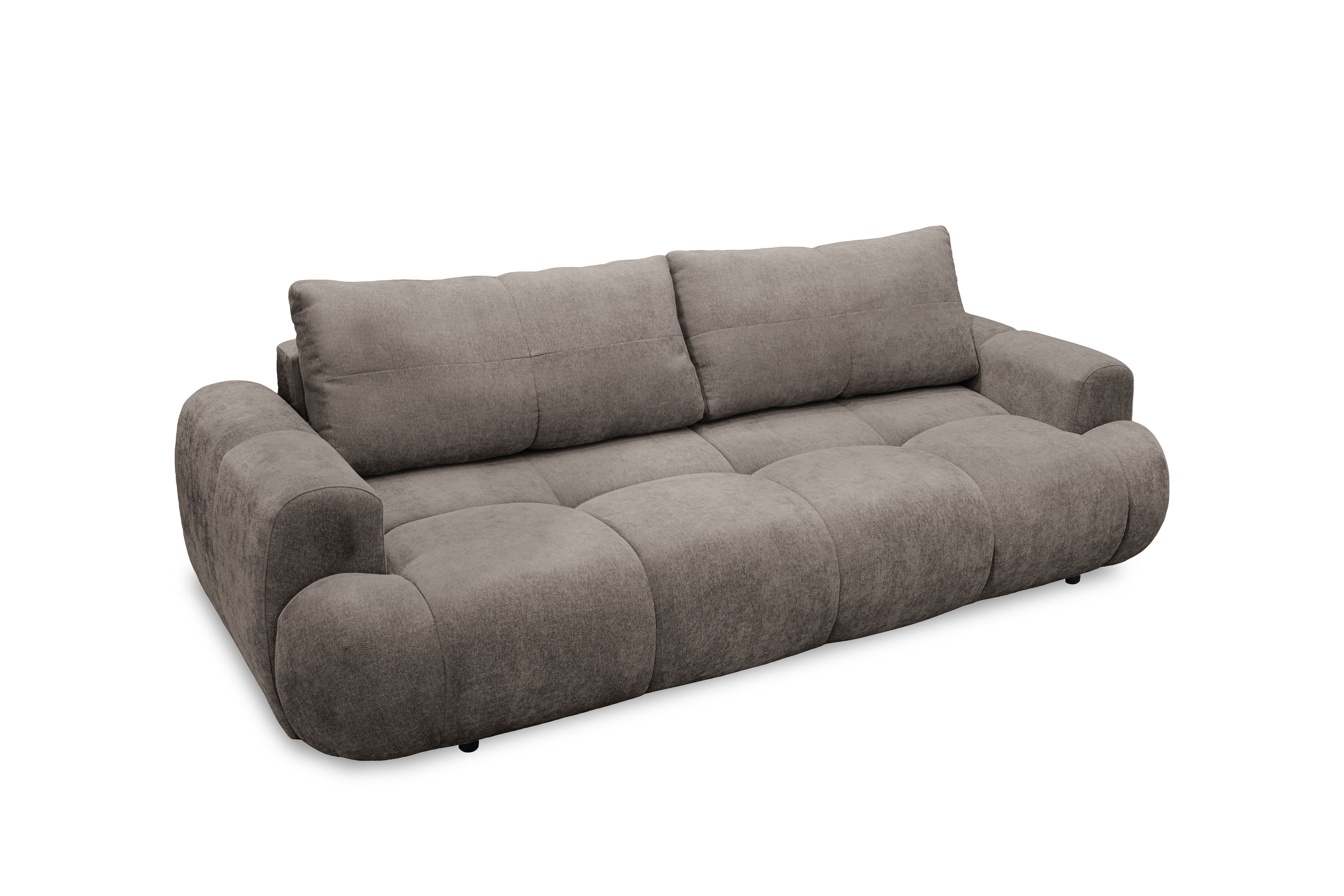 Erleben Sie Entspannung auf einem völlig neuen Niveau. Die moderne Garnitur Alessano von Exxpo besticht durch seine außergewöhnliche, stilvolle Optik und einen dunkeln, hochwertigen Stoffbezug, der sofort Ruhe sowie Eleganz in Ihr Wohnzimmer bringt. Dieses Polstermöbelstück sieht nicht nur aus wie eine sanfte Wolke, es sitzt sich dank der durchdachten Polsterung auch exakt so. Mit einer großzügigen Sitzbreite von etwa 200 cm bietet es den perfekten Raum, um sich nach einem langen Tag fallen zu lassen. Hinter der weichen Silhouette verbirgt sich höchste Qualität. Im Sitz- sowie im Rückenbereich sorgt eine bequeme PUR-Schaum-Polsterung auf einer stabilen Wellenunterfederung für langlebigen Komfort und die ideale Unterstützung beim Relaxen. Da der Rücken echt bezogen ist, glänzt das Sofa aus jeder Perspektive und kann somit völlig frei flexibel im Raum platziert werden. Dezente, schwarze Kunststofffüße unterstreichen dabei den modernen Charakter und garantieren einen festen Stand. Das Sofa überzeugt jedoch nicht nur als Ruhepol, sondern auch als praktisches Funktionselement. Dank der integrierten Schlaffunktion verwandelt sich die Exxpo Couch im Handumdrehen in eine gemütliche Übernachtungsmöglichkeit, während der integrierte Bettkasten wertvollen Stauraum für Bettzeug bietet. Für das Maximum an Gemütlichkeit sorgen die bereits im Paket enthaltenen zwei Rückenkissen sowie zwei große Zierkissen.