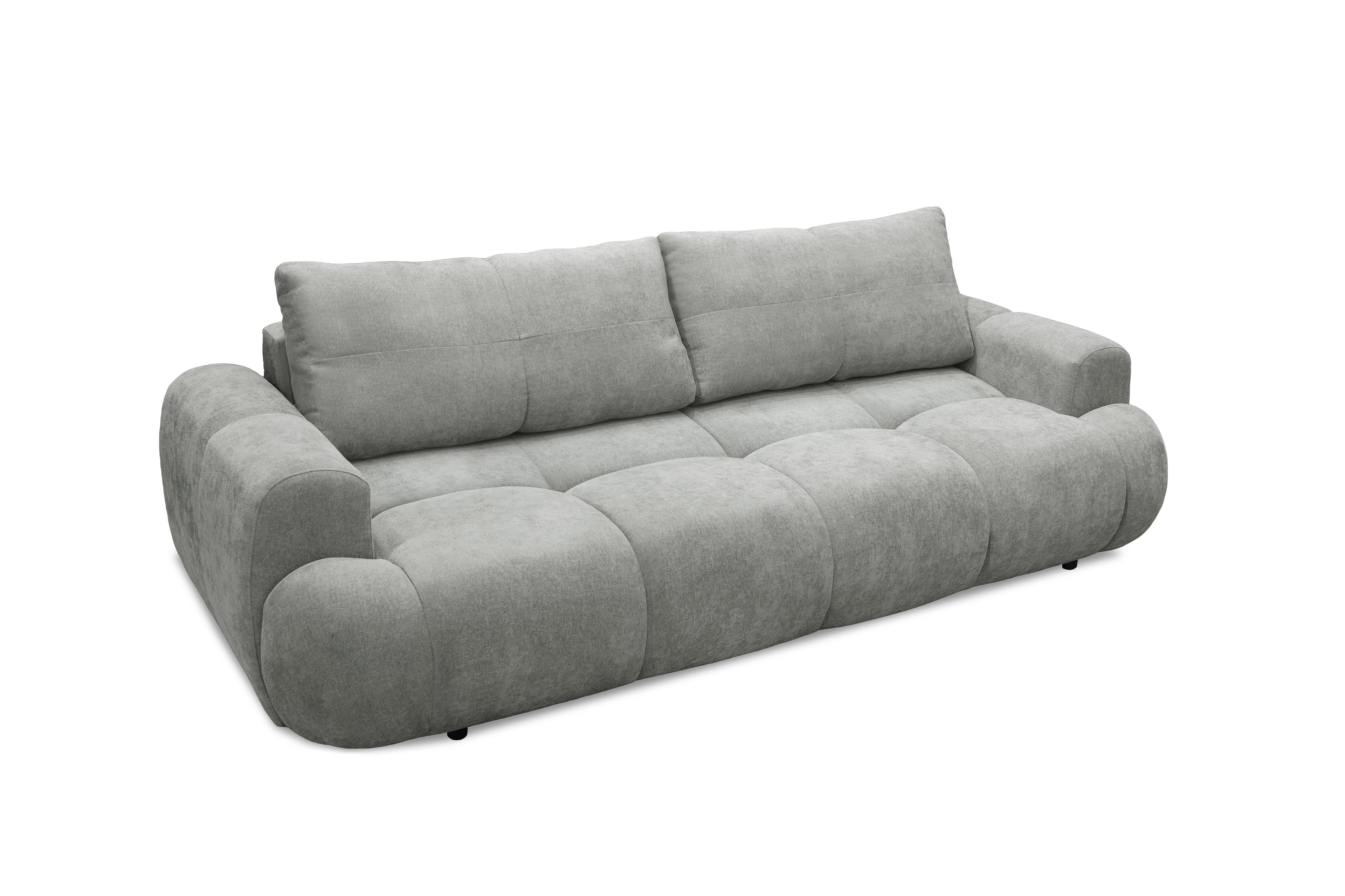 Erleben Sie Entspannung auf einem völlig neuen Niveau. Die moderne Garnitur Alessano von Exxpo besticht durch seine außergewöhnliche, stilvolle Optik und einen hellen, hochwertigen Stoffbezug, der sofort Ruhe sowie Eleganz in Ihr Wohnzimmer bringt. Dieses Polstermöbelstück sieht nicht nur aus wie eine sanfte Wolke, es sitzt sich dank der durchdachten Polsterung auch exakt so. Mit einer großzügigen Sitzbreite von etwa 200 cm bietet es den perfekten Raum, um sich nach einem langen Tag fallen zu lassen. Hinter der weichen Silhouette verbirgt sich höchste Qualität. Im Sitz- sowie im Rückenbereich sorgt eine bequeme PUR-Schaum-Polsterung auf einer stabilen Wellenunterfederung für langlebigen Komfort und die ideale Unterstützung beim Relaxen. Da der Rücken echt bezogen ist, glänzt das Sofa aus jeder Perspektive und kann somit völlig frei flexibel im Raum platziert werden. Dezente, schwarze Kunststofffüße unterstreichen dabei den modernen Charakter und garantieren einen festen Stand. Das Sofa überzeugt jedoch nicht nur als Ruhepol, sondern auch als praktisches Funktionselement. Dank der integrierten Schlaffunktion verwandelt sich die Exxpo Couch im Handumdrehen in eine gemütliche Übernachtungsmöglichkeit, während der integrierte Bettkasten wertvollen Stauraum für Bettzeug bietet. Für das Maximum an Gemütlichkeit sorgen die bereits im Paket enthaltenen zwei Rückenkissen sowie zwei große Zierkissen.