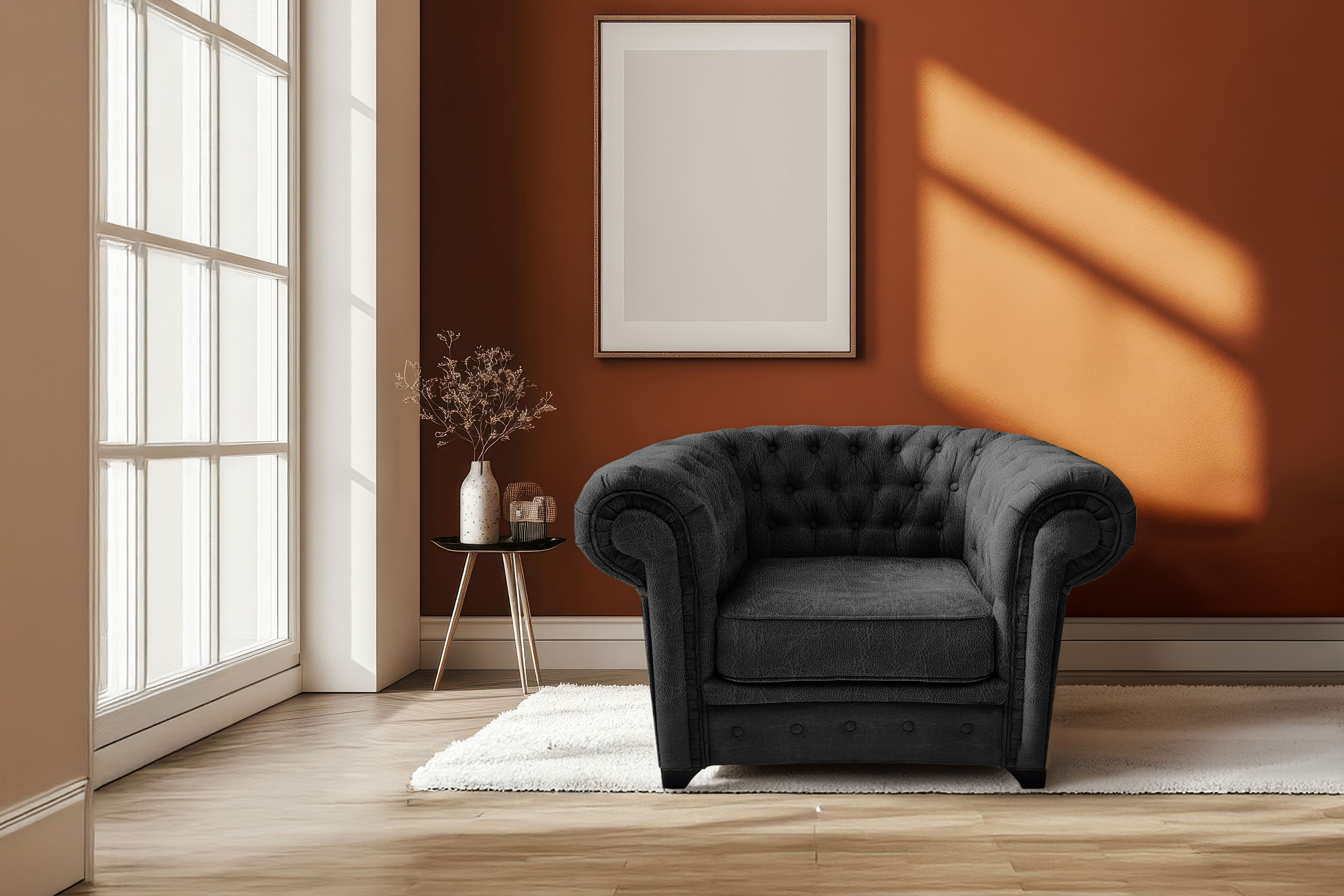 Stellen Sie sich eine Räumlichkeit vor, in der Gemütlichkeit auf stilvolle Eleganz trifft. Genau dieser Ort kann schon bald Ihr Wohnzimmer werden - mit dem Ensemble Chesterfield-LE26 aus dem Hause Exxpo. Mit der charakteristischen Knopfheftung, den geschwungenen Armlehnen und der markanten Silhouette verkörpert dieses Duo einen unverwechselbaren Look, welcher zugleich klassisch, edel und dennoch wunderbar wohnlich ist. Die harmonische Kombination aus großzügigem Komfort und zeitloser Gestaltung macht diese Garnitur zum stilprägenden Mittelpunkt Ihres Wohnraums. Bestehend aus einem großzügigen 3-Sitzer mit einer Breite von etwa 225 cm sowie einem passenden 2-Sitzer mit einer Breite von circa 182 cm, schenkt das Set eine einladende Sitzlandschaft mit ausreichend Platz für Familie, Gäste oder entspannte Abende. Für den bequemen Sitzkomfort sorgt eine hochwertige PUR-Schaum Polsterung, die ein ausgewogenes Verhältnis aus Unterstützung und Weichheit bietet. So genießen Sie Komfort, der auch nach vielen Stunden noch überzeugt. Ausgestattet mit stabilen Massivholzfüßen in Schwarz unterstreichen sie den charaktervollen Look der Polstergarnitur und setzen gleichzeitig einen eleganten Kontrast. Um Ihr Wohnzimmer noch individueller zu gestalten, können Sie Chesterfield-LE26 um einen passenden Sessel erweitern und so einen zusätzlichen Sitzplatz schaffen - perfekt für gemütliche Gesprächsstunden oder für eine kleine Leseecke im Wohnbereich. Darüber hinaus ist das Exxpo Ensemble auch in weiteren Farben erhältlich, sodass Sie dieses Set optimal auf Ihre Einrichtung und Ihren persönlichen Geschmack abstimmen können. Ob als eleganter Mittelpunkt eines klassischen Wohnzimmers oder als stilvoller Kontrast in modernen Räumen - diese Chesterfield-LE26 Garnitur von Exxpo verbindet Charakter, Komfort und zeitlose Klasse auf besondere, charmante Weise.