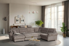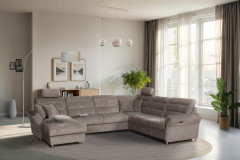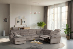 Foreno von Grant Factory - erleben Sie das Gefühl von echter Geborgenheit und Zuhause. Mit diesem besonderen Modell holen Sie sich nicht nur ein Sofa ins Haus, sondern ein Lebensgefühl, das Komfort und Stil auf beeindruckende Weise vereint. Ein außergewöhnliches Design trifft hier auf ein Versprechen von wohltuender Heimeligkeit. Mit großzügigen Maßen von etwa 165 x 350 x 268 cm bildet diese beeindruckende Komposition aus einer Ottomane, einem 3-sitzigen Zwischenelement, einer Ecke und einem 3-Sitzer den idealen Mittelpunkt für jedes Wohnzimmer. Ob gemütliche Stunden zu zweit, entspannte Zeit für sich selbst oder gesellige Abende mit Familie und Freunden - Foreno schafft Raum für unvergessliche Erlebnisse. Platz für herzhaftes Lachen, tiefsinnige Gespräche, unterhaltsame Spieleabende oder fesselnde Filmnächte ist garantiert. Hier findet jeder seinen perfekten Ort, um dem Alltag zu entfliehen, den Stress abfallen zu lassen und sich einfach zu erholen. Der Sitzkomfort sucht dabei seinesgleichen: Die hochwertige Kaltschaumpolsterung auf langlebigen Nosagfedern bietet eine unvergleichliche Bequemlichkeit, die Ihre persönlichen Ruhemomente zu etwas ganz Besonderem macht. Im Nu wird die Wohnlandschaft zur Wohlfühloase, einem Rückzugsort, um entspannte Abende bei einem Glas Wein oder einem guten Buch zu genießen. Auch visuell überzeugt Foreno auf ganzer Linie. Das samtig-weiche braune Chenille-Flachgewebe sorgt für eine moderne und dennoch behagliche Ausstrahlung. Die alufarbigen Metallfüße unterstreichen die Eleganz der Grant Factory Garnitur, geben ihr eine schwebende Leichtigkeit und setzen stilvolle Akzente im Raum. Sollte Grau nicht ganz Ihrem Geschmack entsprechen, eröffnet das Modell Ihnen grenzenlose Möglichkeiten zur Individualisierung. Unter der Rubrik "Farbe ändern" finden Sie eine breite Palette an Farben und Stoffen. Gestalten Sie Ihr persönliches Traumsofa, das perfekt zu Ihrem Wohnraum passt und Ihren individuellen Stil zum Ausdruck bringt - ganz so einzigartig wie Sie selbst. Das Highlight für Entspannungsliebhaber: Eine optionale motorisierte Relaxfunktion am äußeren Sitz des 3-Sitzers. Mit einer sanften Berührung des Touch-Feldes an der Armlehne gleiten Sie mühelos in eine komfortable Liegeposition. Genießen Sie beispiellose Wohlfühlmomente und spüren Sie, wie Körper sowie Geist zur Ruhe kommen. So starten Sie gestärkt und voller Energie in neue Abenteuer des Alltags. Foreno von Grant Factory - der neue Lieblingsplatz in Ihrem Zuhause wartet bereits auf Sie.