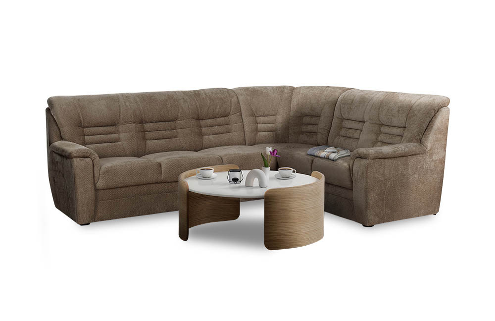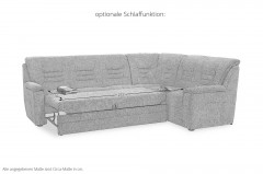 Das Wohnzimmer ist meist Mittelpunkt der Wohnung und der Ort, an dem die Familie am Abend zusammenkommt, um die neuesten Ereignisse, die Geschehnisse des Tages oder Gefühle und Emotionen miteinander auszutauschen. Unumgänglich ist es somit, hierbei bequem zu sitzen, sich wohlzufühlen und die gemeinsame Zeit zu genießen. Mit dem Modell Merlin aus dem Hause Grant Factory erhalten Sie eine Polstergarnitur, die Ihnen mit einer Federkernpolsterung auf einer Nosagfederung ein wunderbares Sitzerlebnis beschert und auf der jedes Familienmitglied bei einem Stellmaß von etwa 280 x 223 cm seinen persönlichen Lieblingsplatz findet. Die hohe Rückenlehne der Eckgarnitur verspricht besonderen Anlehnkomfort - beste Voraussetzungen zum Relaxen und Abschalten nach einem langen, stressigen Tag. In der Abbildung kleidet sich das Sofa in einen hellbraunen Chenille-Flachgewebe-Bezug, den Sie jedoch mit Hilfe unserer großzügigen Bezugsauswahl individuell an Ihre Bedürfnisse anpassen können. Die nussbaumfarbigen Holzfüße sorgen für einen festen Stand und runden das Gesamtbild des Qualitätsmöbels optisch ab. Sie sind ein Fan von spontanen Feiern oder haben öfters unangekündigten Besuch, der auch mal etwas länger bleibt? Dann statten Sie Ihr neues Sofa doch direkt mit einer Schlaffunktion aus und Sie sind zukünftig gewappnet für Übernachtungsgäste, denen Sie im Handumdrehen auf einer Liegefläche von etwa 217 x 119 cm ein bequemes Nachtlager zaubern können. Auch einen Hocker können Sie über unsere Zusatzoptionen direkt passend zu Ihrer neuen Couch dazubuchen. Ausgezeichnete Qualität und einzigartiger Komfort - Merlin von Grant Factory.