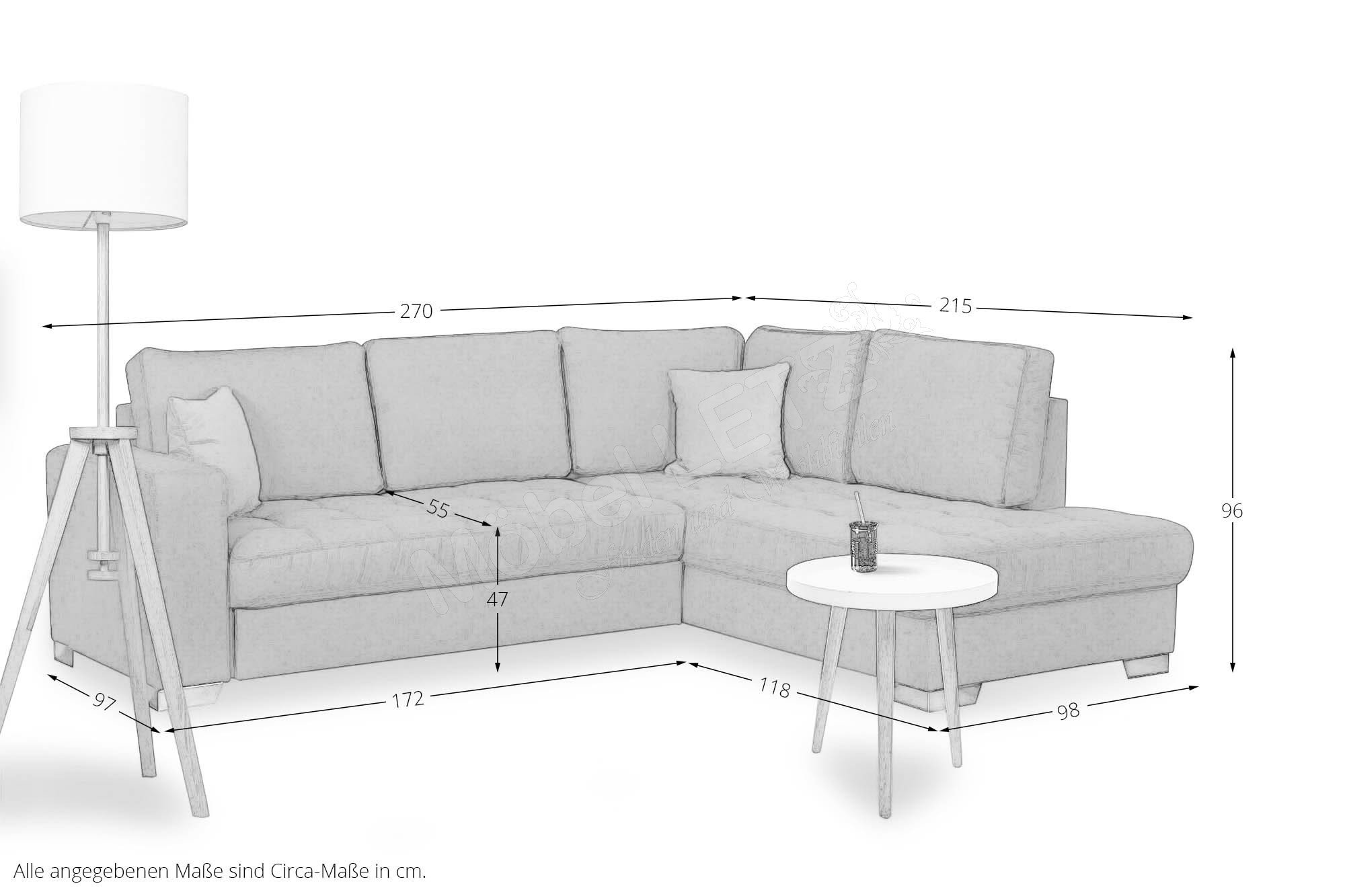 Sie sind gerade erst in Ihre erste eigene Wohnung gezogen, Ihr Raumangebot ist eher klein gehalten und dennoch wollen Sie eine Möglichkeit schaffen, auch mal Freunde bei Ihnen übernachten zu lassen? Dann haben wir mit dem Modell Nancy-LE19 von Grant Factory genau das Richtige für Sie. Das Ecksofa, welches mit einem nicht zu üppigen Stellmaß von etwa 270 x 215 cm daherkommt, bietet Ihnen nicht nur einen behaglichen Rückzugsort, an dem Sie in aller Ruhe in Ihrem Lieblingsbuch versinken oder die aktuelle Modezeitschrift durchblättern können, sondern gleichfalls ein gemütliches Nachtlager auf einer echt bezogenen Liegefläche von ca. 203 x 128 cm. Somit sind Sie auch für spontanen Übernachtungsbesuch stets gewappnet. Ferner hält das Grant Factory Polstersofa ein hervorragendes Sitz- und Liegeerlebnis, hervorgerufen durch eine Polsterung aus Kaltschaum mit Nosagunterfederung, bereit. Hinsetzen, ausspannen und einfach wohlfühlen - mit Nancy-LE19 von Grant Factory kein Problem. Sollte Ihnen die gewählte Farbgebung des grauen Chenille-Flachgewebes in Kombination mit beigefarbenen Zierkissen, die bereits im Angebot inklusive sind, nicht zusagen, dann schauen Sie in der Rubrik "Farbe ändern" nach und wählen Sie aus einer Vielzahl an Materialien sowie Farben Ihren persönlichen Favoriten aus. Auch eine andere Zusammenstellung wäre mit der Rubrik "Artikel frei planen" oder durch Kontaktaufnahme via Telefon, Live-Chat sowie E-Mail denkbar.