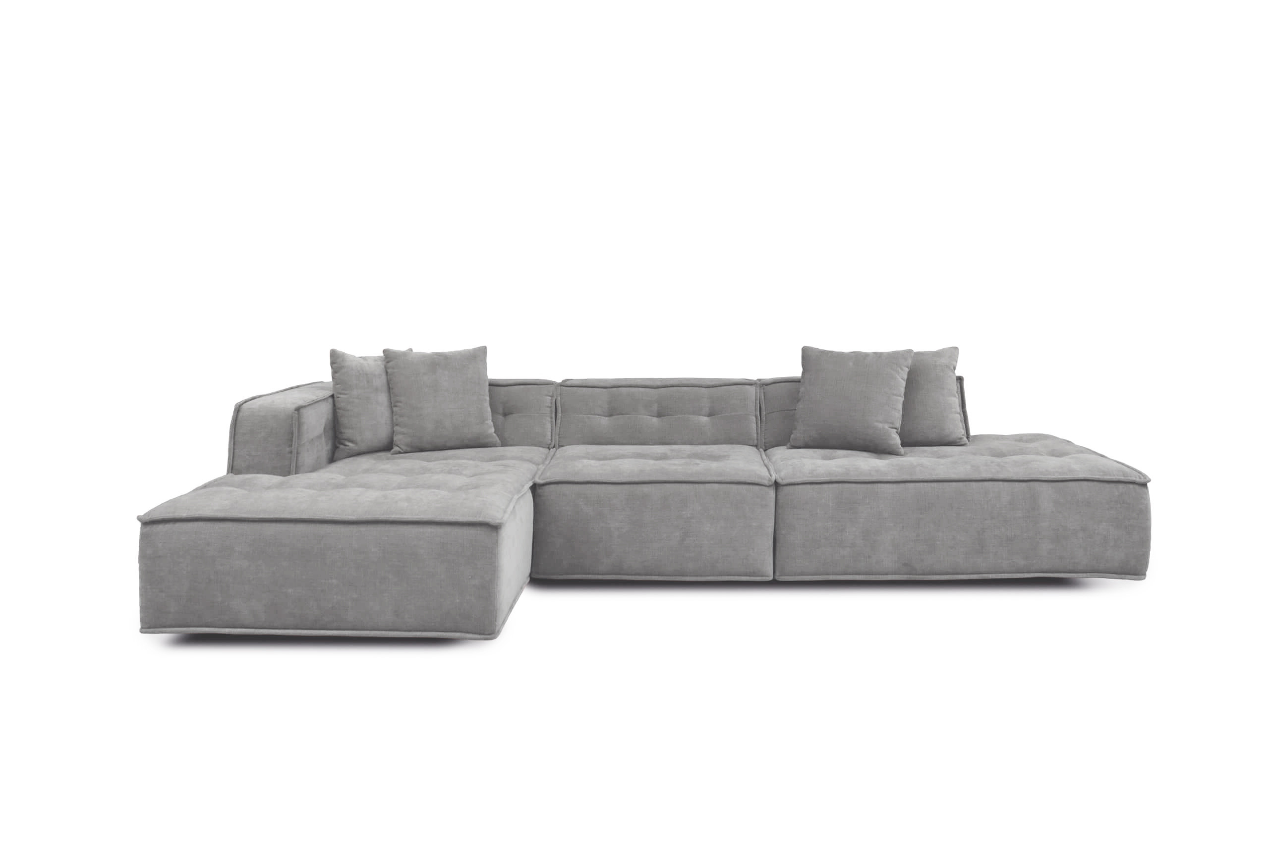 Mit einer maskulinen Designsprache und einem großartigen Stellmaß von etwa 174 x 329 cm zieht die Eckgarnitur Canna aus dem Hause Het Anker ihre Betrachter schnell in ihren Bann. Hier vereinen sich geometrische Formen mit flachen Kunststofffüßen und schaffen ein zeitloses Sitzmöbel im industriellen Einrichtungsstil, während dezent platzierte Details wie die offene Nahtvariante sowie die Einfassungen im Sitz- und Rückenbereich das Modell harmonisch abrunden. Für den nötigen Komfort sorgt eine hochwertige Polsterung aus einem Kaltschaum, welcher von formstabilen Nosagfedern perfekt gestützt wird. Die vier inkludierten Wurfkissen vervollständigen das attraktive Äußere der Polstergarnitur und laden zum Verweilen ein. Stellen Sie sich vor, wie Sie es sich nach einem langen Arbeitstag auf dem Sofa gemütlich machen, die Beine hochlegen und den Abend, mit einem guten Buch in der Hand oder dem TV-Programm folgend, ausklingen lassen. Damit sich die Het Anker Garnitur optimal in Ihren Wohnraum integriert, steht Ihnen unter dem Menüpunkt "Wunschbezug - Farbe ändern" eine breitgefächerte Auswahl an Bezugsstoffen in den unterschiedlichsten Farbnuancen zur Verfügung: Vom klassischen Grau über natürliche Brauntöne bis hin zum leuchtenden Rot ist hier sicher für jeden das Richtige dabei. Moderne Wohnkultur neu interpretiert - Canna von Het Anker.