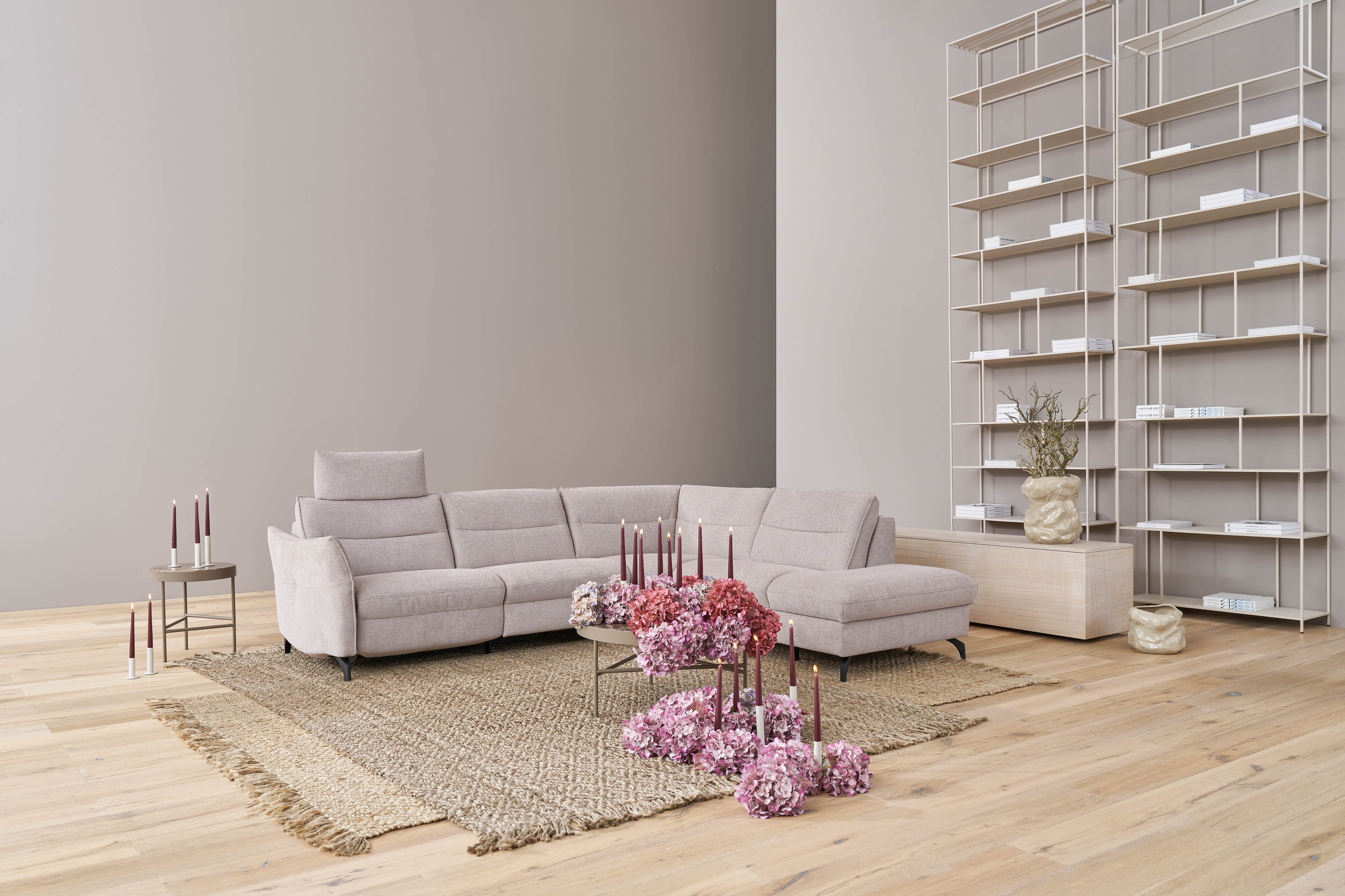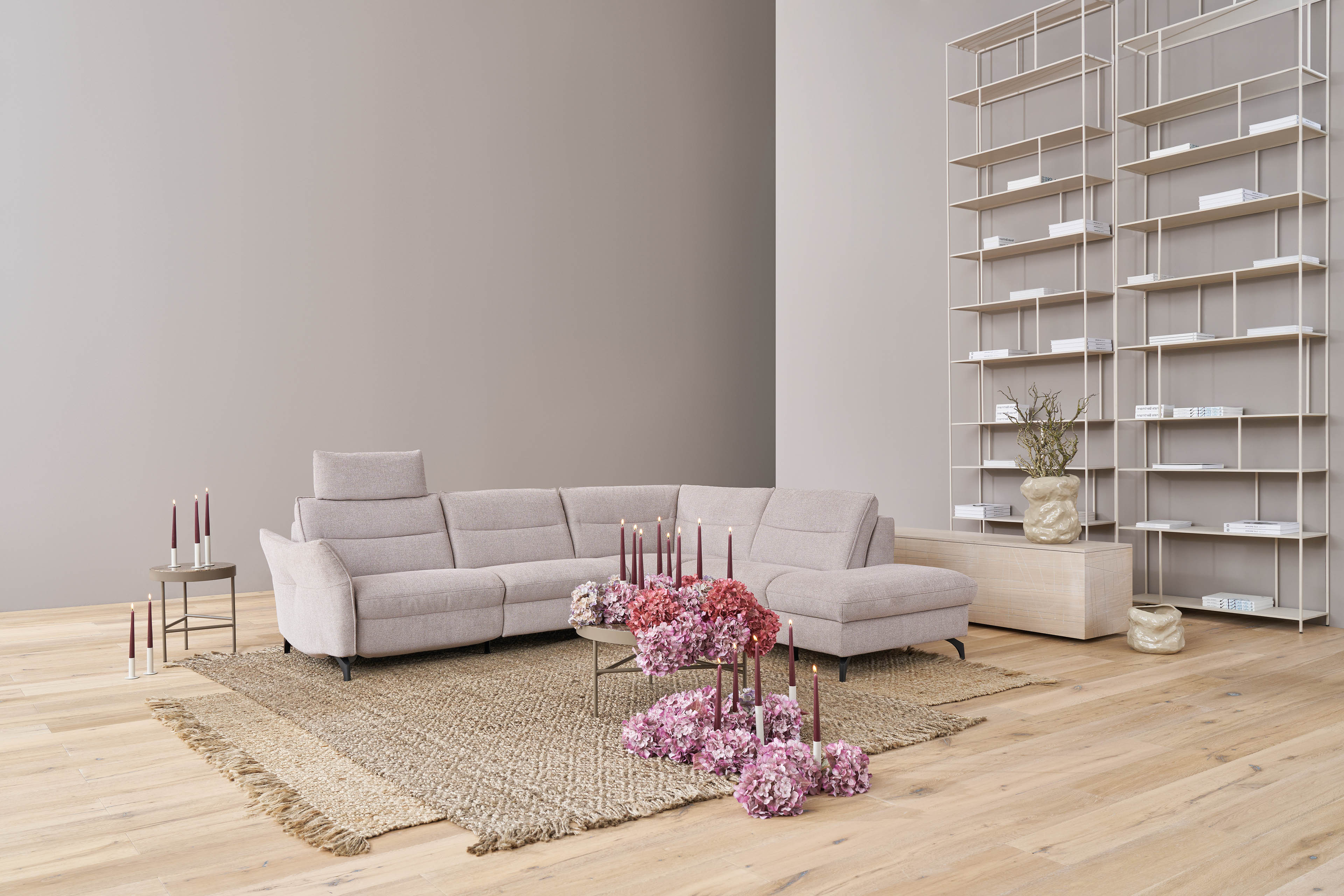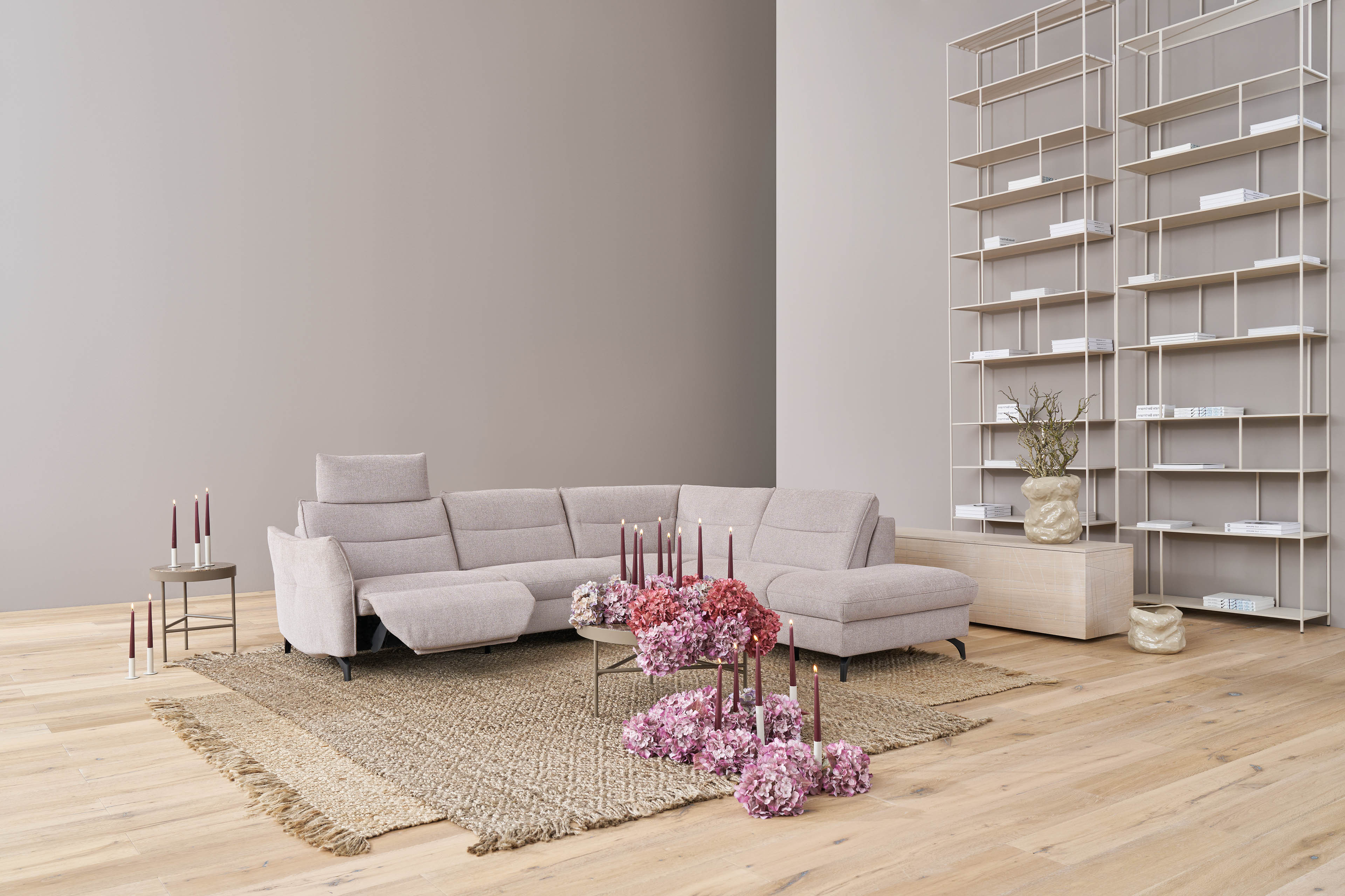 Erleben Sie Entspannung in einer völlig neuen Dimension mit dem Modell 1667 aus dem Hause Himolla, das als persönliche Ruheinsel im großen Stil weit mehr als nur eine gewöhnliche Sofagarnitur ist. Auf einem großzügigen Stellmaß von etwa 277-285 x 237 cm bietet diese Eckcouch, bestehend aus einem komfortablen 2,5-Sitzer, einer Ecke und einem offenen Abschlusselement, genau den Freiraum, den Sie nach einem stressigen Tag verdienen, sei es bei einem geselligen Spielenachmittag mit der Familie, einem kuscheligen Kinoabend zu zweit oder beim ganz privaten Rückzug mit einem spannenden Buch, welches Sie so sehr fesselt, als wären Sie inmitten der Geschichte. Damit jeder Nutzer seinen individuellen Komfort findet, steht Ihnen die hochwertige Superlastic-Formschaum-Polsterung in drei unterschiedlichen Härtegraden zur Verfügung - von angenehm weich, die softe Variante, über die Universalpolsterung "med", bis hin zum festen und aufrechten Sitzen, mit der Ausführung "plus mit Federkern", während die optional hinzubuchbare Relaxfunktion für den 2,5-Sitzer - wahlweise manuell oder motorisch steuerbar - ein stufenloses Gleiten in die perfekte Liegeposition ermöglicht. Ergänzt wird dieses Wohlfühlerlebnis durch weitere praktische Annehmlichkeiten, wie die bereits modelltypisch integrierte Armteilverstellung, die sowohl als bequeme Ablage beim Lesen als auch als stützendes Kopfpolster für ein kurzes Nickerchen fungiert, sowie durch optionalen Stauraum im Abschlusselement und ergonomische Kopfstützen, die ein erholsames Zurücklehnen möglich machen. Auch optisch lässt sich die Garnitur perfekt an Ihr Interieur anpassen, da der Hersteller neben dem abgebildeten dezenten Design aus Chenille-Flachgewebe in der Farbe "seashell" eine exklusive Palette an hochwertigen Stoff- und Lederqualitäten in verschiedensten Farbintensitäten bereithält. Lassen Sie die Hektik des Alltags hinter sich und machen Sie Ruhe sowie Behaglichkeit zum neuen Mittelpunkt Ihres Zuhauses - mit dem Himolla Polstersofa 1667.